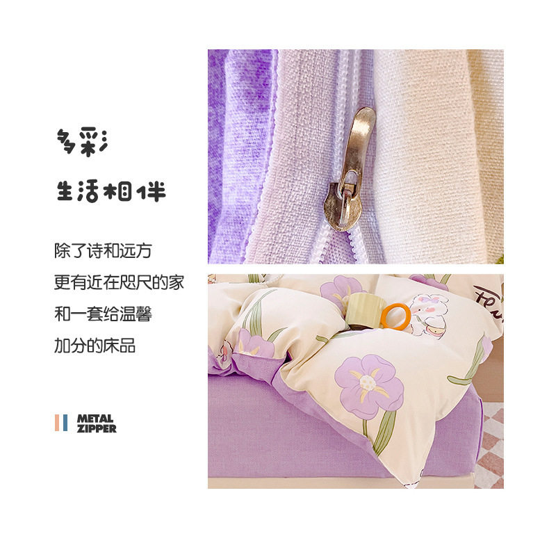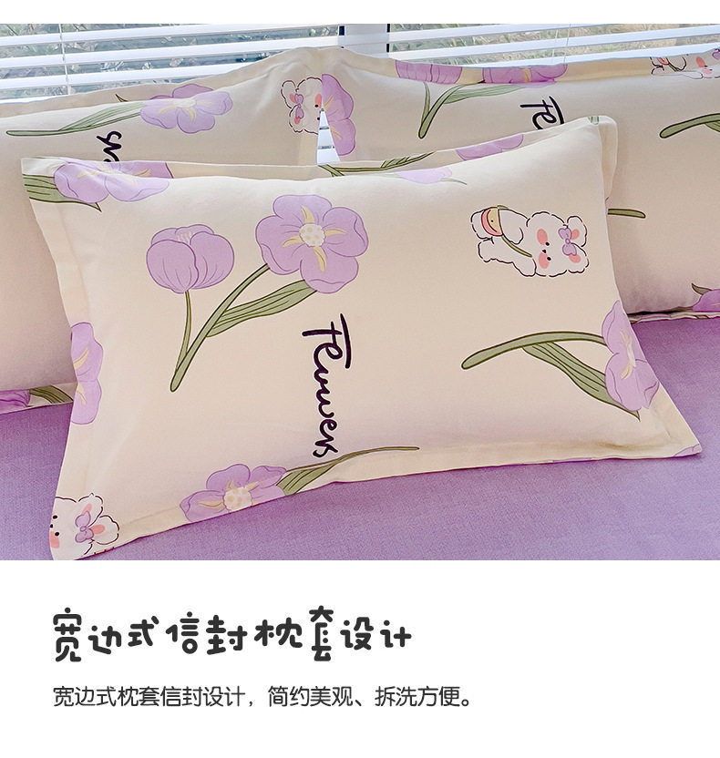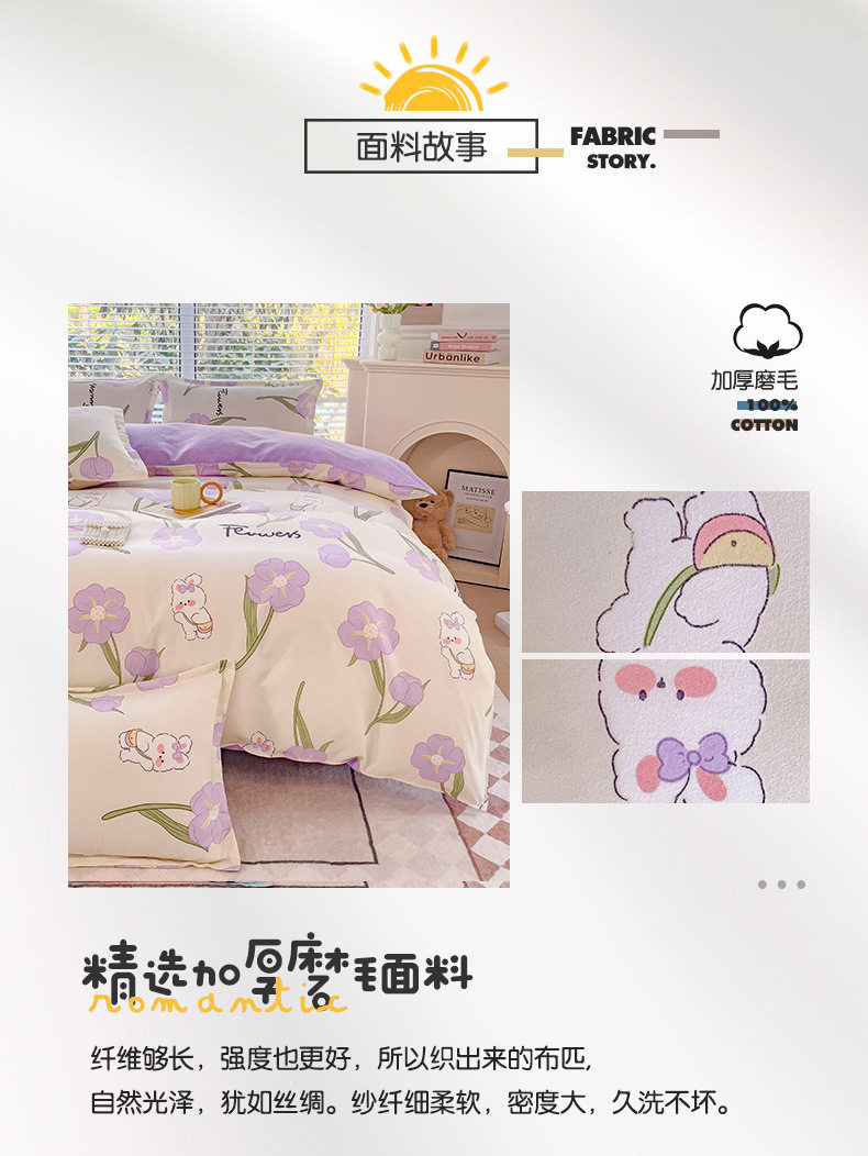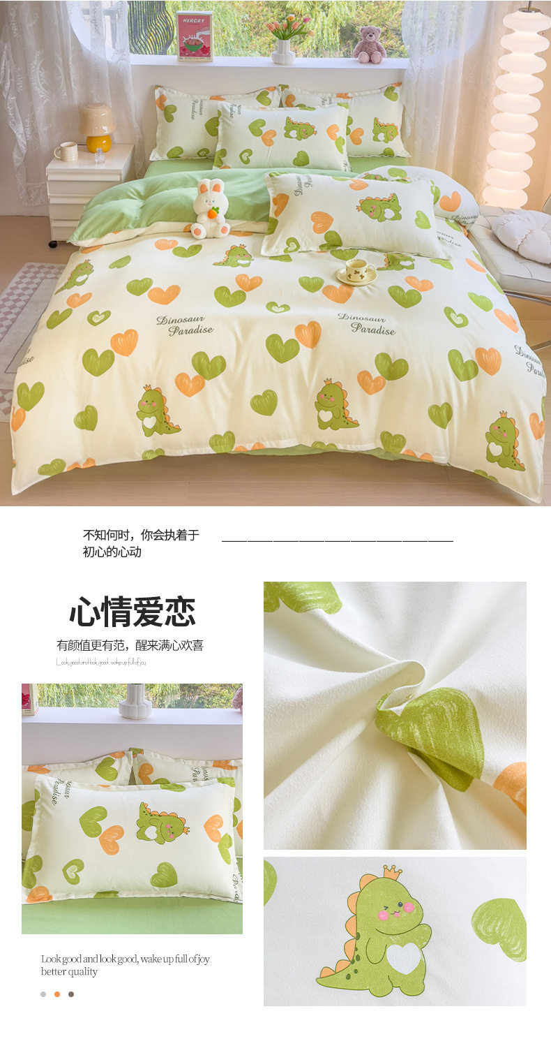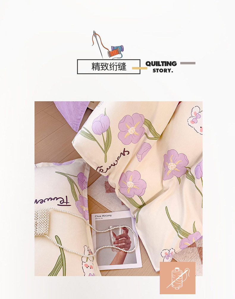 New Class a Thickeneded Brushed Four-Piece Set of Small Fresh Bed Sheetss and Quilt Covers for Students Washed Cotton Three-Piece Bedding Set a