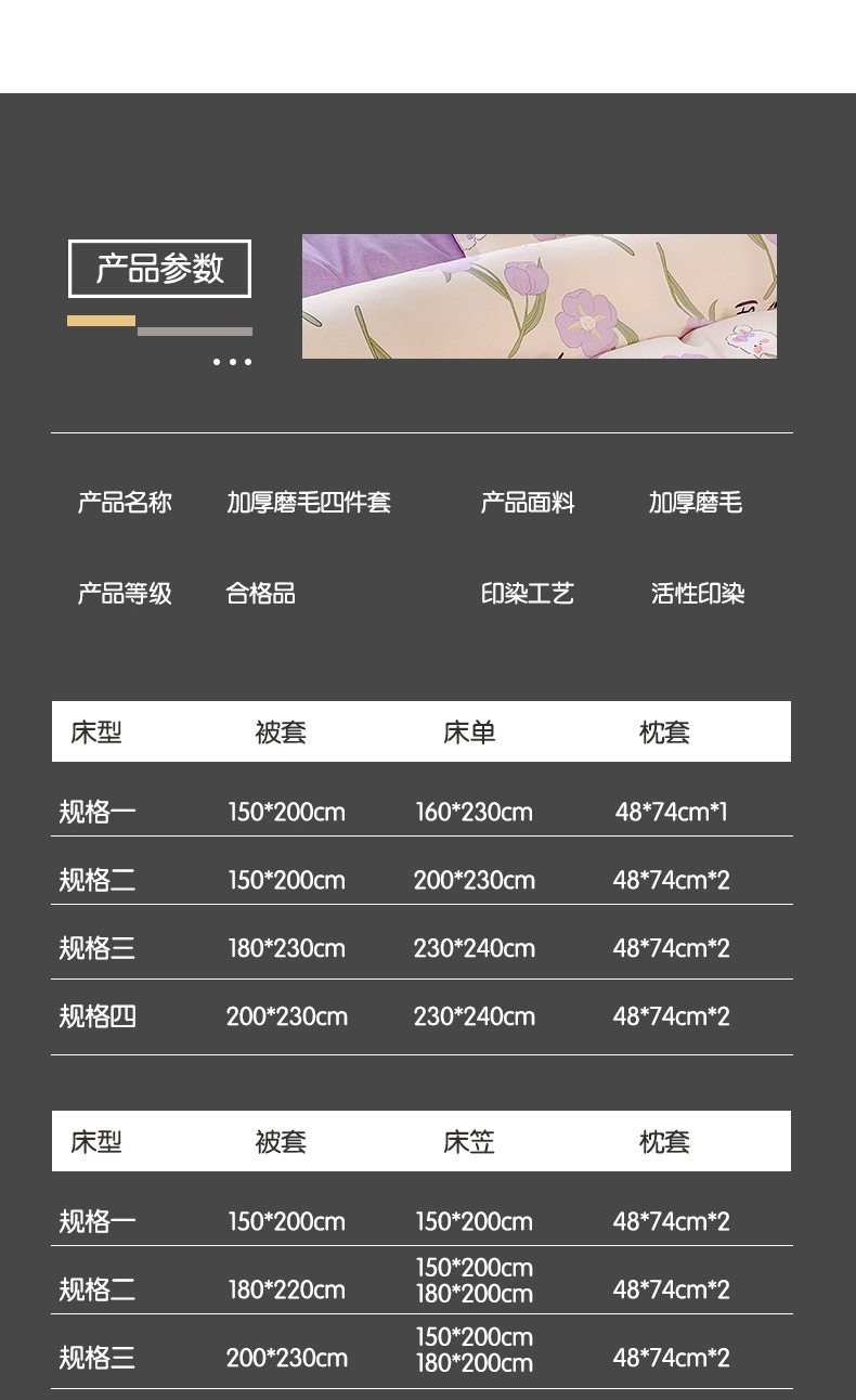 | Bedding segmentation | Four-piece set |