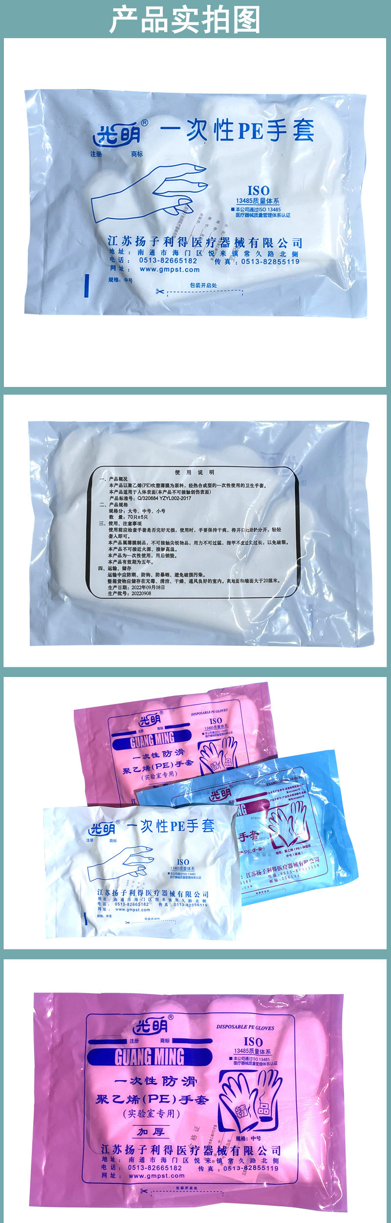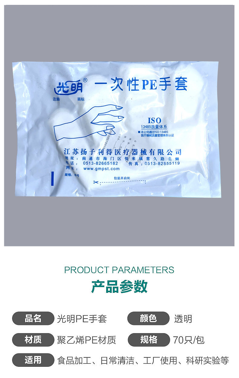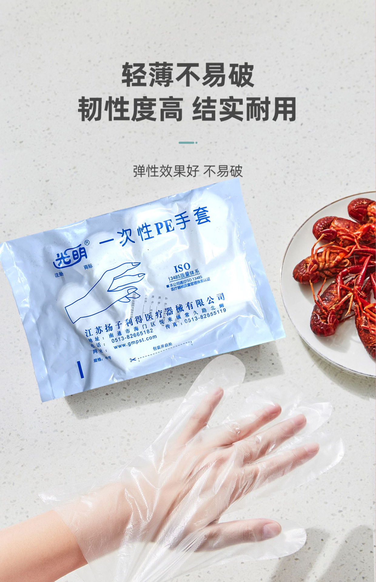 Guangming Disposable Pe Gloves Thickeneded Powder-Free Anti-Slip Cpe Gloves for Laboratory Scientific Research Catering Oil-Proof and Stain-Resistant