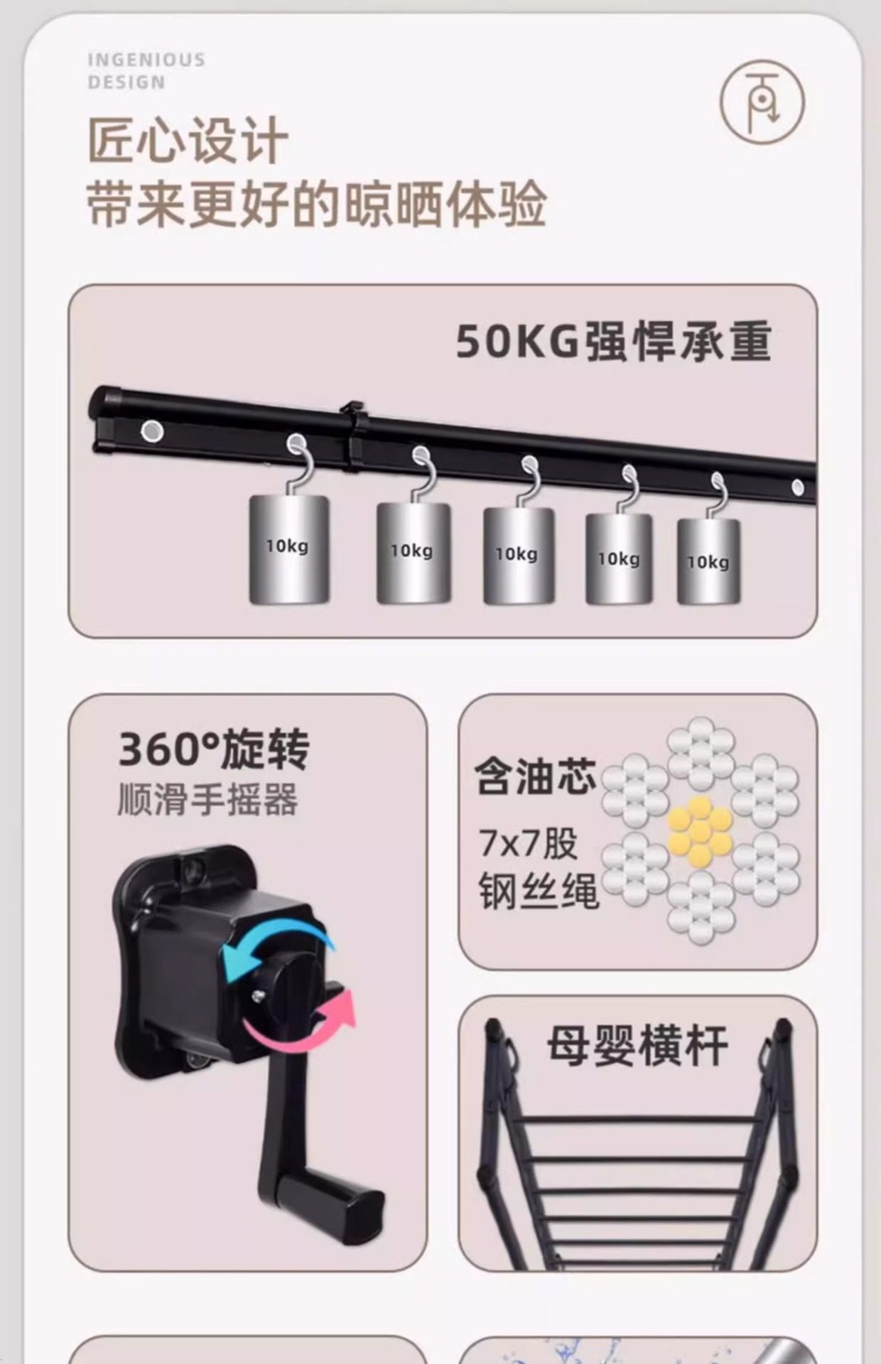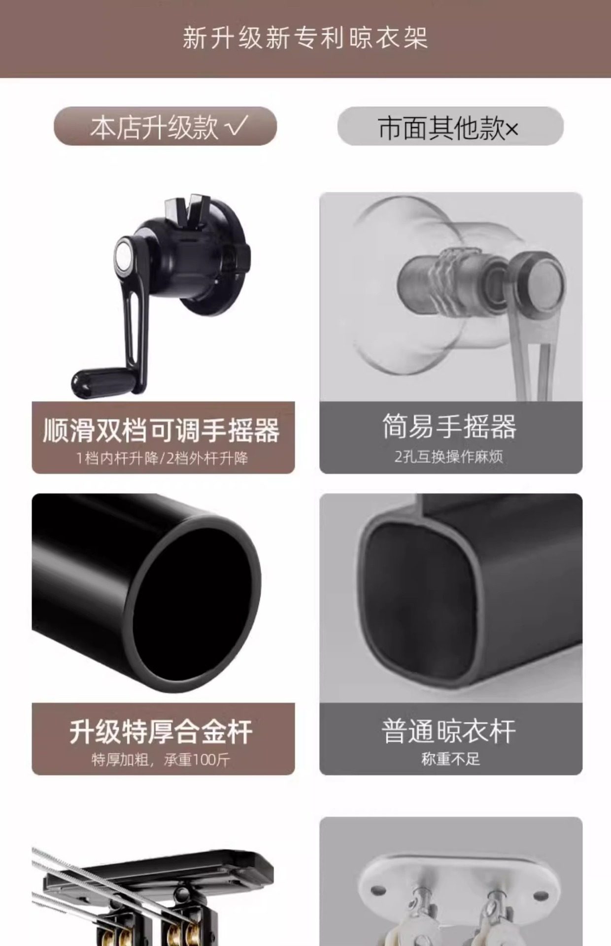 Hand-Cranked Clothes Drying Rack, Thickened Balcony Adjustable Clothes Rack, Household Four-Rod, Double-Rod, Three-Rod Top-Mounted Manual Clothes Drying Rack