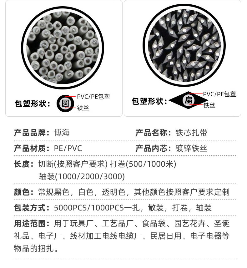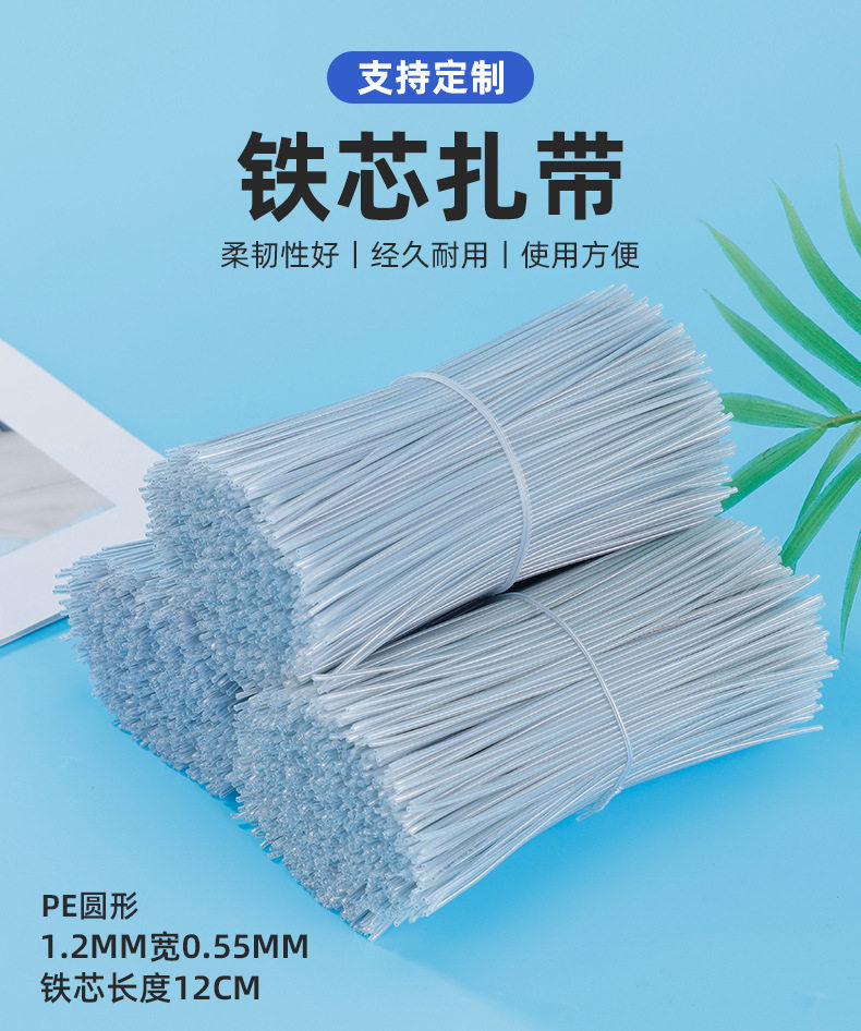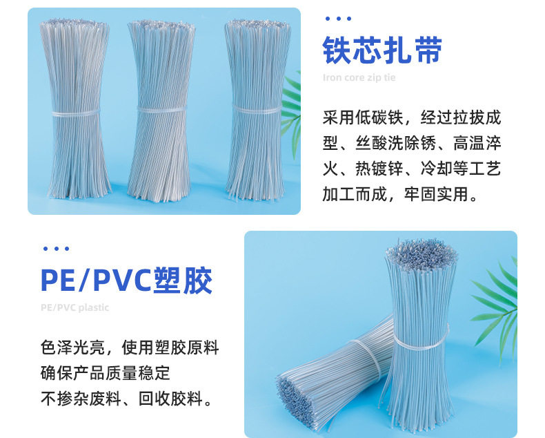 Transparent Pe Round Iron Core Cable Ties, Cable Ties with Plastic-Coated Galvanized Iron Wire