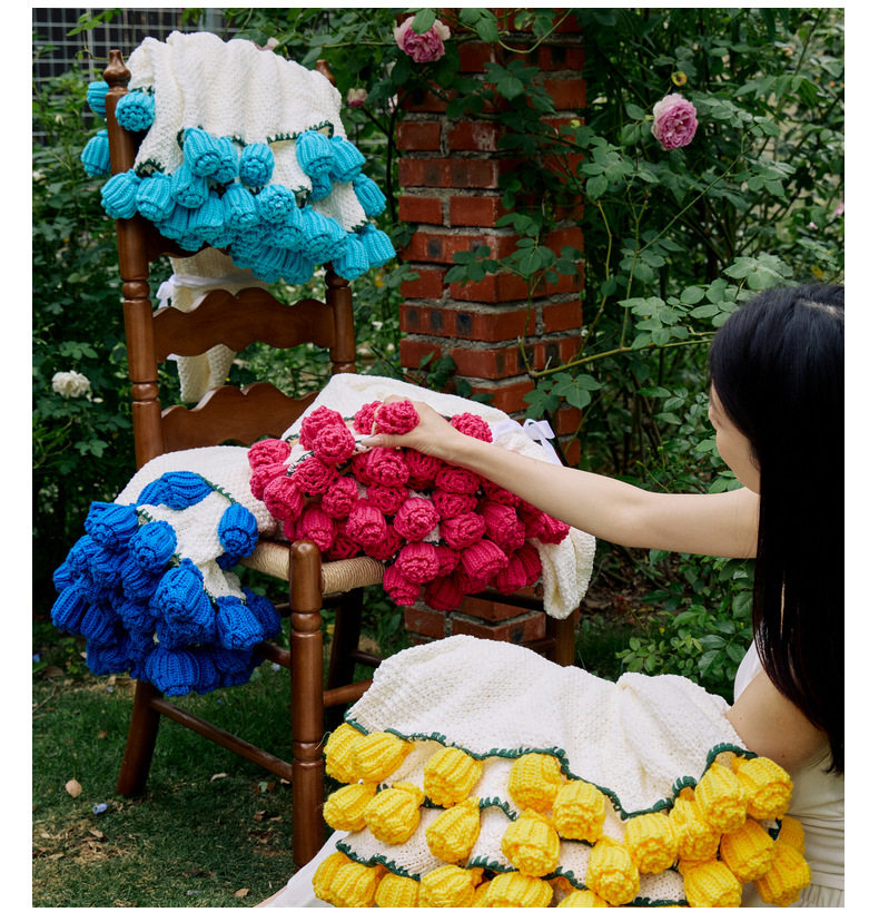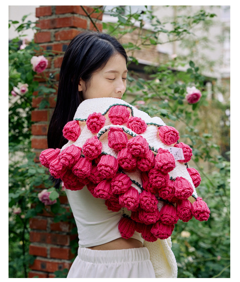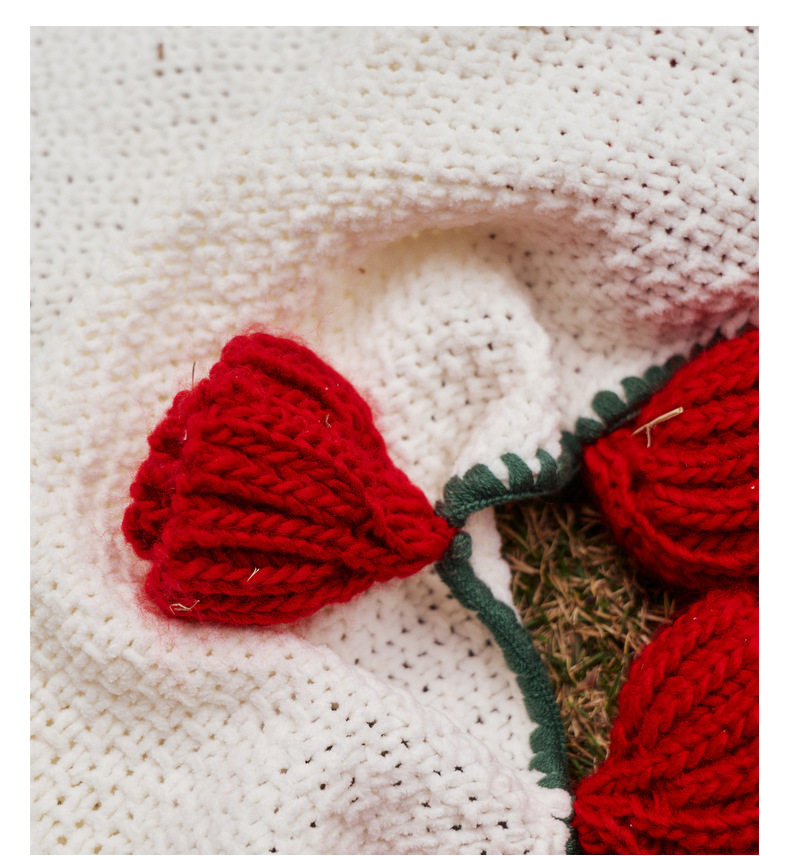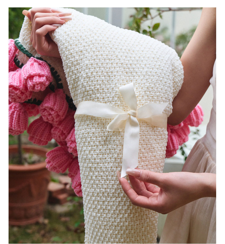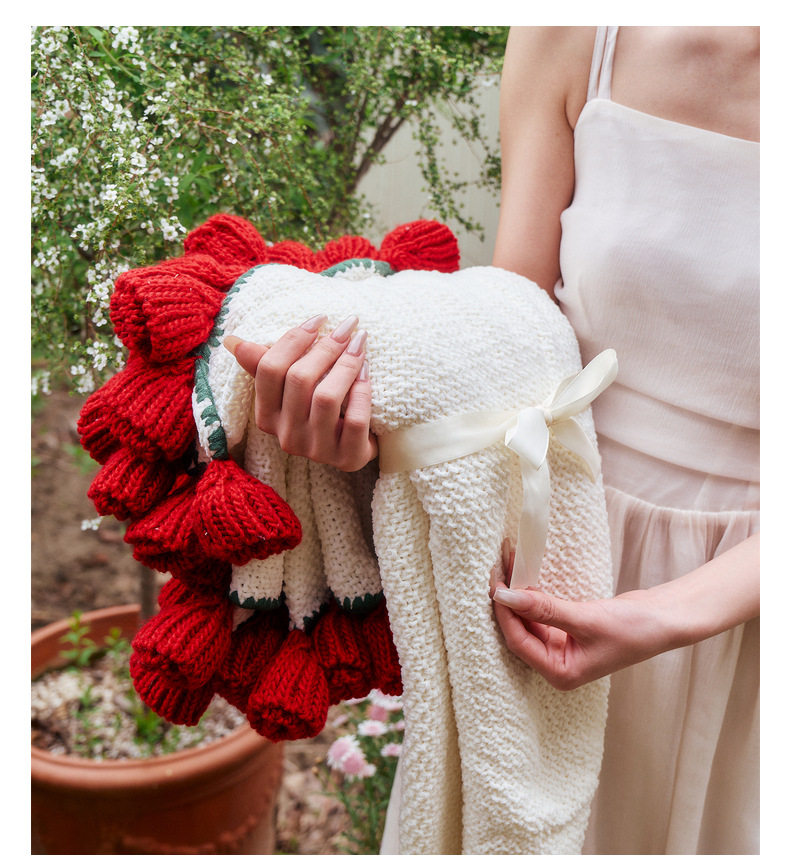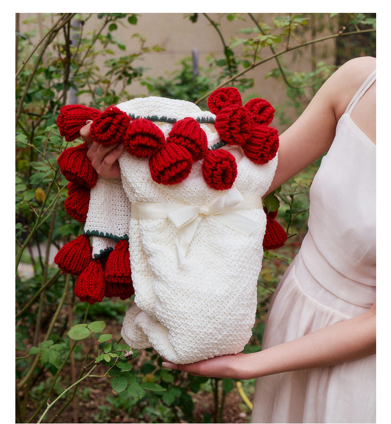Rose Blanket, Summer Blanket, Gift Knitted Shawl Blanket, Gift for Girlfriend, Valentine's Day White Rose Bouquet