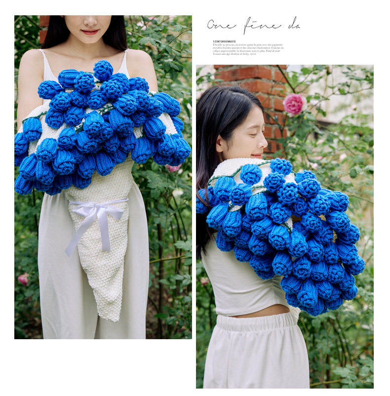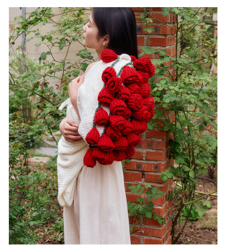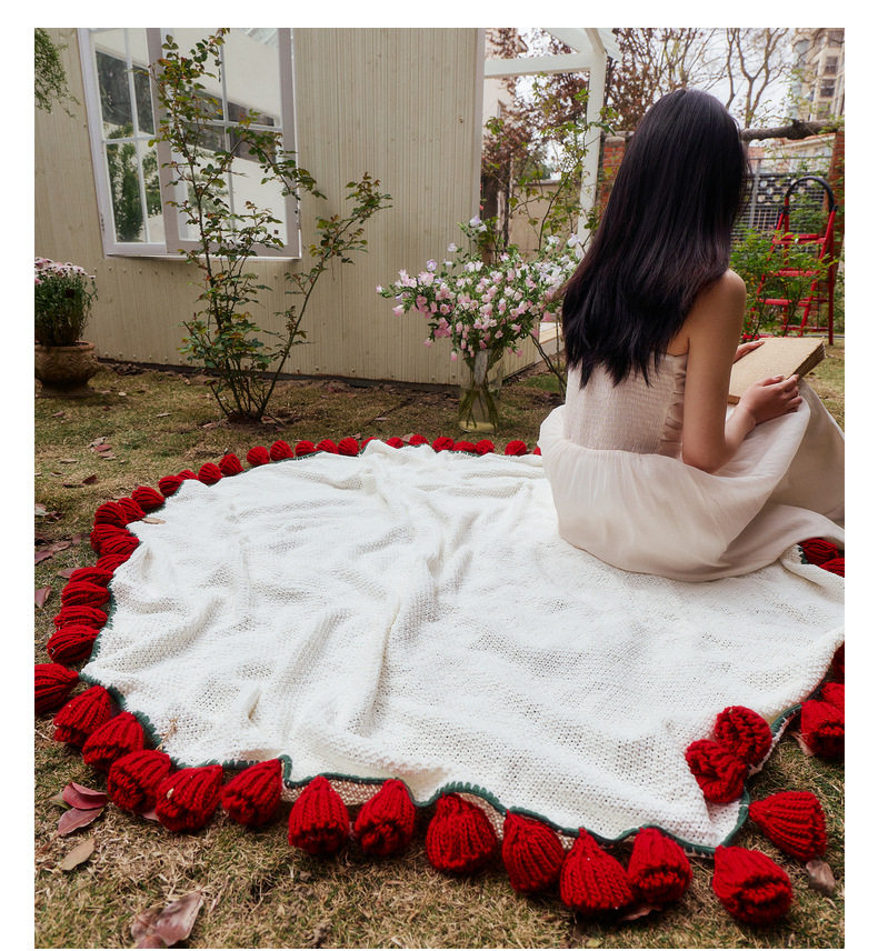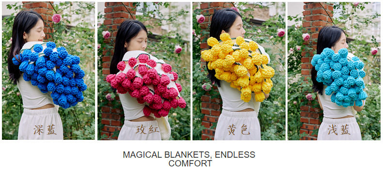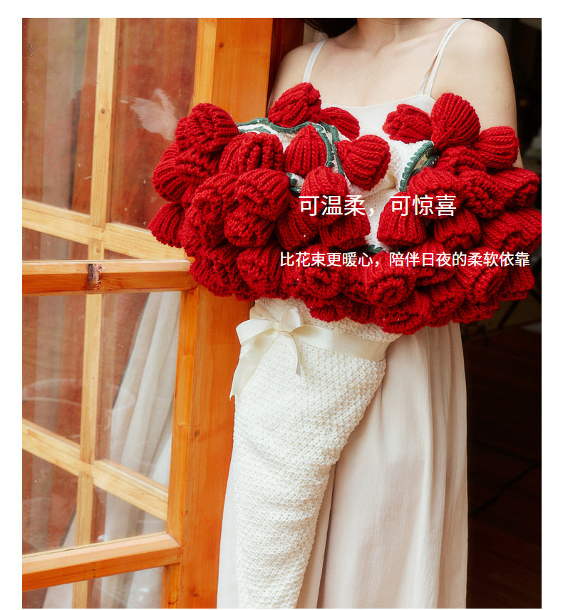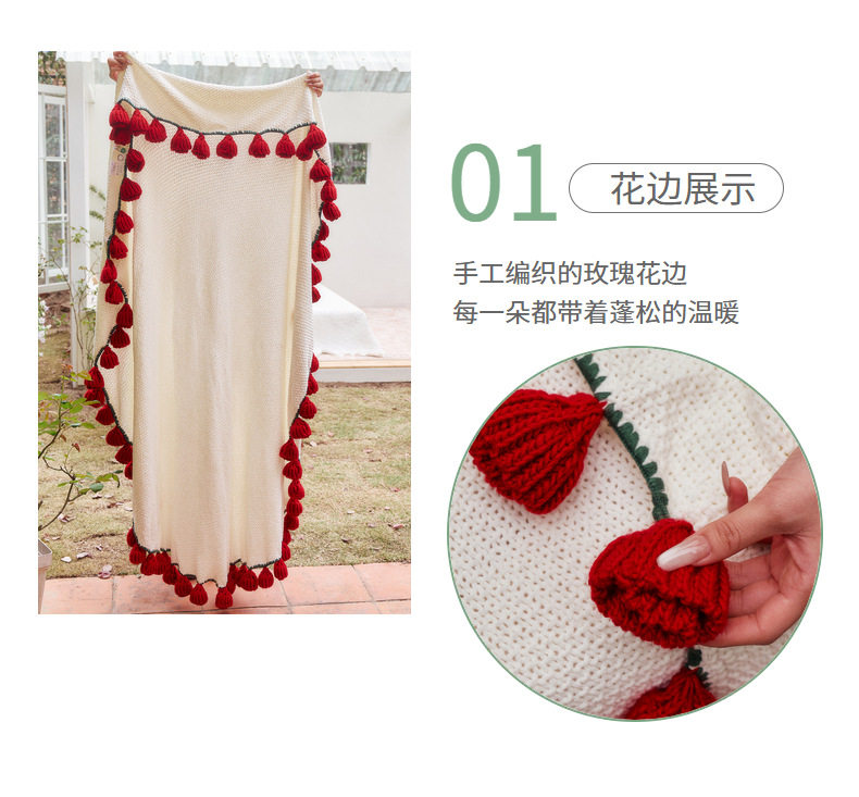 Rose Blanket, Summer Blanket, Gift Knitted Shawl Blanket, Gift for Girlfriend, Valentine's Day White Rose Bouquet
