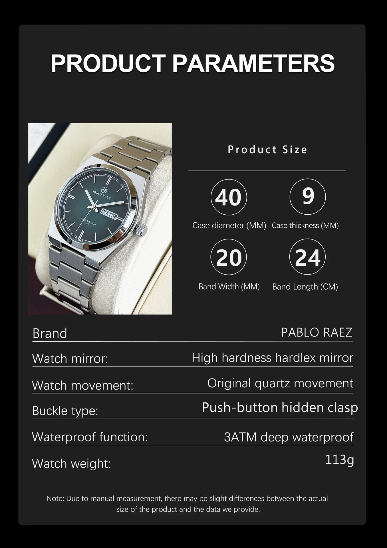 | Color | Gradient green dial,White dial,Black dial |