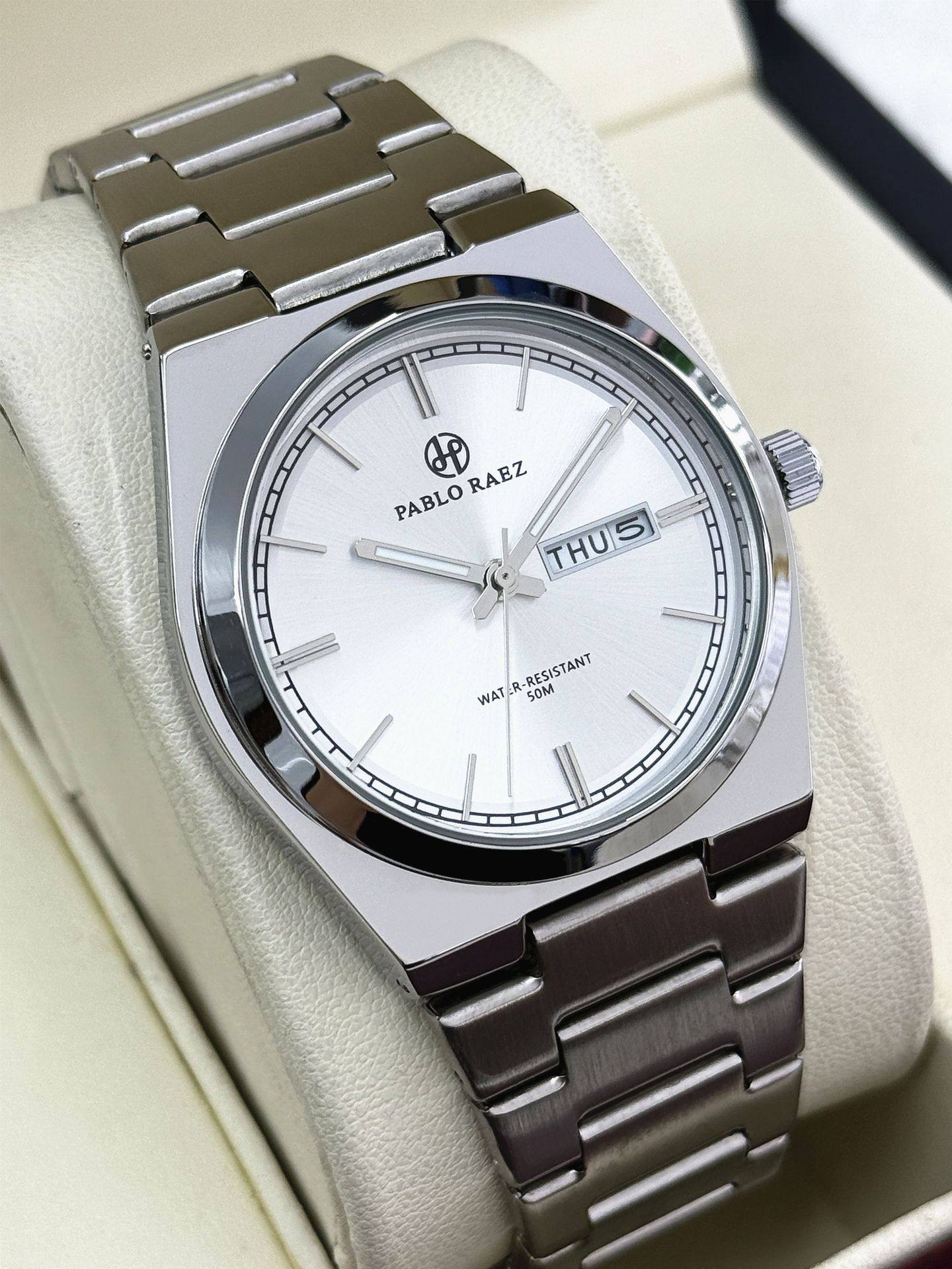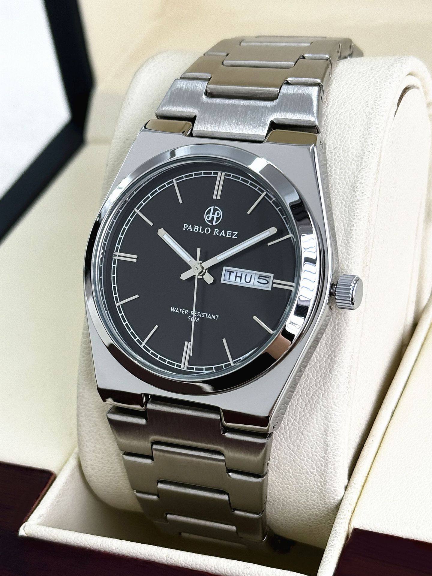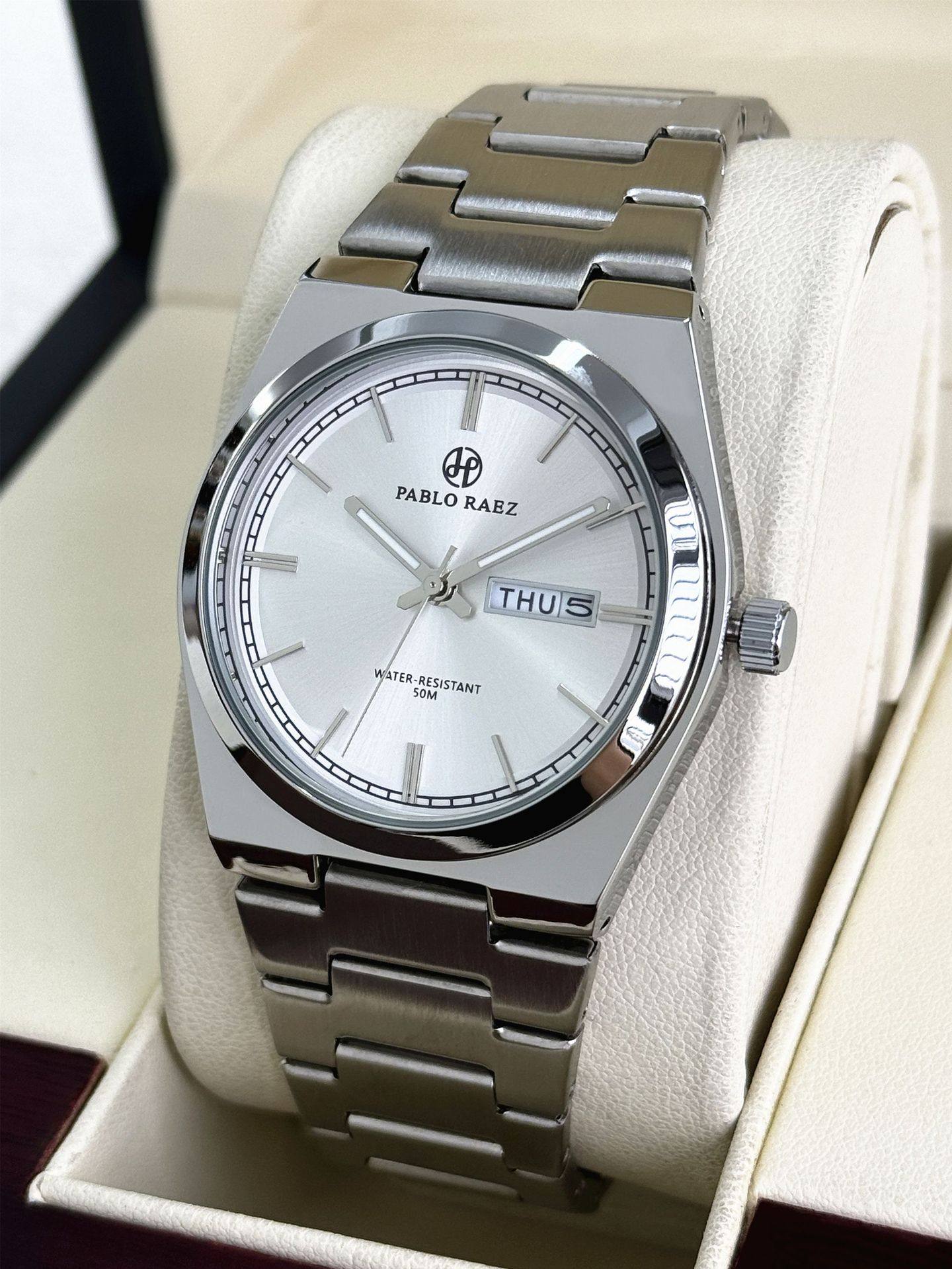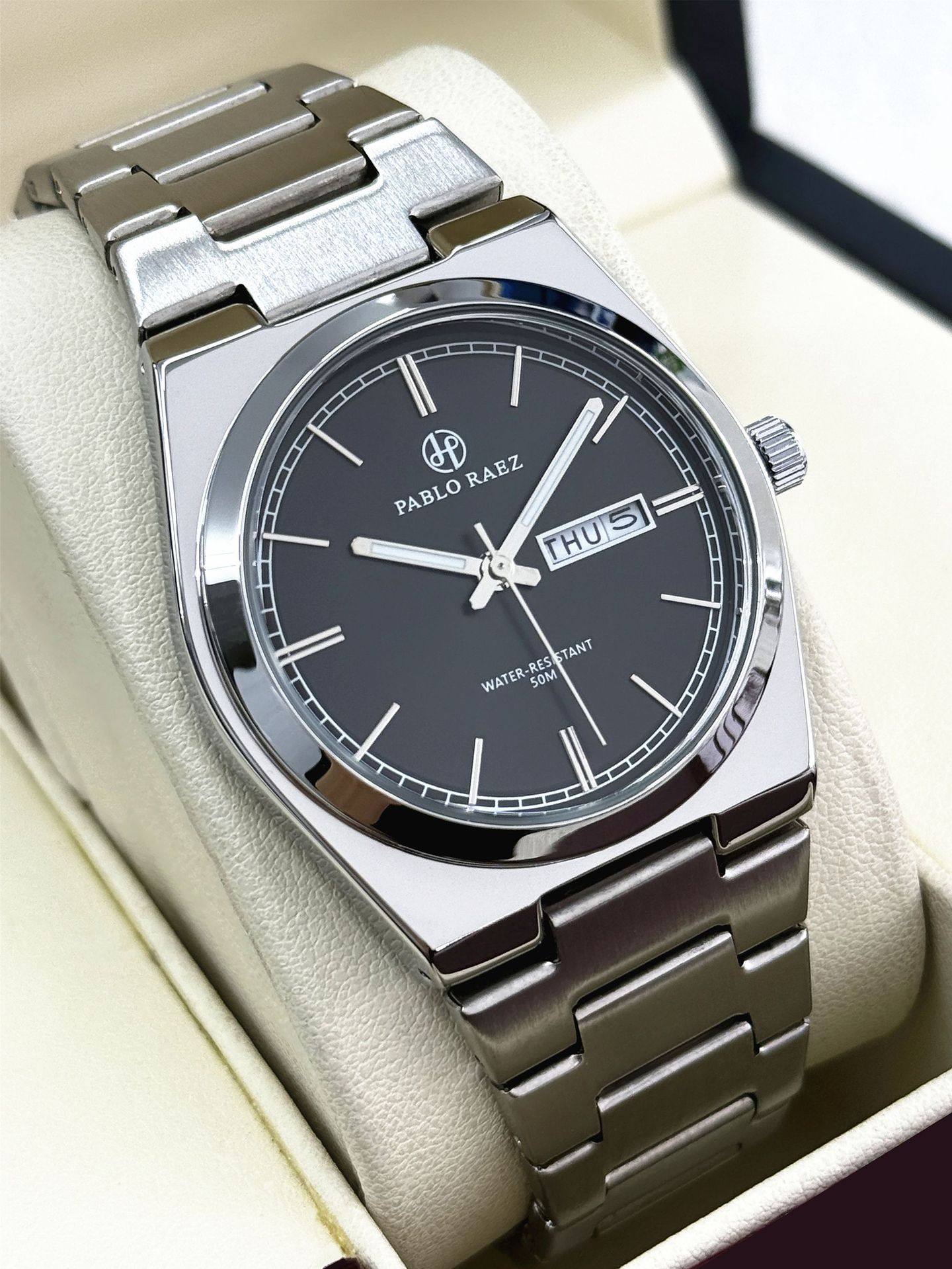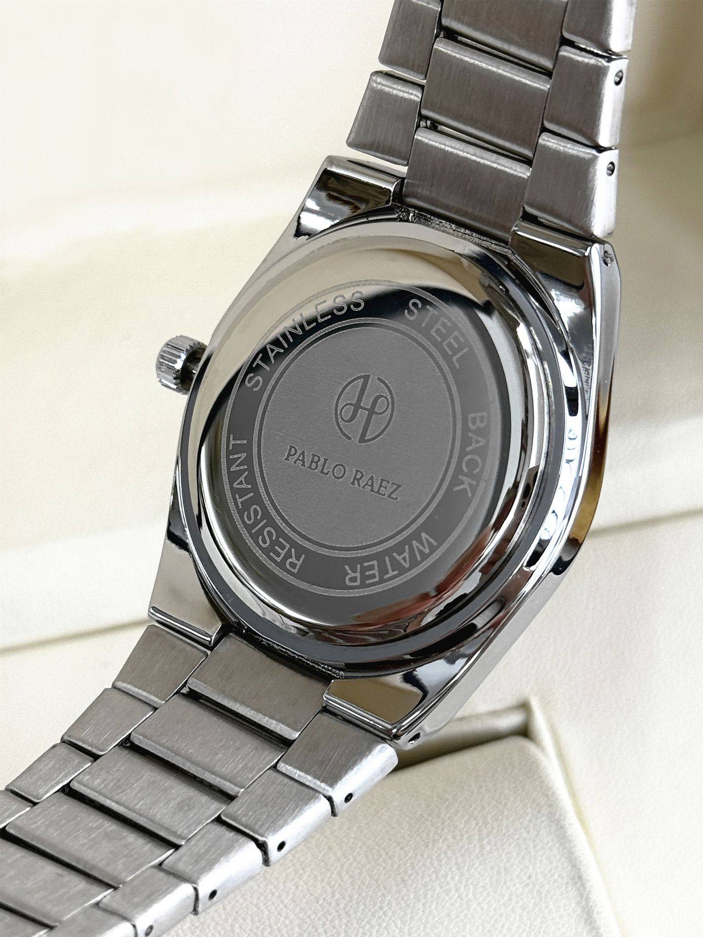 New Pablo Raez Steel Band Men's Watch with Gradient Green Dial, Butterfly Clasp, Dual Calendar, Cross-Border Hot Sale P36