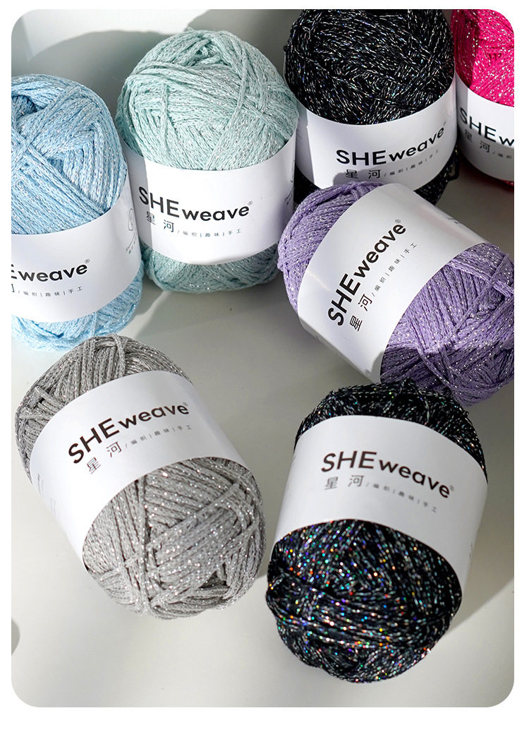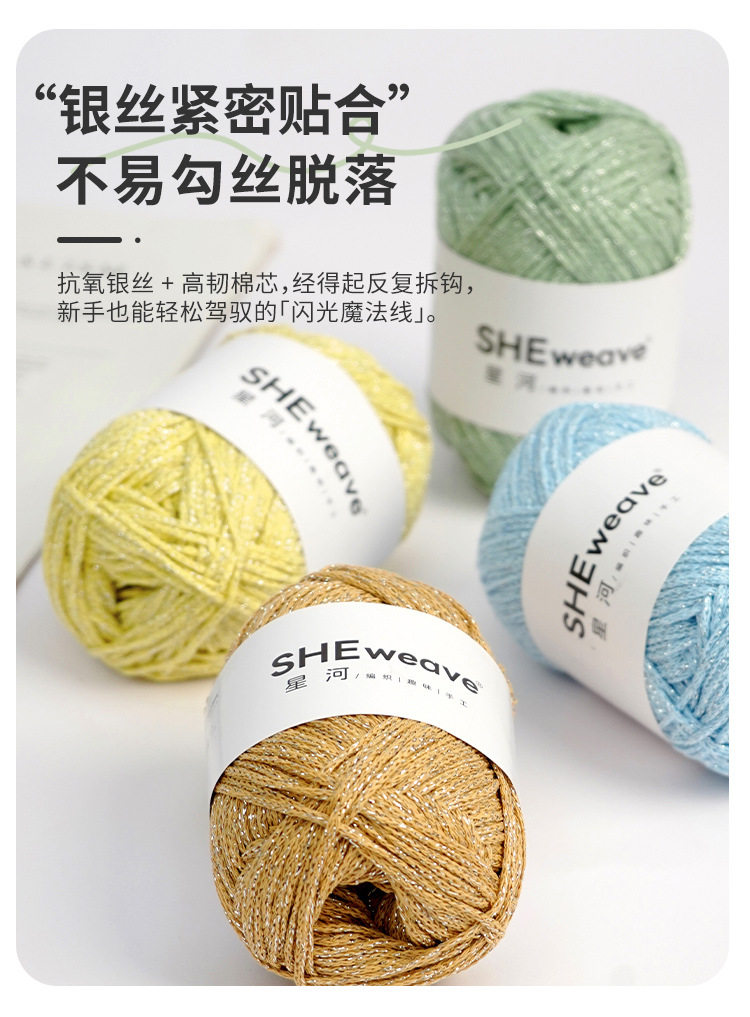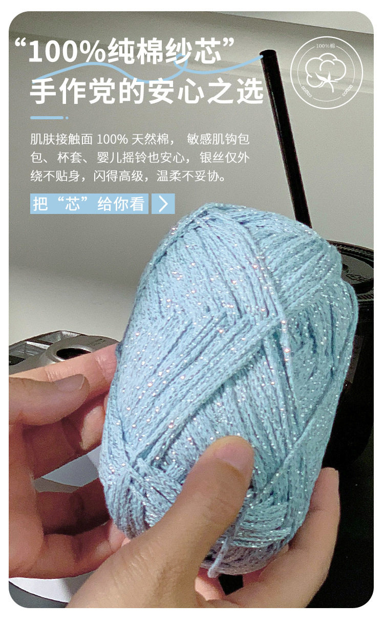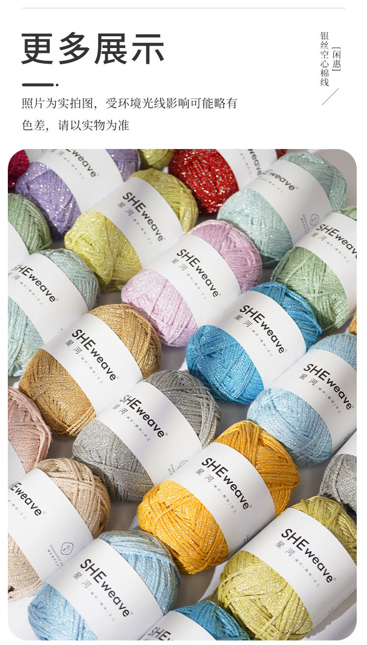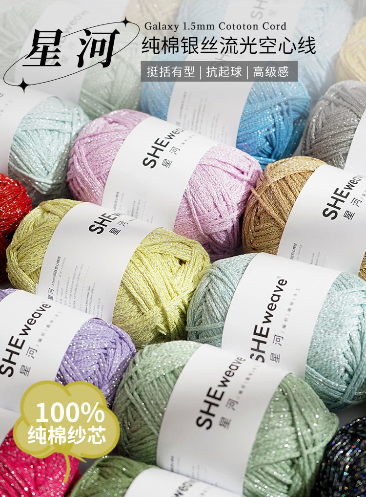 1.5mm Galaxy Pure Cotton Silver Thread DIY Crochet Cotton Thread Bag Crochet Handmade Weaving Thread Hollow Colored Thread