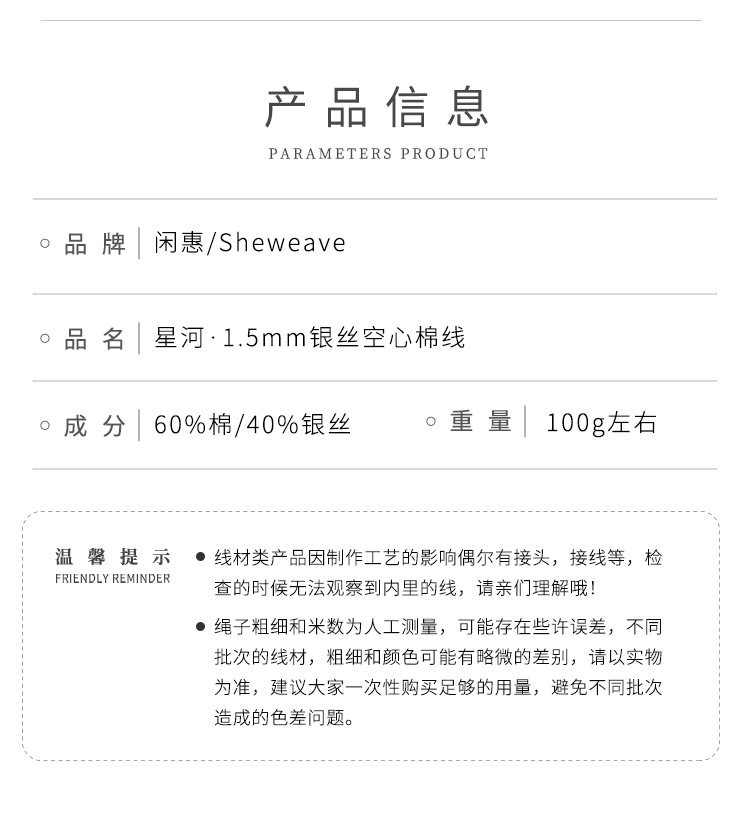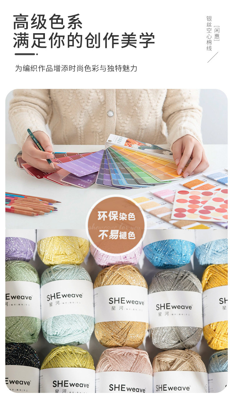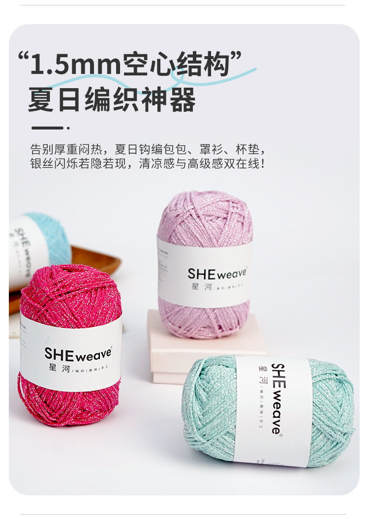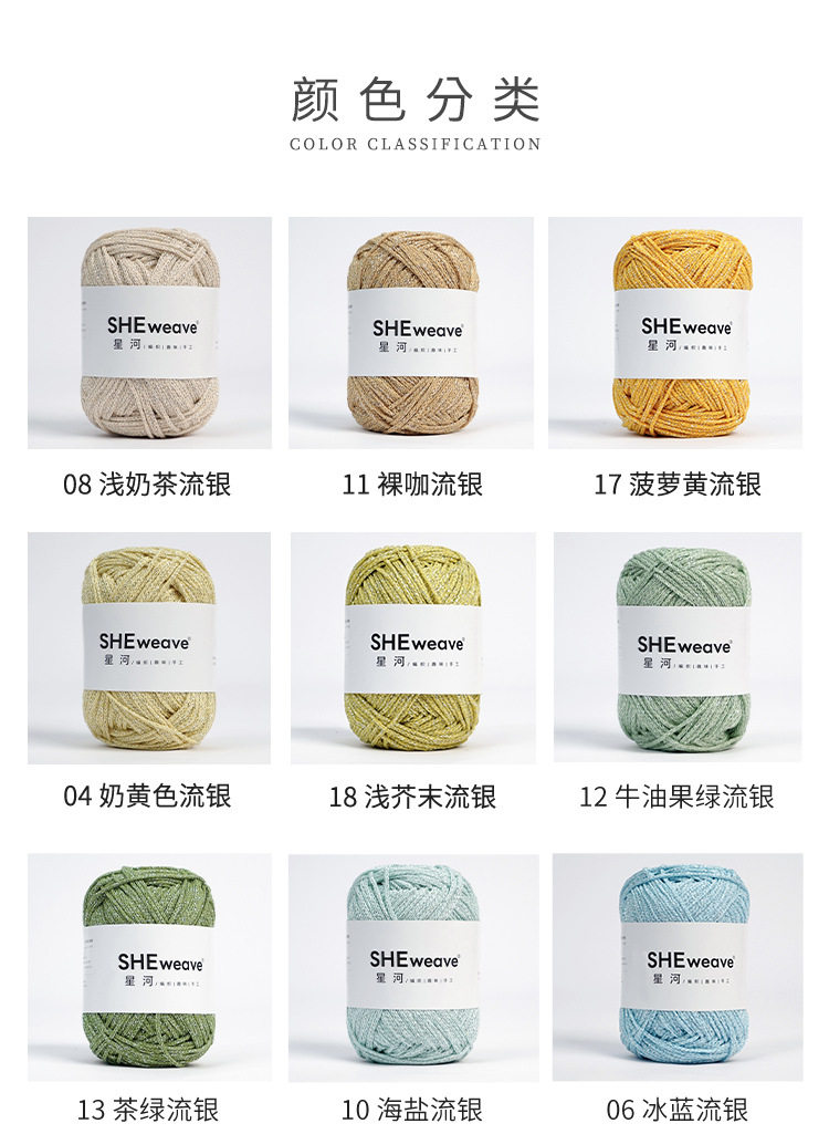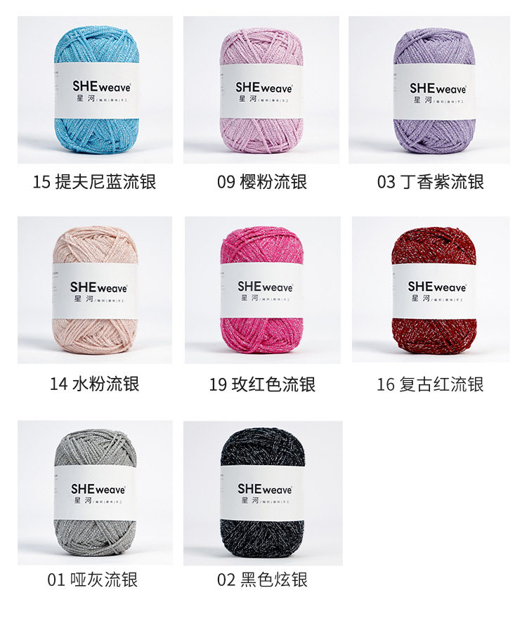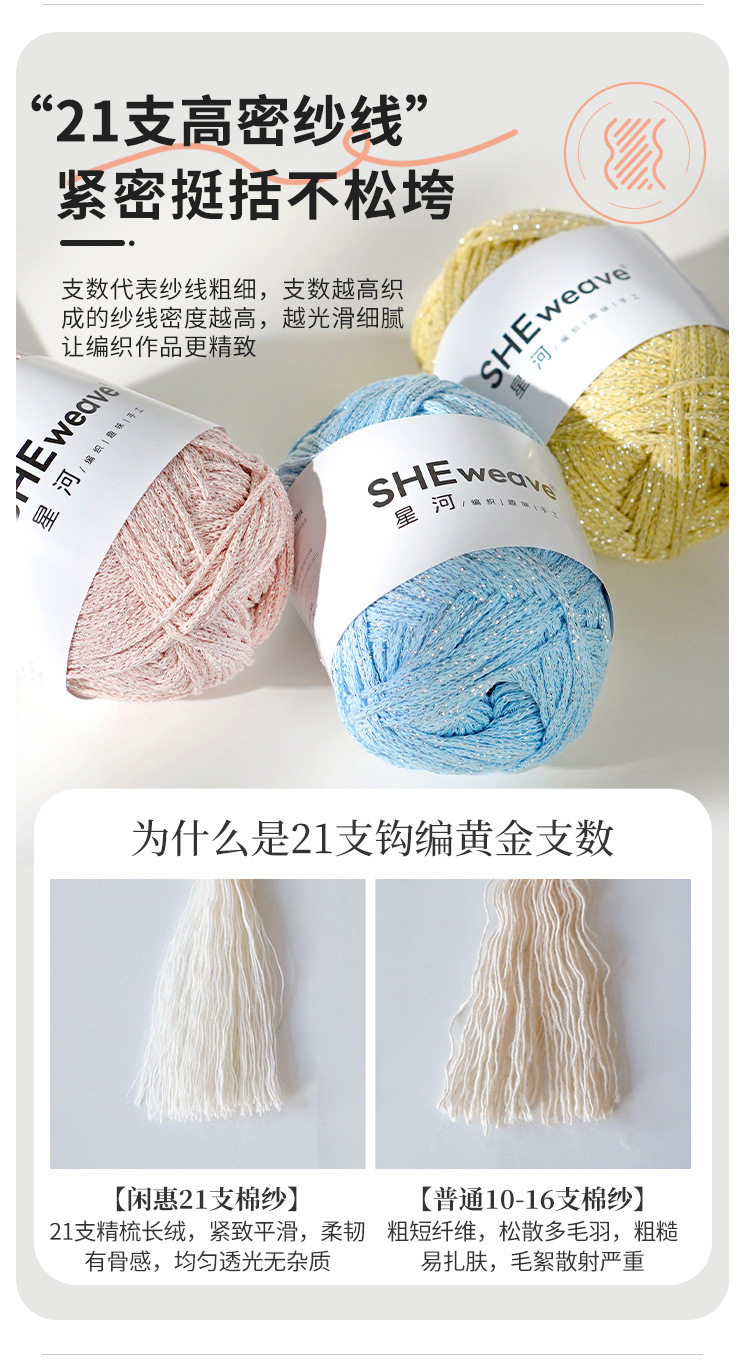 1.5mm Galaxy Pure Cotton Silver Thread DIY Crochet Cotton Thread Bag Crochet Handmade Weaving Thread Hollow Colored Thread