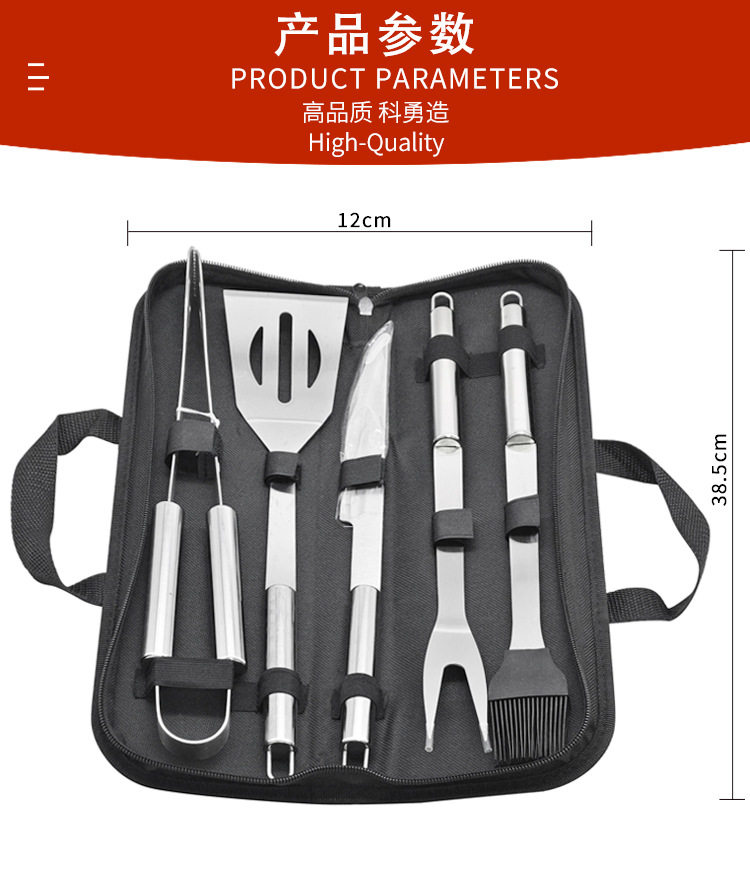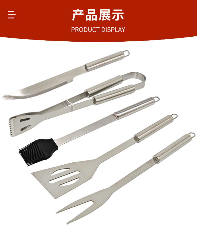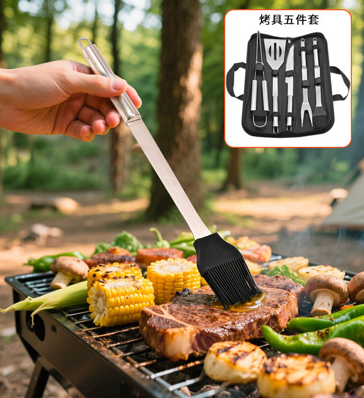 Cross-Border Stainless Steel Grill Set 5-Piece Barbecue Tool Set Outdoor Barbecue Knife Fork Spatula Rack Accessory Set
