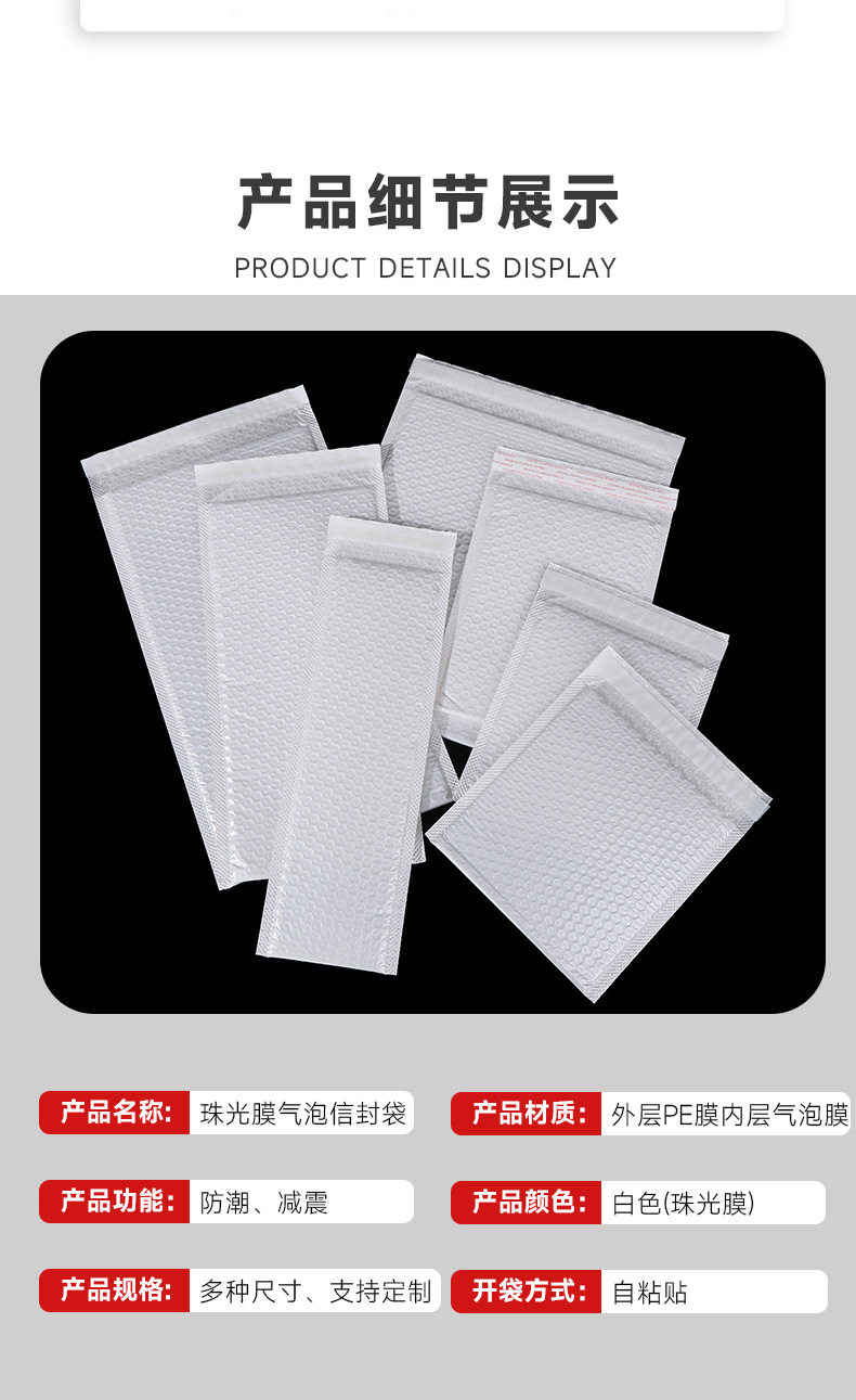 Composite Pearlescent Film Long Bubble Bag Small Size Large Size Waterproof and Bubble Wrap Express Bubble Envelope Self-Sealing Packaging