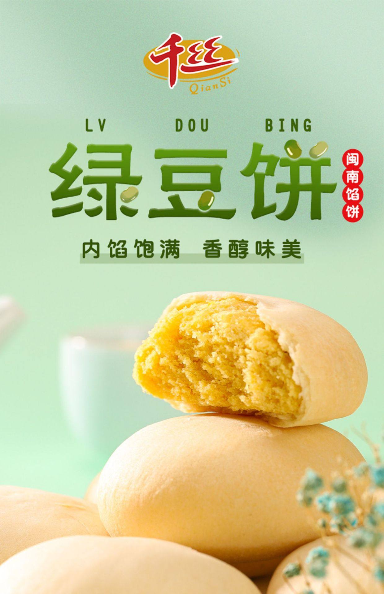 Whole Box of Qiansi Mung Bean Cakes, Nutritious Breakfast Bread, Popular Snacks, Leisure Food, Fujian Specialty Delicacies