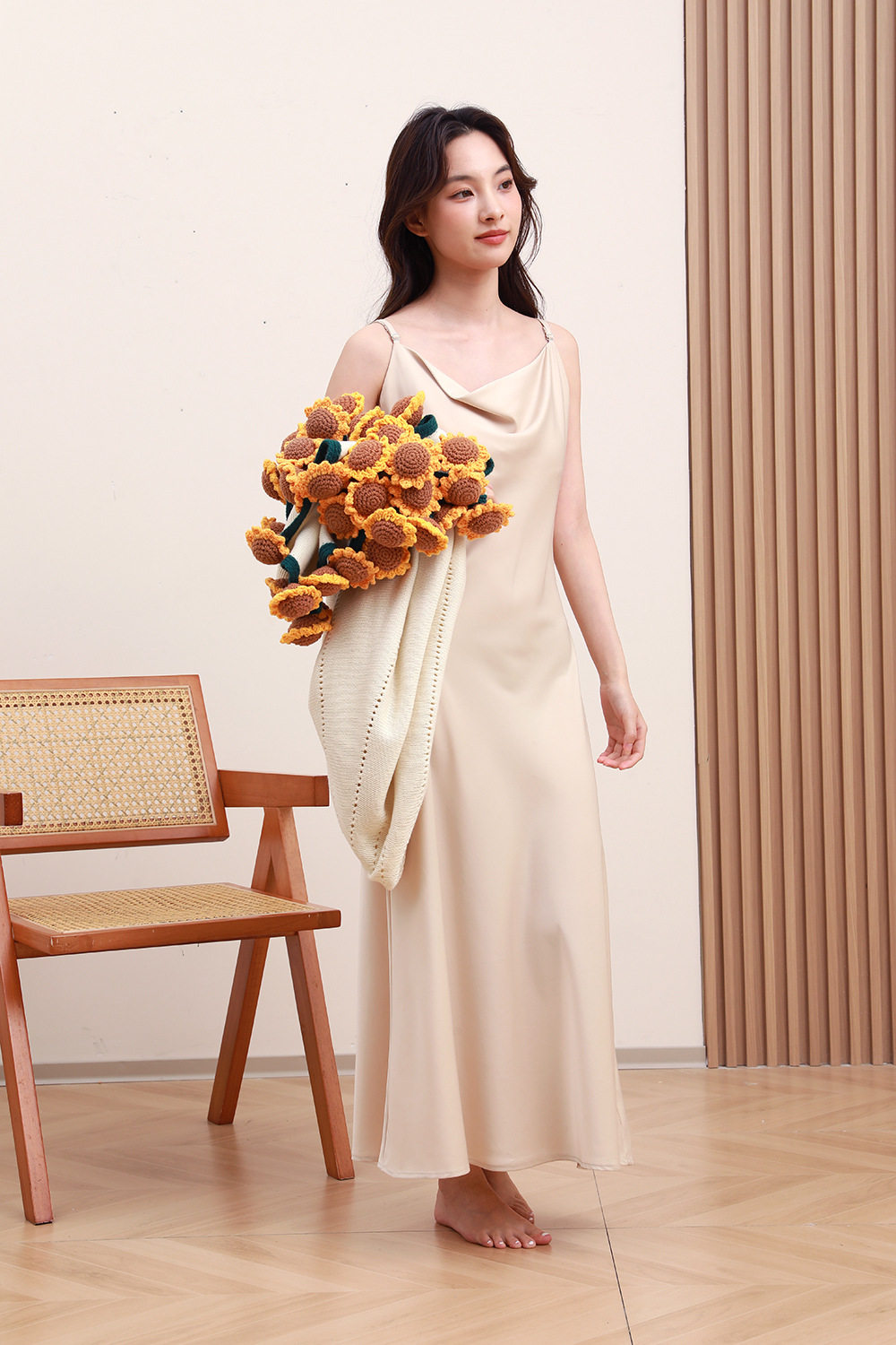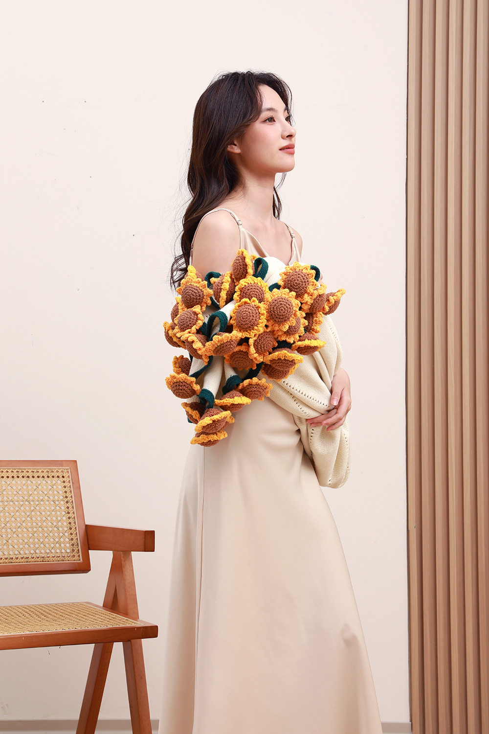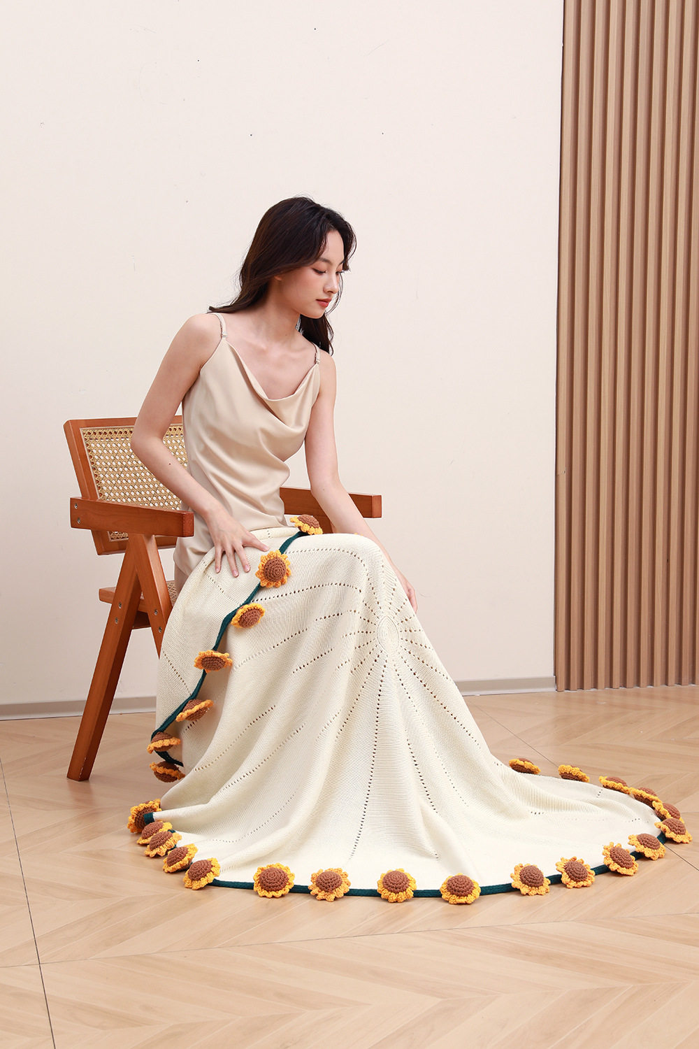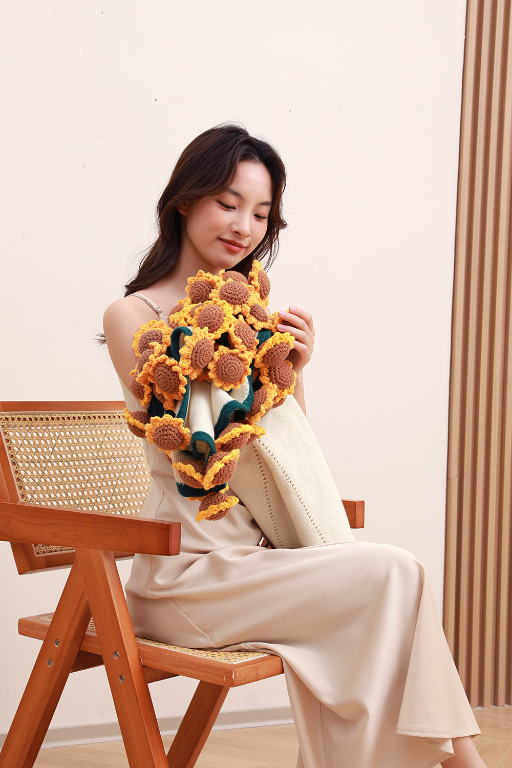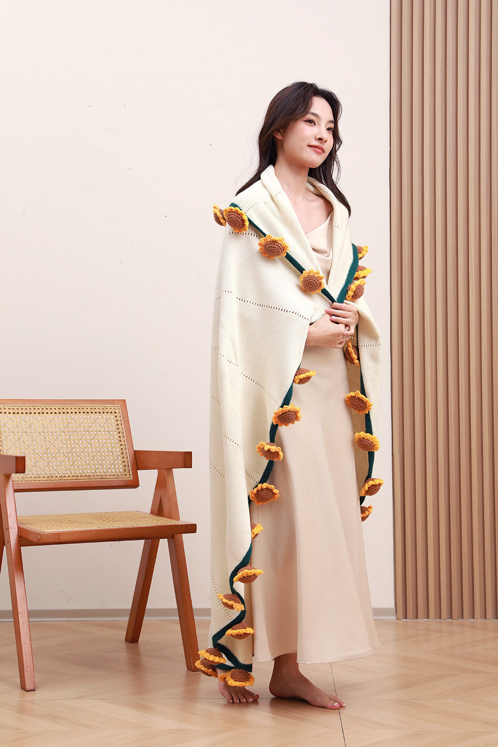 Sunflower Bouquet Blanket Finished Product Won the First Prize in One Fell Swoop. Flower Blanket Wool Ball Hand-Knitted Blanket as a Gift for Students