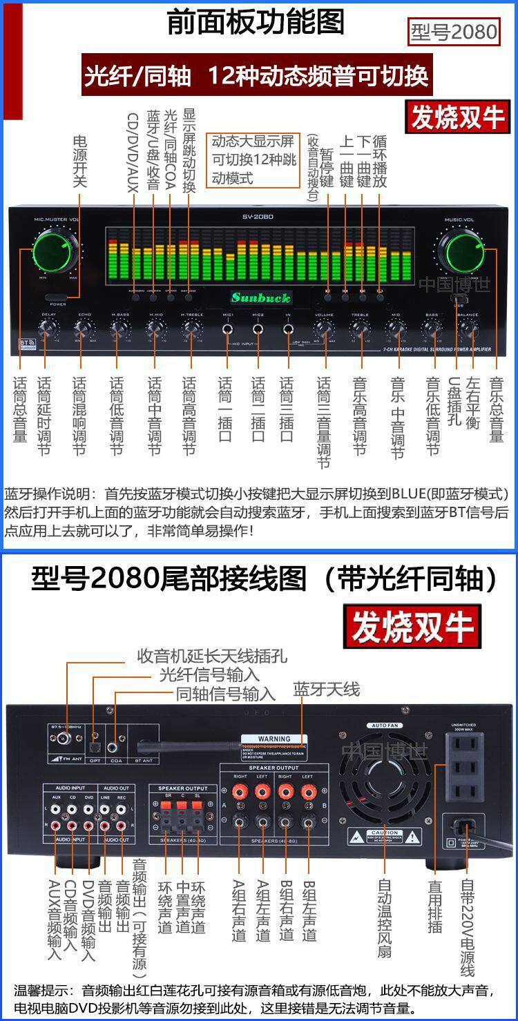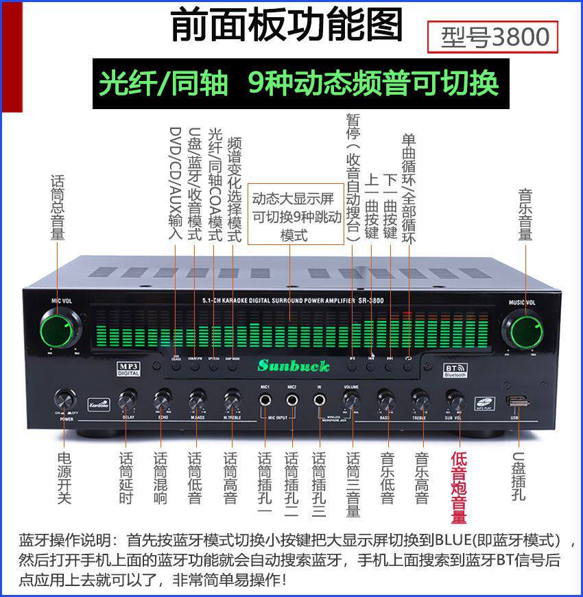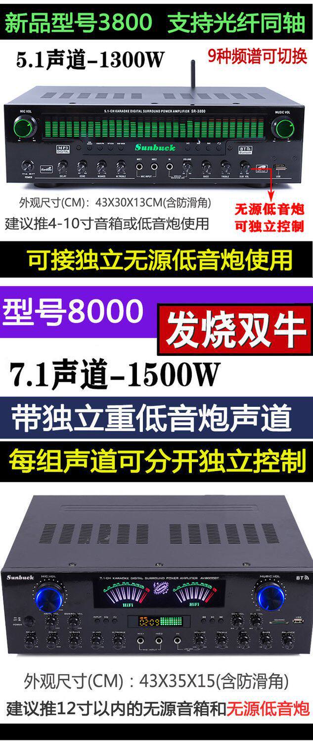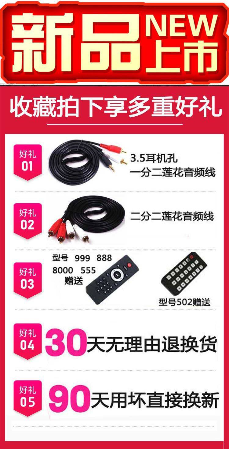 | Color | 999 flagship version fever double ring bull (without microphone),999 shuangniu 1000w+u segment fixed frequency microphone,999 shuangniu 1000w+u segment fm metal microphone,999 shuangniu 1000w charging u-segment fm microphone,2080 fever double cow optical fiber coaxial 1300w (without microphone),2080 fever double cow optical fiber coaxial 1300w (charging microphone),Mixing console amplifier 1200w shuangniu (without microphone),Mixing console amplifier 1200w double cow + fixed frequency microphone,Mixing console amplifier 1200w double cow + fm metal microphone,Mixing console amplifier 1200w double cow + fm charging microphone,8000 double cow 1500w independent muzzle without microphone,8000 shuangniu 1500w independent muzzle fixed frequency microphone,8000 pairs of cattle 1500w independent muzzle metal wheat,8000 shuangniu 1500w independent muzzle charging microphone,8000 double cow 1700w high definition hd without microphone,8000 shuangniu 1700w high-definition hd fixed frequency microphone,3800/1300w fiber optic coaxial 5.1 muzzle without microphone,3800/1300w fiber optic coaxial 5.1 muzzle fixed frequency microphone,3800/1300w fiber optic coaxial 5.1 muzzle charging microphone,888-5.1 muzzle 1000w without microphone,888-5.1 muzzle 1000w+ fixed frequency microphone,888-5.1 muzzle 1000w+ metal wheat,888-5.1 muzzle 1000w+ charging microphone,502-1000w (without microphone),502-1000w+ fixed frequency microphone,502-1000w+u segment fm metal microphone,502-1000w+ charging u-segment fm microphone,555- 800w (without microphone),555-800w+ fixed frequency microphone,555-800w+u section fm metal microphone,555-800w+ charging u-segment fm microphone |