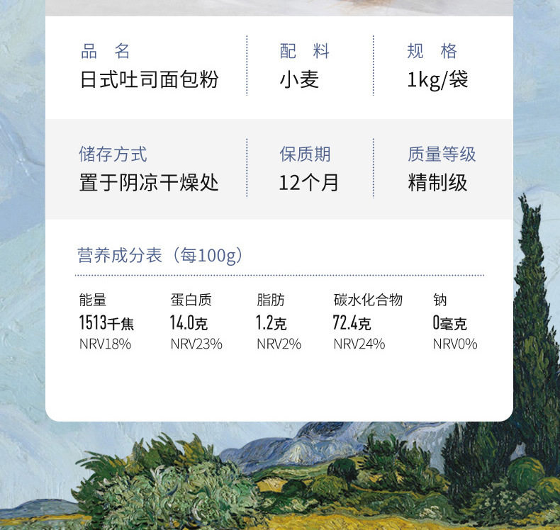 | Packaging specifications | Japanese toast bread flour 500g*24 bags [full box] |