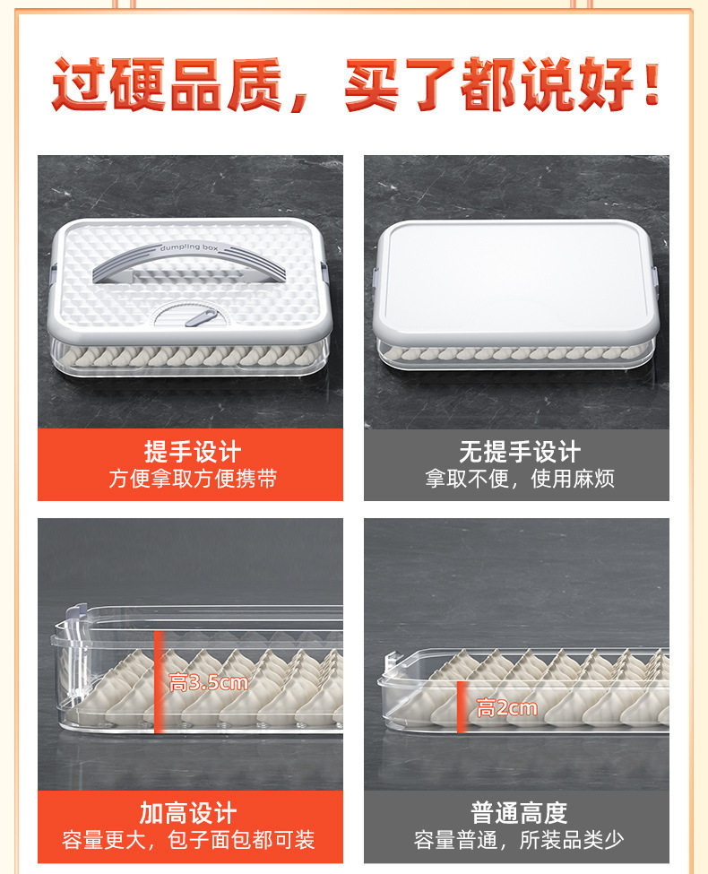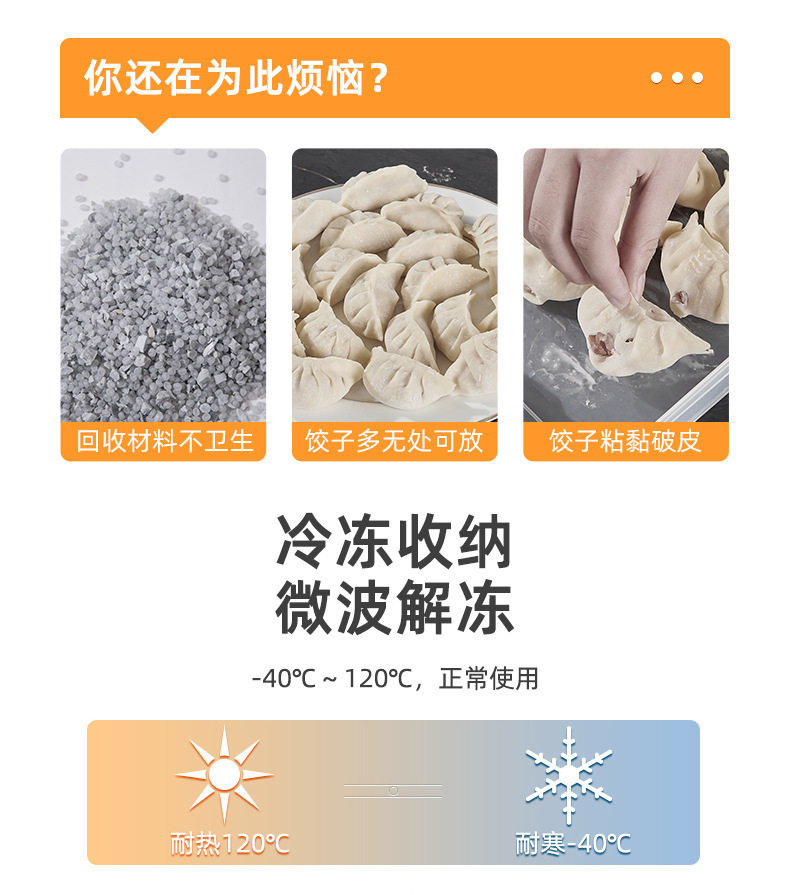 | Specification | [one layer and one cover] can hold 60 dumplings/anti-stick bottom/anti-freeze cracking (nordic white)♢,[two layers and one cover] can hold 120 dumplings/anti-stick bottom/anti-freeze cracking (nordic white)♢,[three layers and one cover] can hold 180 dumplings/anti-stick bottom/anti-freeze cracking (nordic white)♢,[four layers and one cover] can hold 240 dumplings/anti-stick bottom/anti-freeze cracking (nordic white)♢,[one layer and one cover] can hold 60 dumplings/anti-stick bottom/anti-freeze cracking (quiet blue) ♢,[two layers and one cover] can hold 120 dumplings/anti-stick bottom/anti-freeze cracking (quiet blue)♢,[three layers and one cover] can hold 180 dumplings/anti-stick bottom/anti-freeze cracking (quiet blue)♢,[four layers and one cover] can hold 240 dumplings/anti-stick bottom/anti-freeze cracking (quiet blue)♢ |