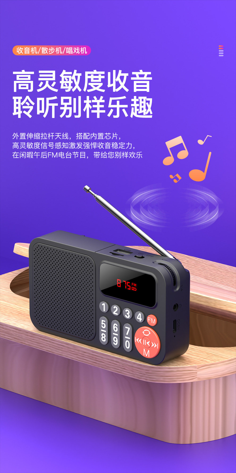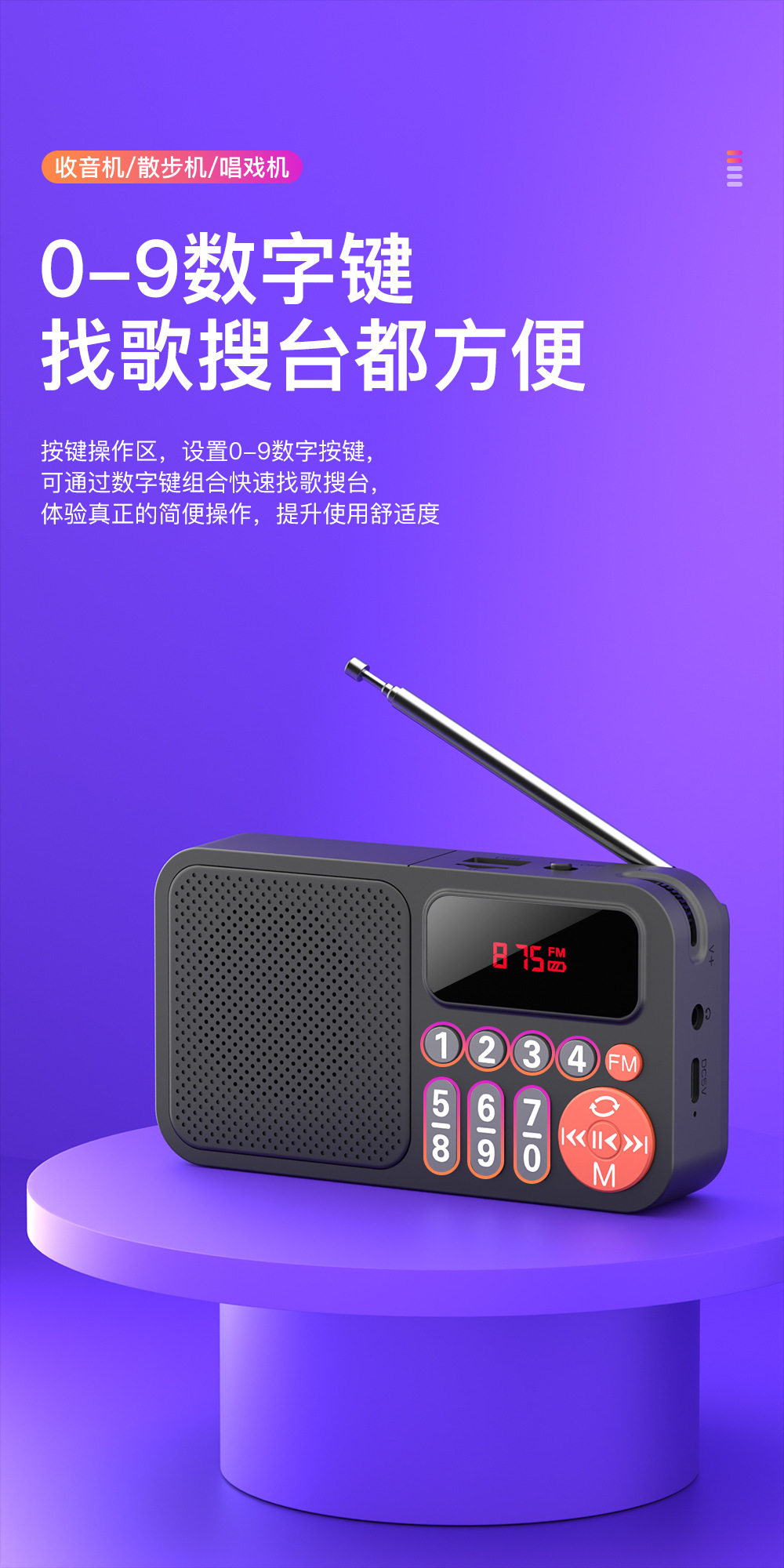 Becky T16 Multifunctional Radio Card Bluetooth Audio Small Portable Mp3 Subwoofer Player Wholesale