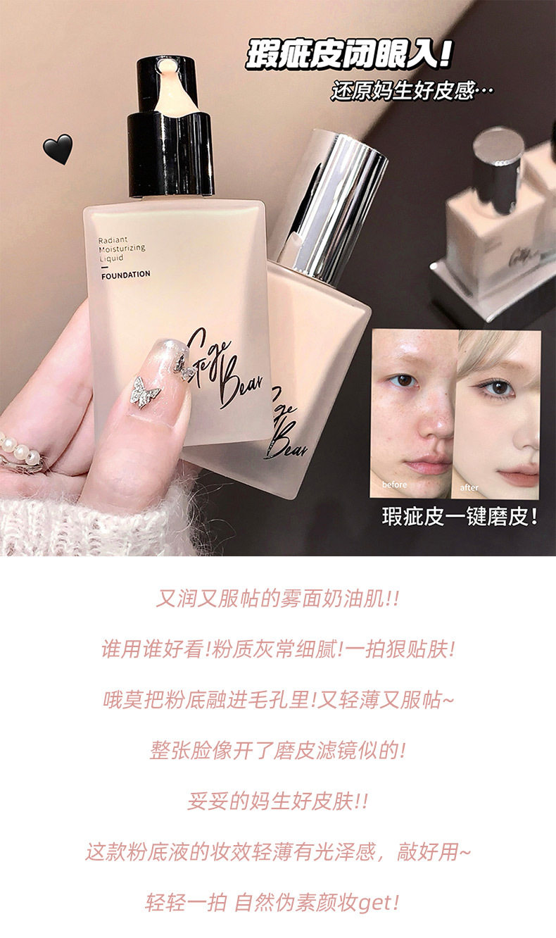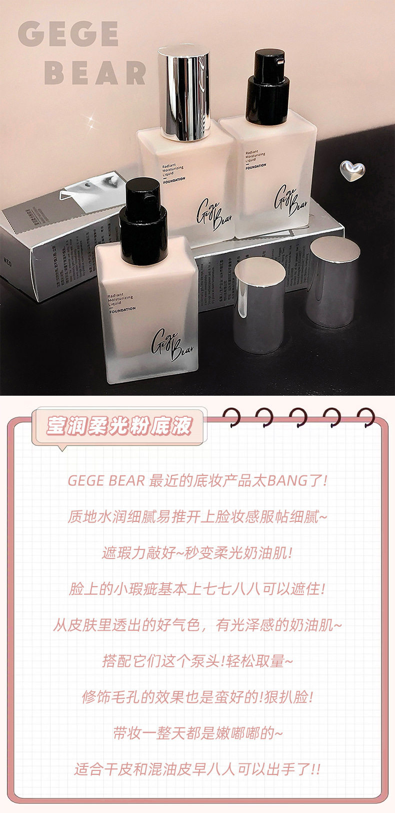 Cross-Border Gege Bear Radiant Soft Light Liquid Foundation Matte Long-Lasting Makeup Creamy Skin Girly Student Makeup Bb Cream