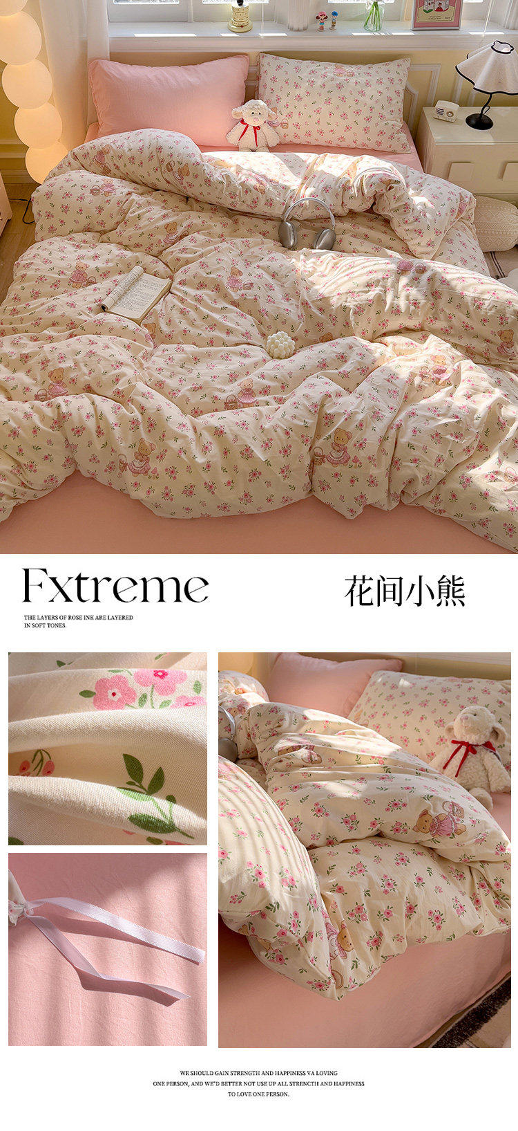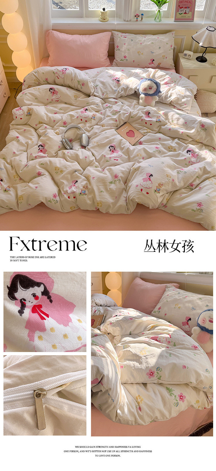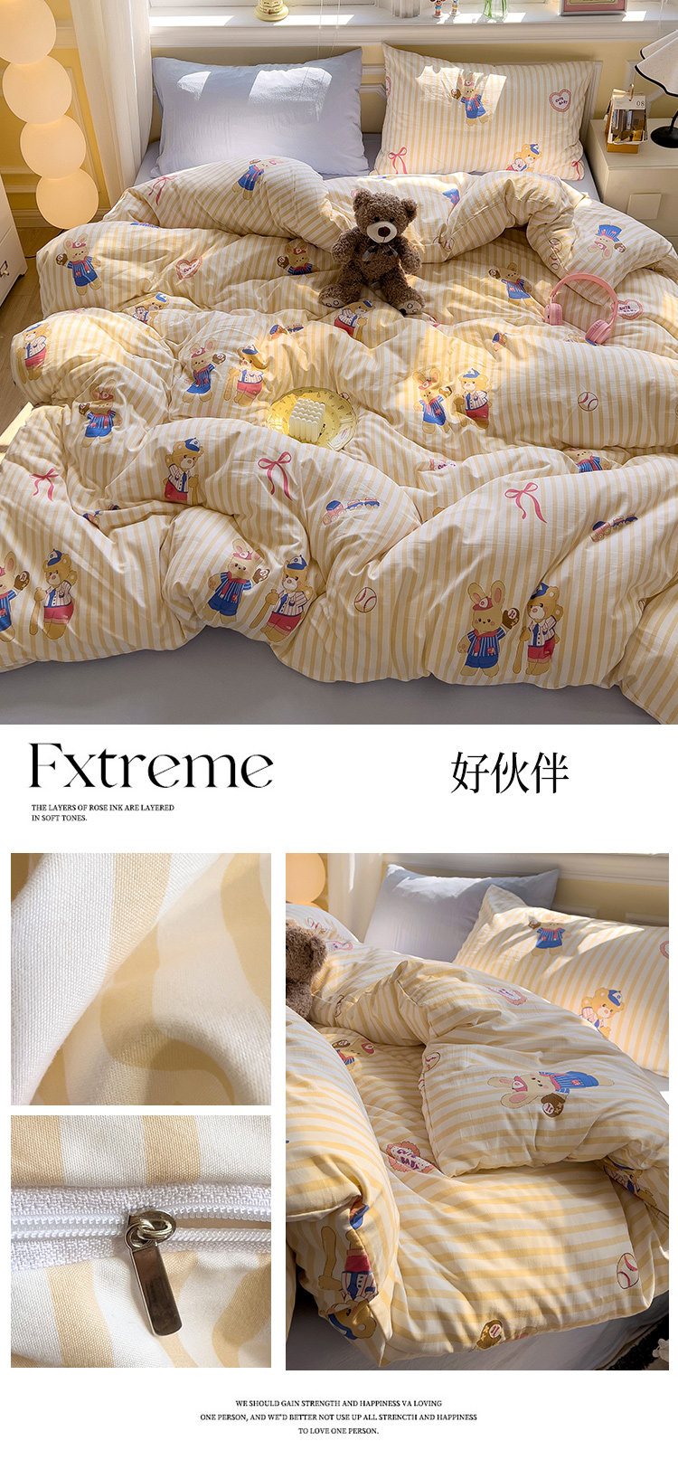 Class a Bedding Four-Piece Set Washed Cotton 2025 New Quilt Cover Bed Sheets Quilt Cover Student Dormitory Three-Piece Set 4