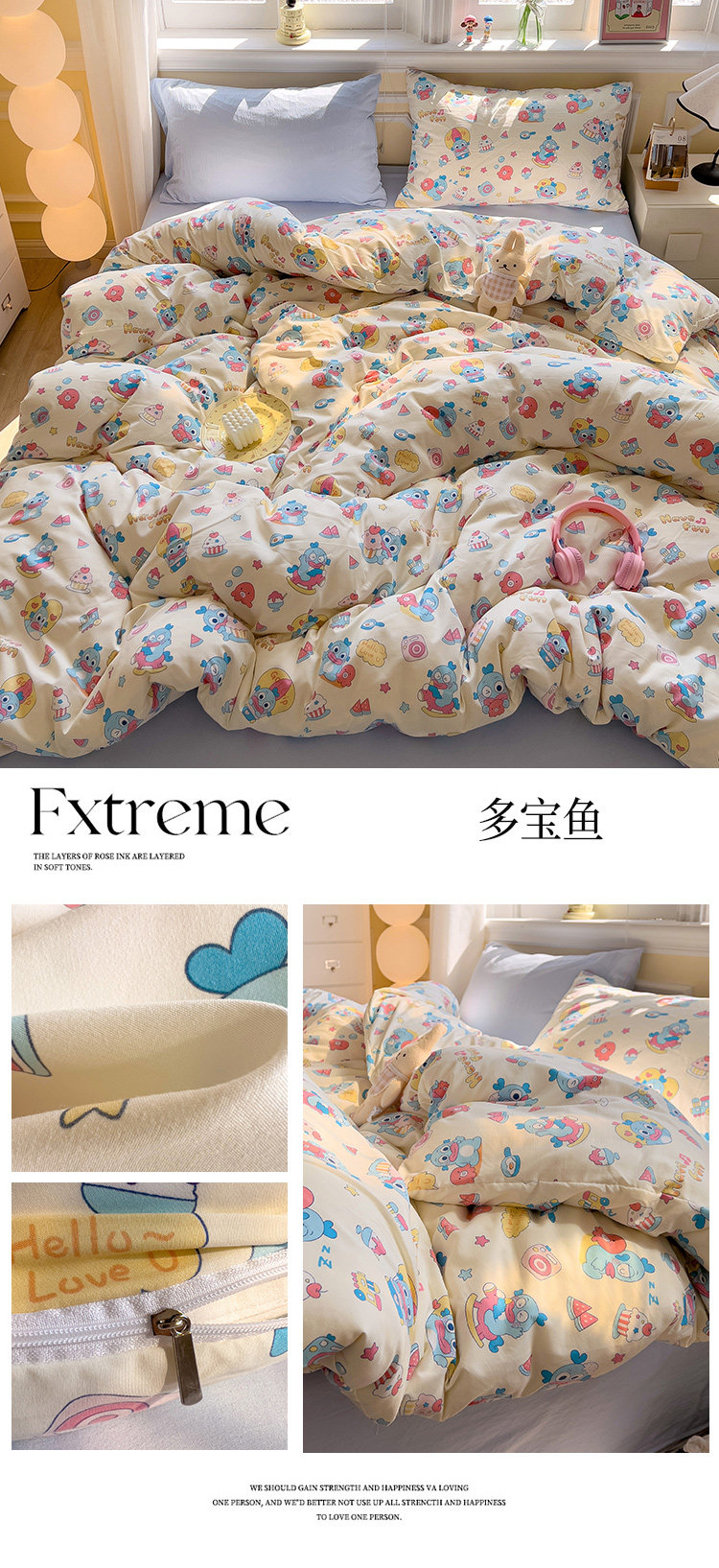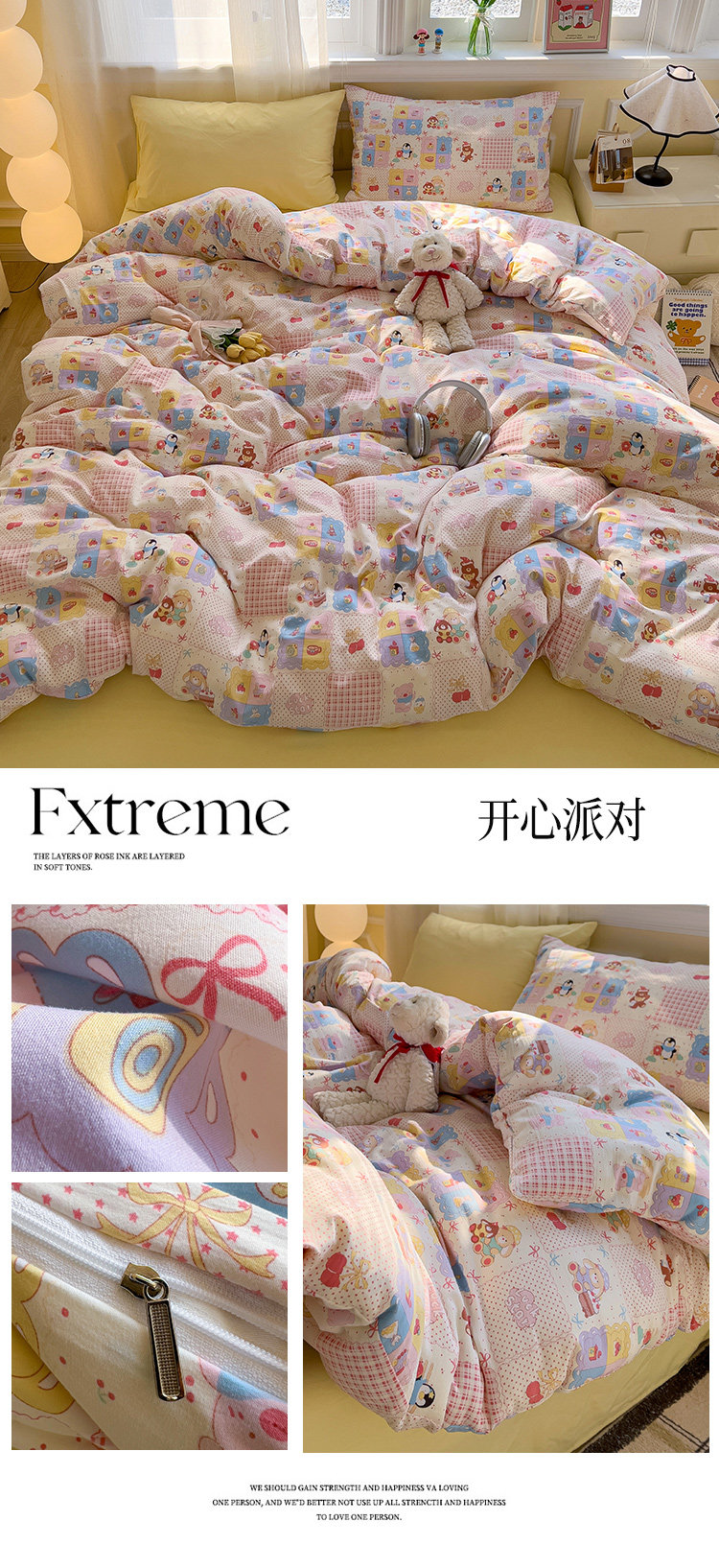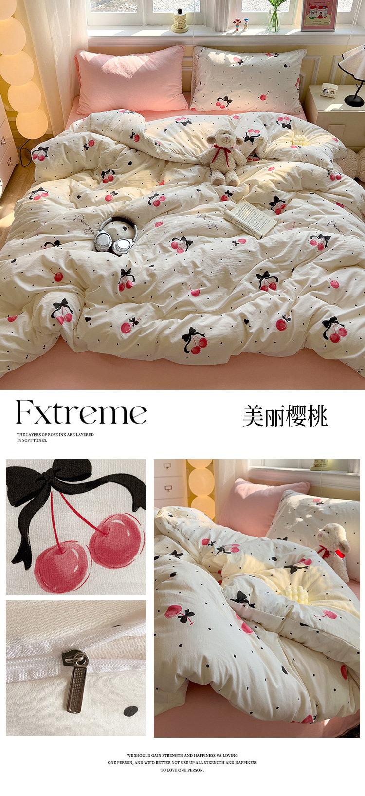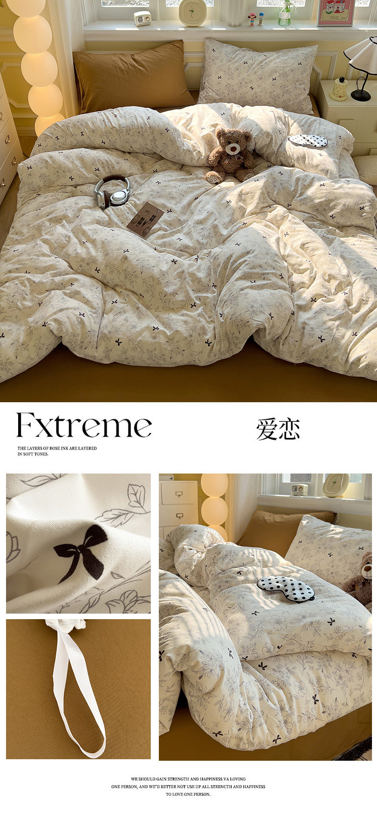 Class a Bedding Four-Piece Set Washed Cotton 2025 New Quilt Cover Bed Sheets Quilt Cover Student Dormitory Three-Piece Set 4