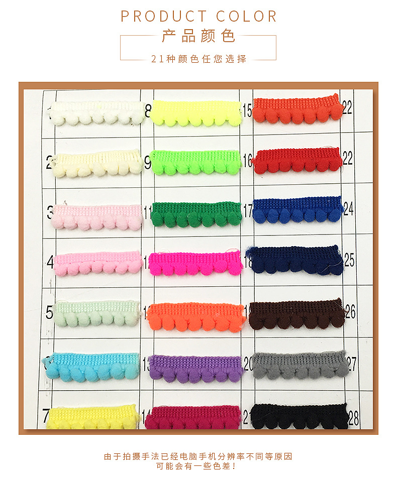 Lace manufacturers storage box with wave ball hair ball pompom lace, tooth edge hair ball 21 color perennial spot