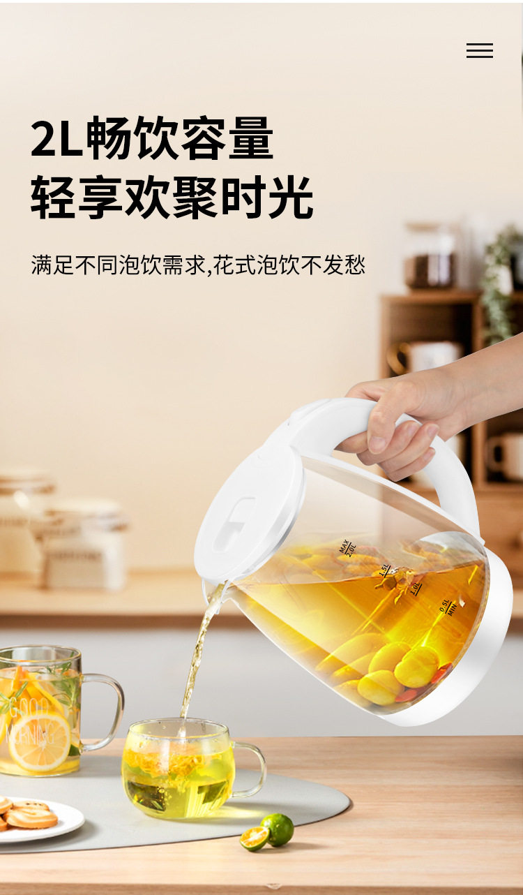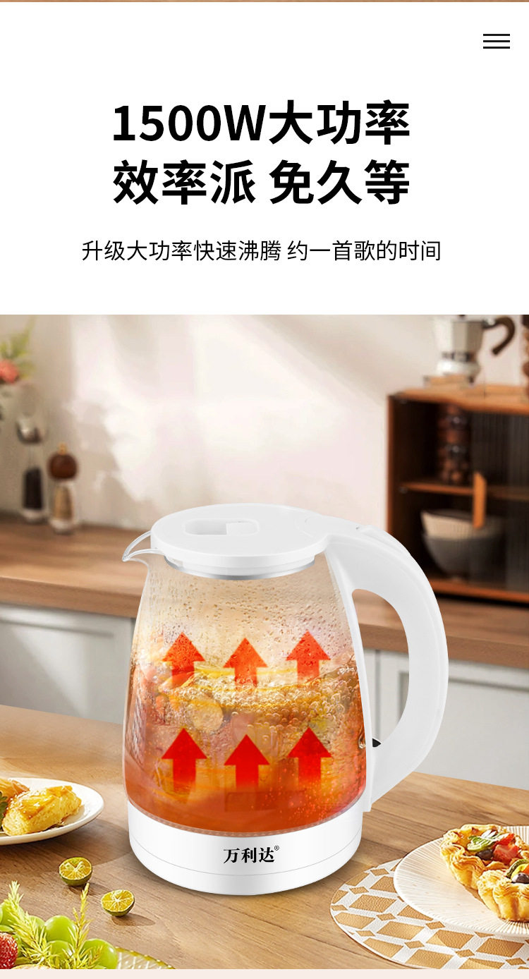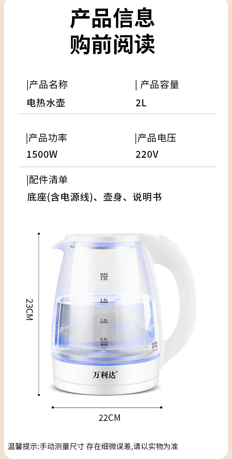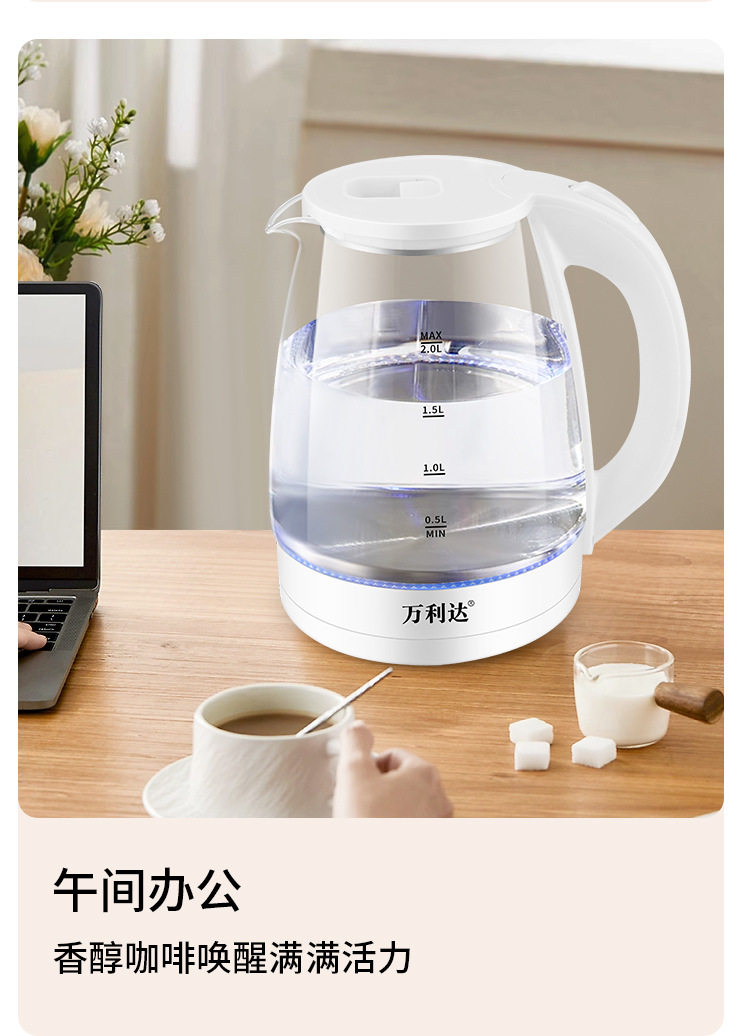 Wanlida Electric Water Kettle Household Gaopeng Glass 316 Stainless Steel Water Kettle Thermal Insulation Integrated Automatic Power Off 2 Liters