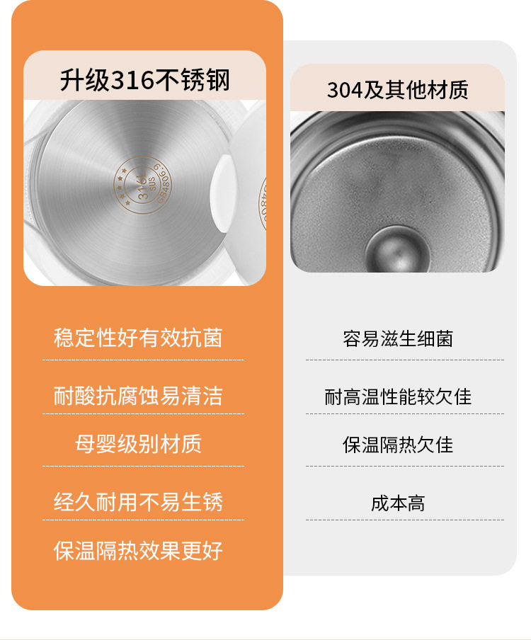 | Color | Top configuration] maternal and infant grade 316l steel + antibacterial + health glass + intelligent thermal insulation,Top configuration] maternal and infant grade 316l steel + antibacterial + health glass + non-insulation,High configuration] food grade 304 steel + gaopeng glass + intelligent thermal insulation,High configuration] food grade 304 steel + gaopeng glass + non-insulation,For food contact + gaopeng glass + thermal insulation type,For food contact + ordinary glass + no heat preservation |