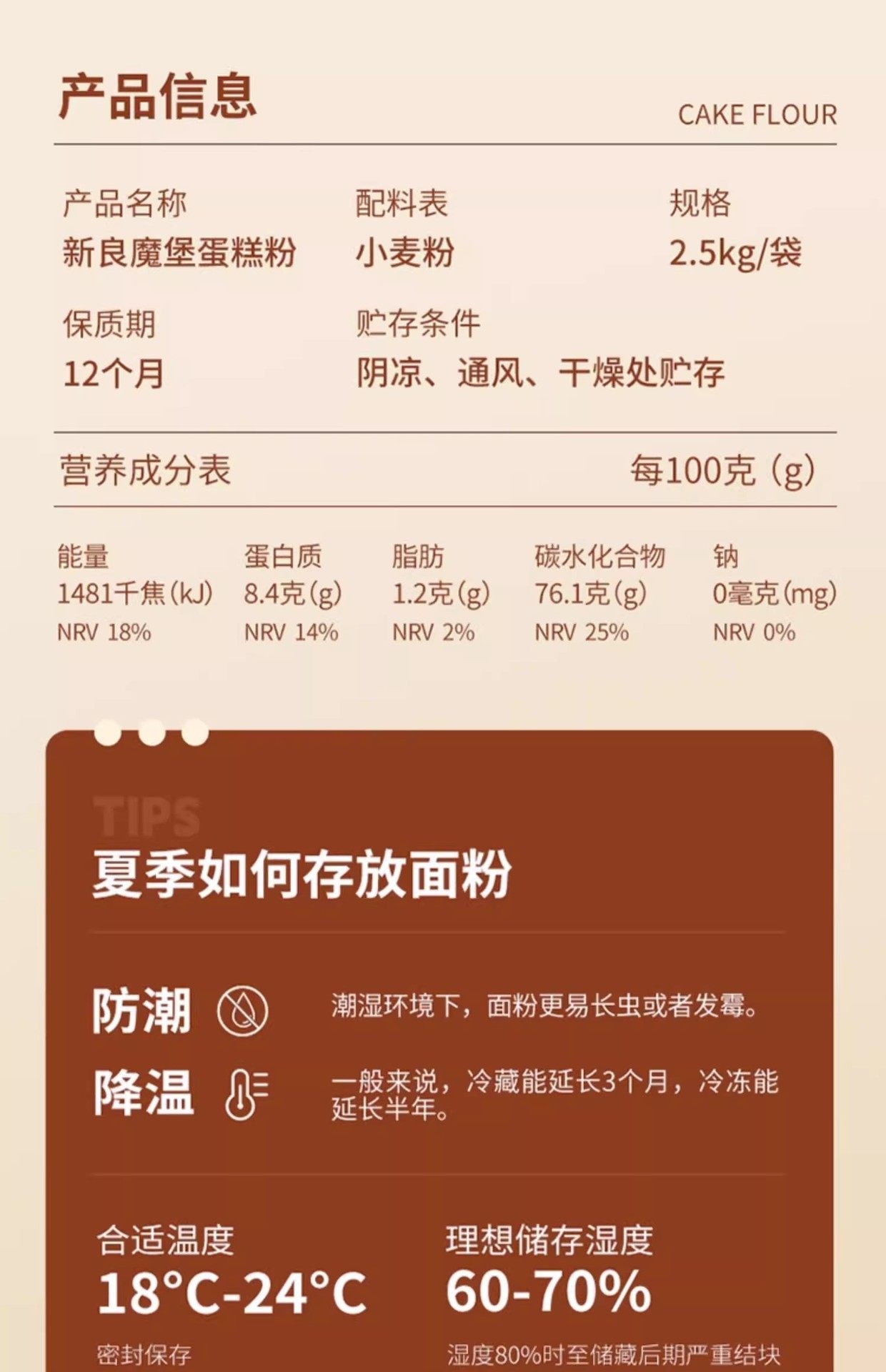 | Packaging specifications | Xinliang magic castle cake flour 2.5kg |