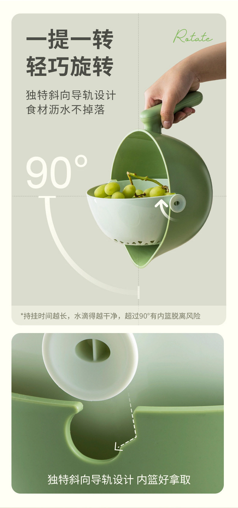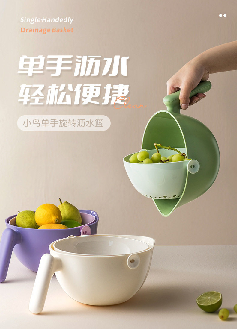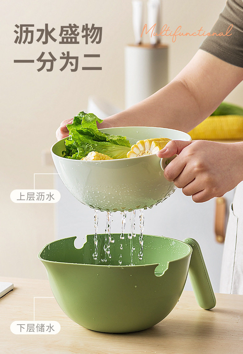 Kitchen Sink Strainer Basket, Double-Layer Vegetable Basket Storage Rack, Household Kitchen Rotating Fruit and Vegetable Strainer Basket