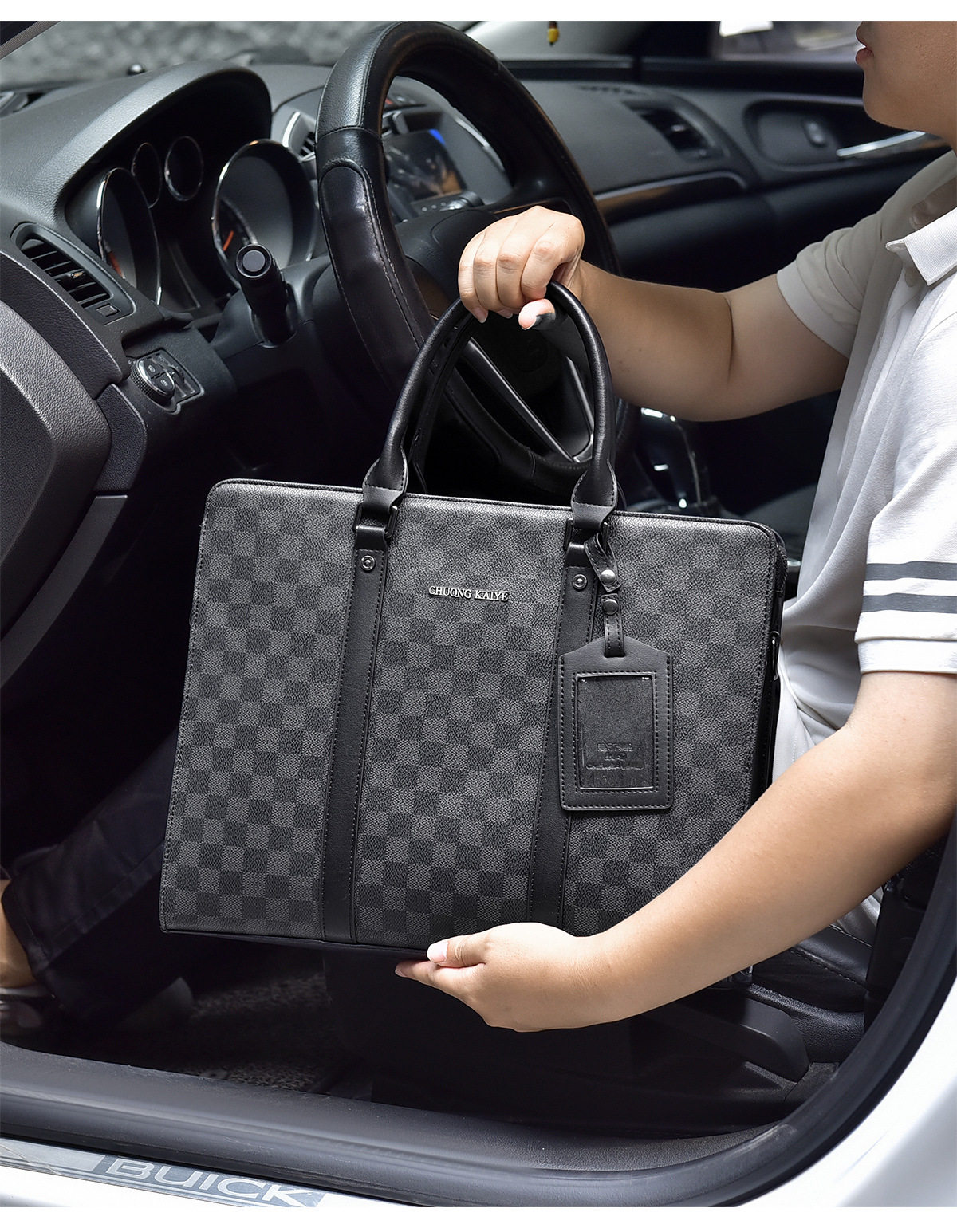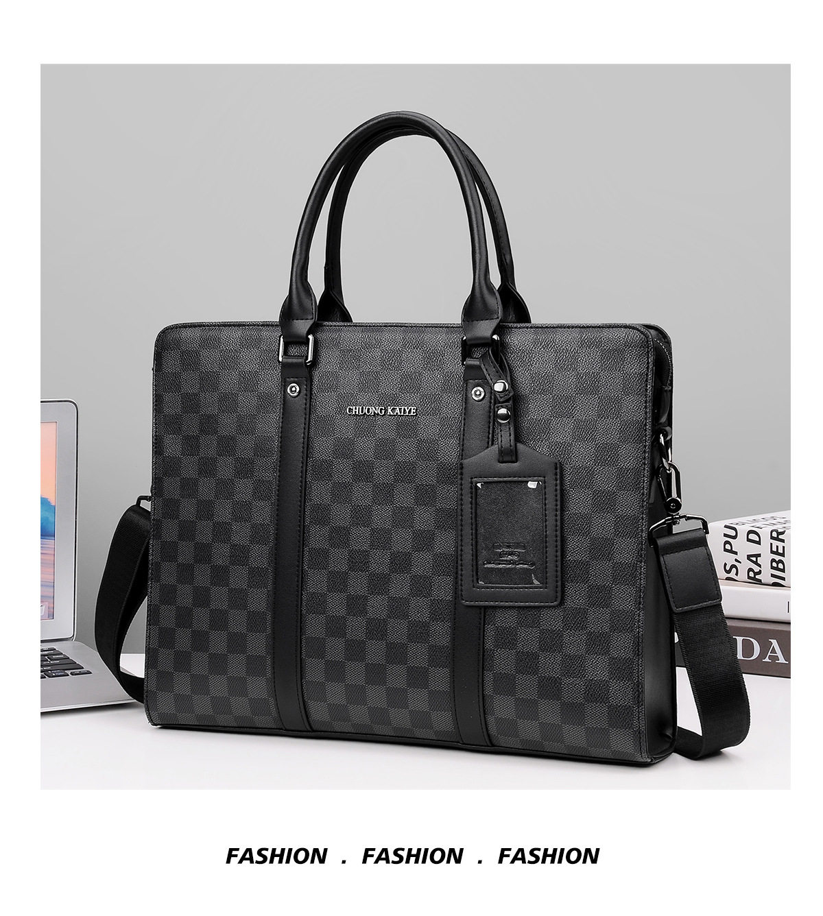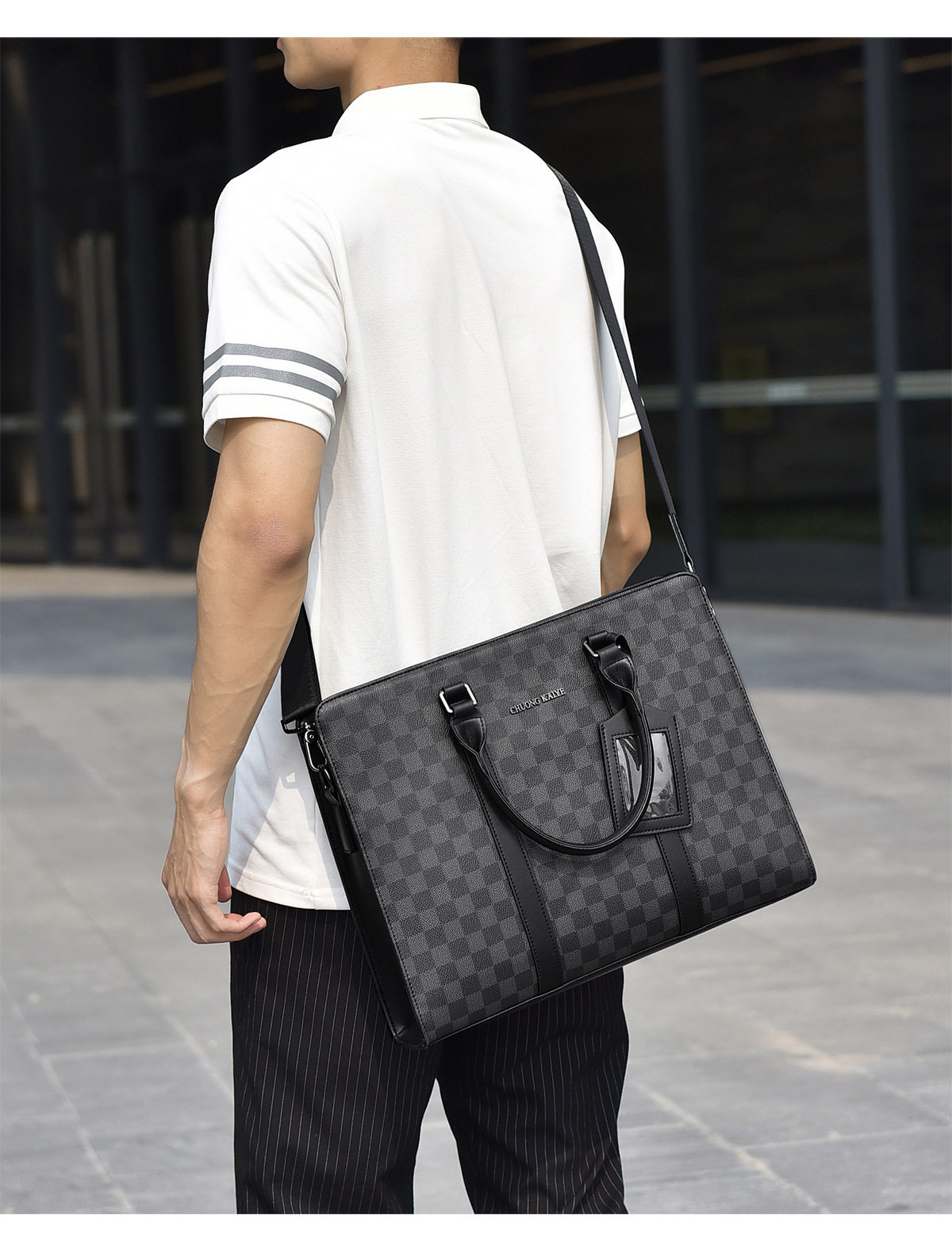 New Men's Handbag Business High-End Crossbody Fashion Plaid Large-Capacity Briefcase Men's Casual Shoulder Bag