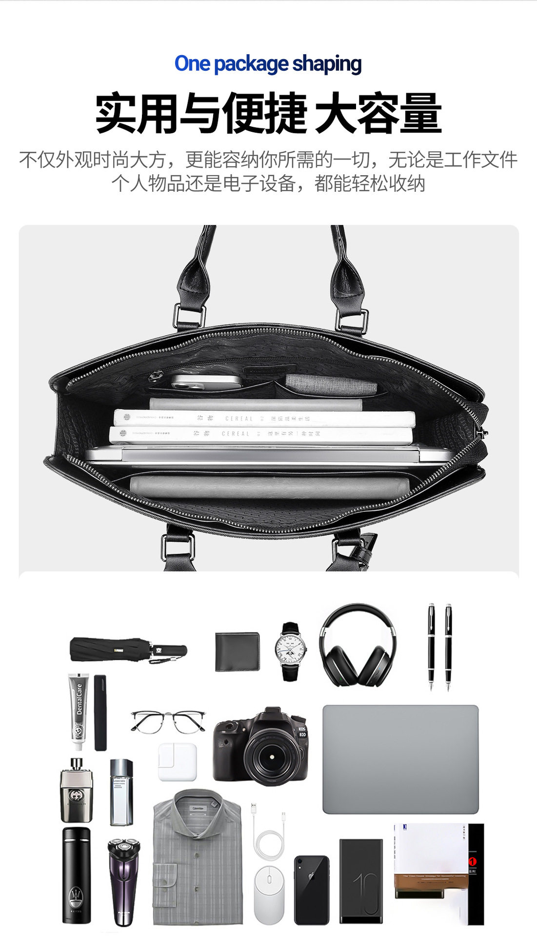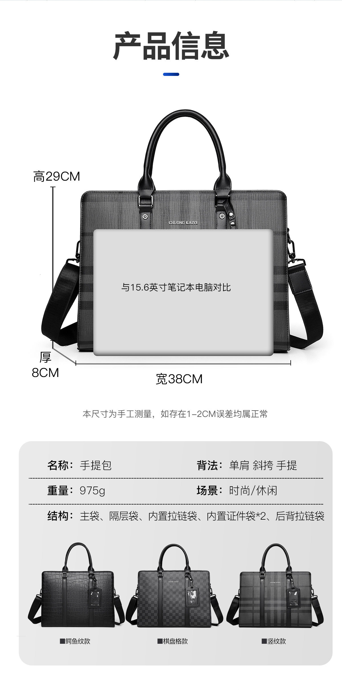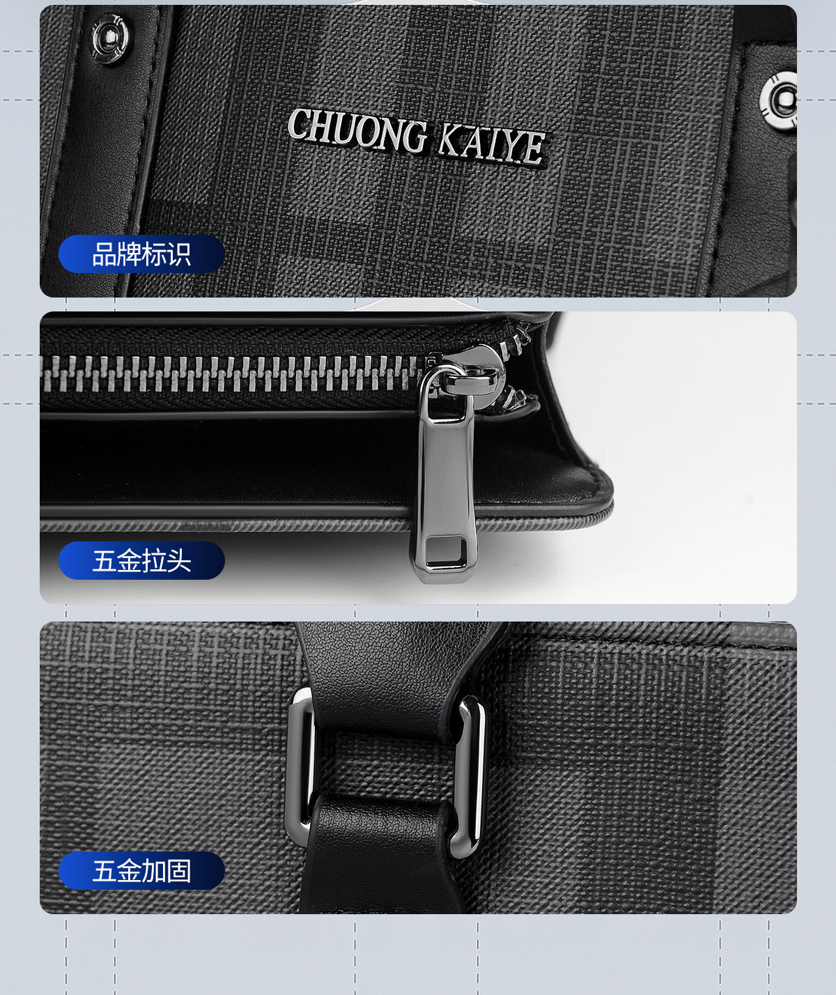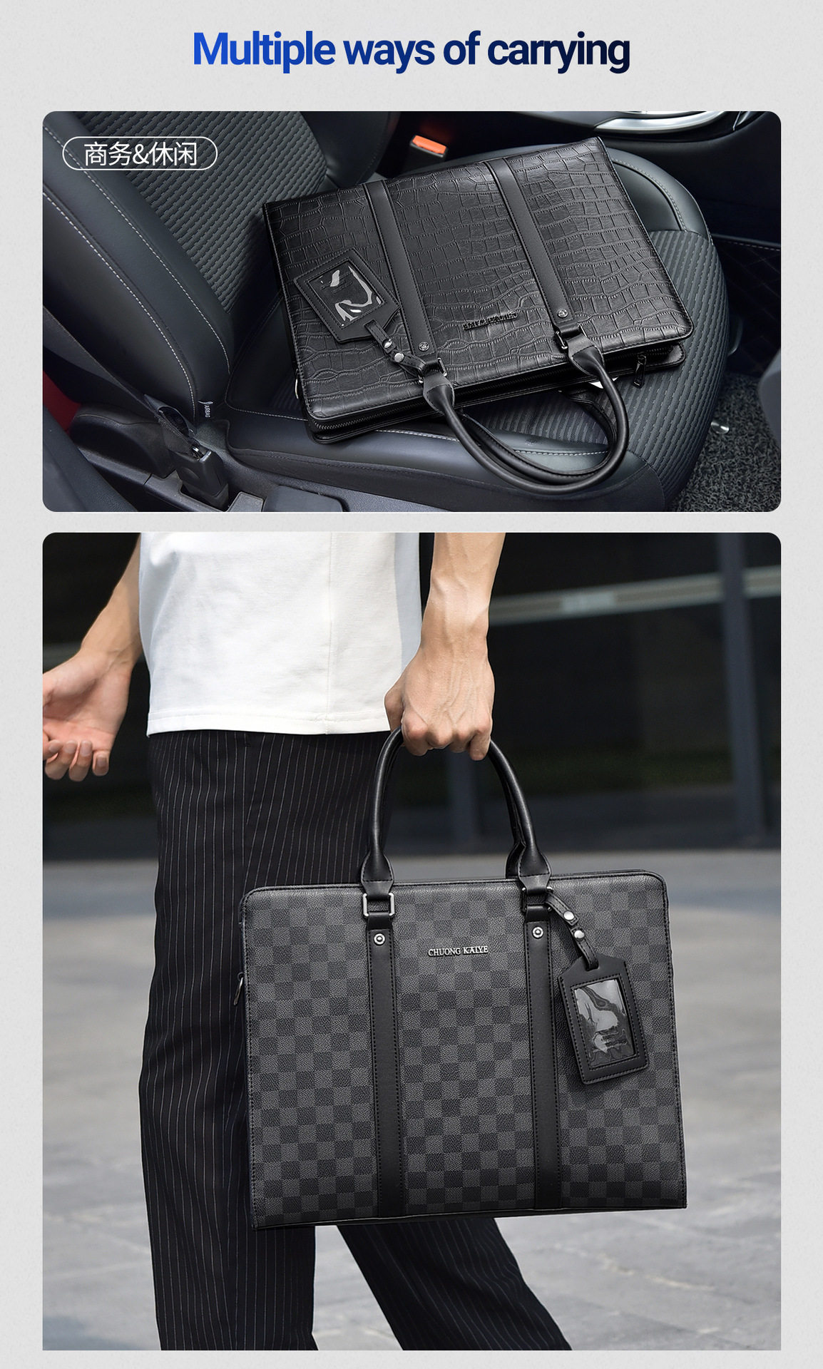 New Men's Handbag Business High-End Crossbody Fashion Plaid Large-Capacity Briefcase Men's Casual Shoulder Bag