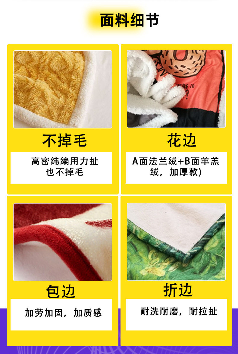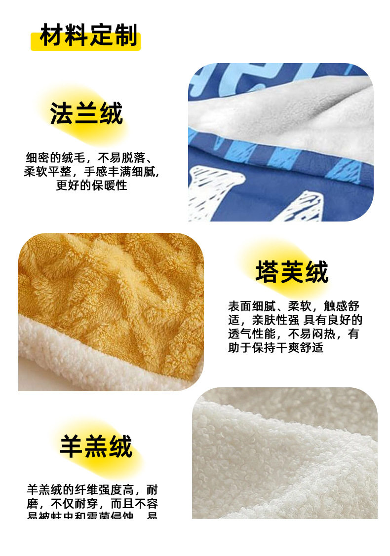 | Color | Single layer flannel,Double layer flannel + sherpa,Ice monster,Shiba inu group,Mechanical shark tide,Dinosaur baby,Cute dog wizard,Graffiti duck king,Barking after cake,Colorful witch,Knitted lamb |