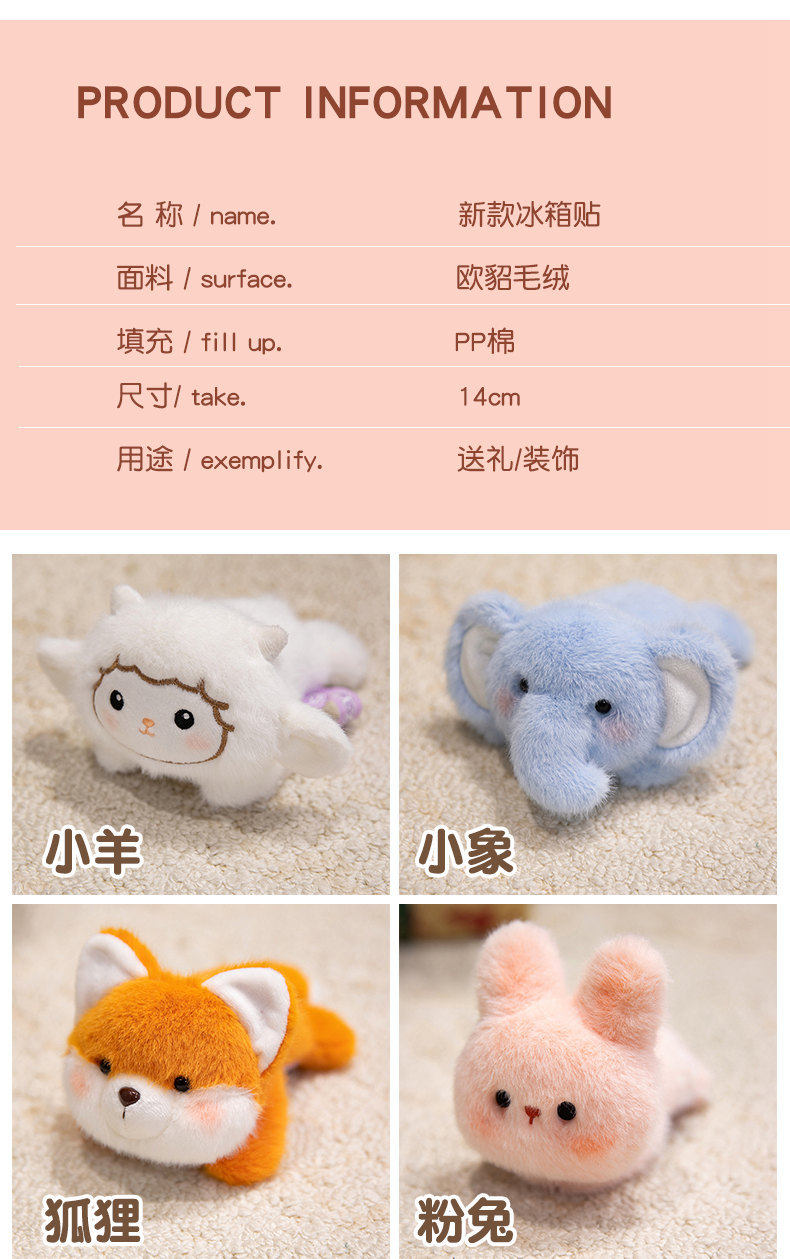 Cartoon Plush Doll Refrigerator Magnet Fun Magnetic Lying Animal Doll Cultural and Creative Tourism Peripheral Gifts