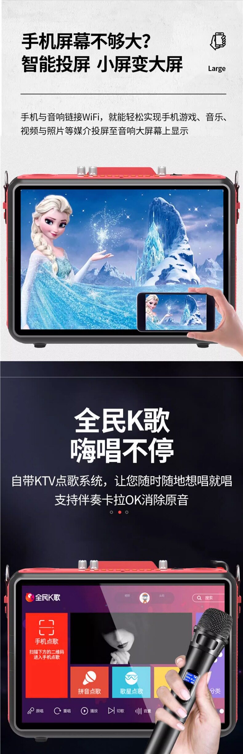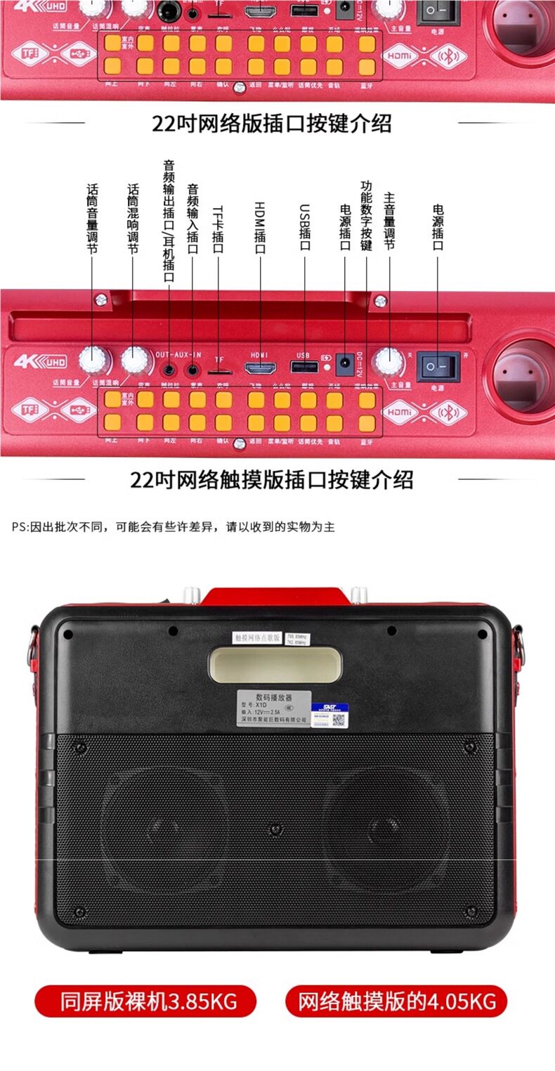 | Color | 19inch bluetooth version (you can configure your own card/u disk),19inch bluetooth version + 32g video usb flash drive,19inch bluetooth version + 32g video usb flash drive + 1 wireless microphone,19inch bluetooth version + 32g video usb flash drive + 2 wireless microphones |