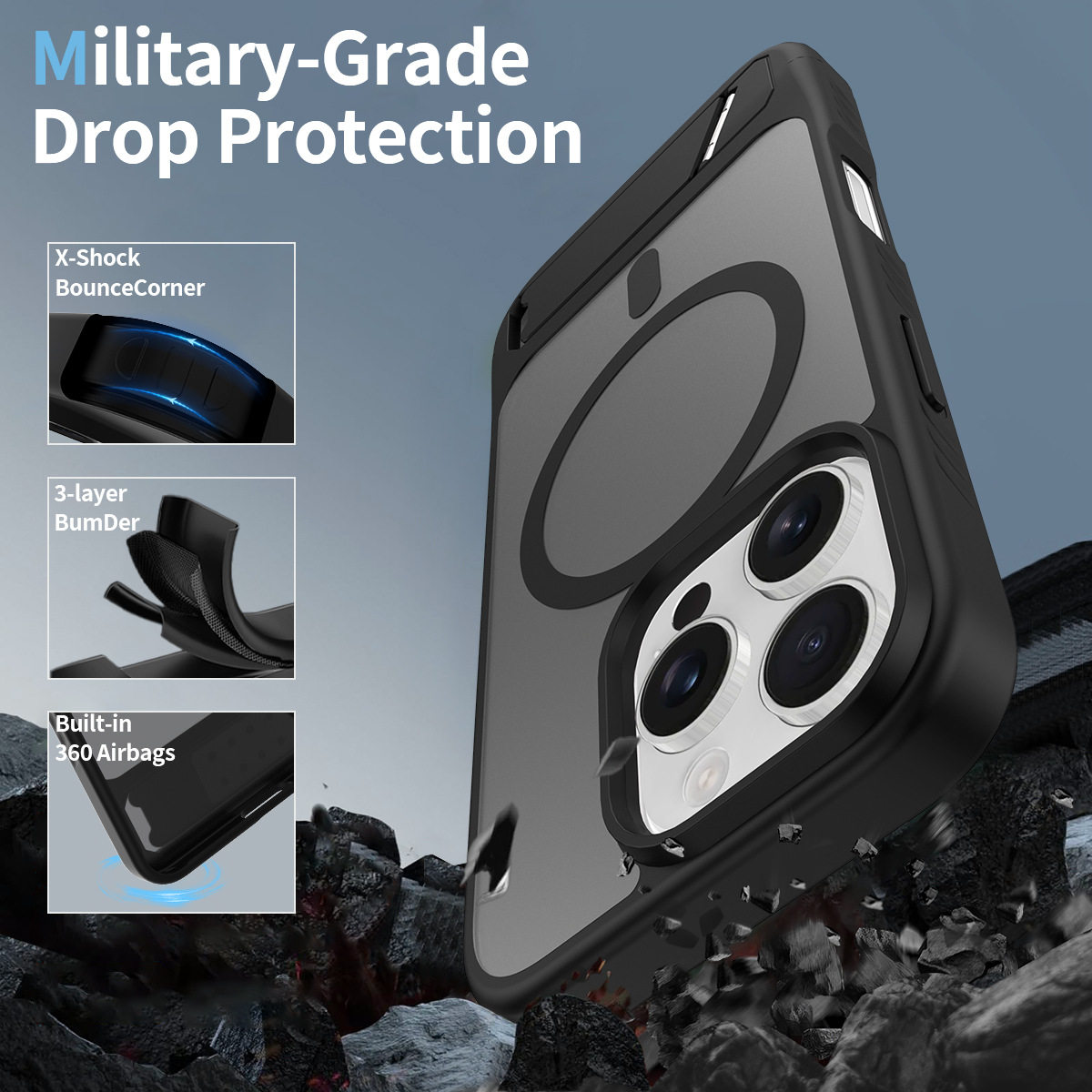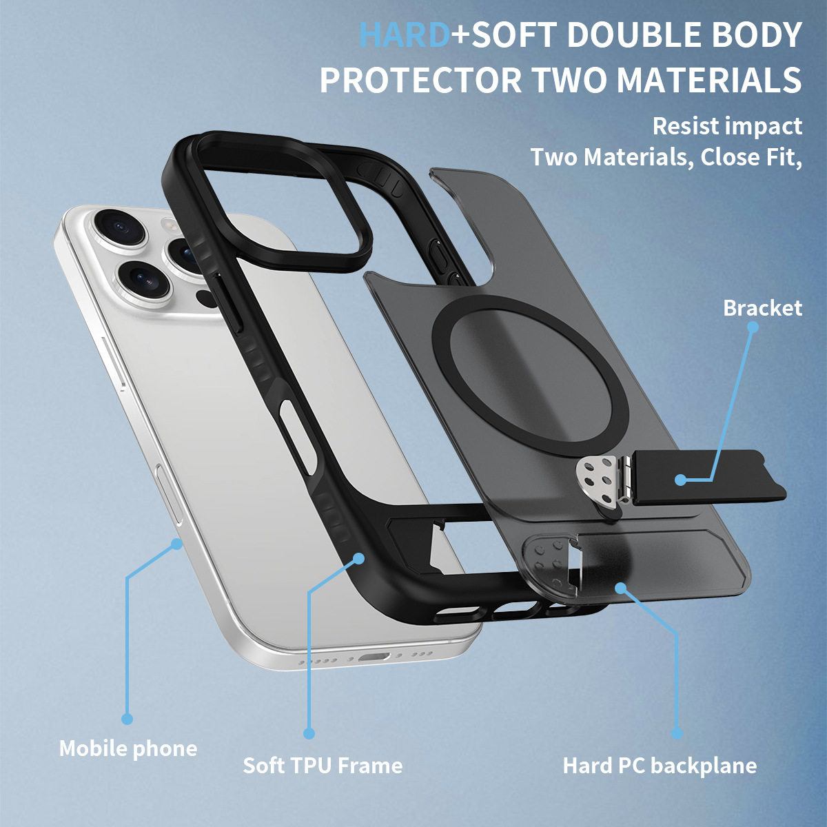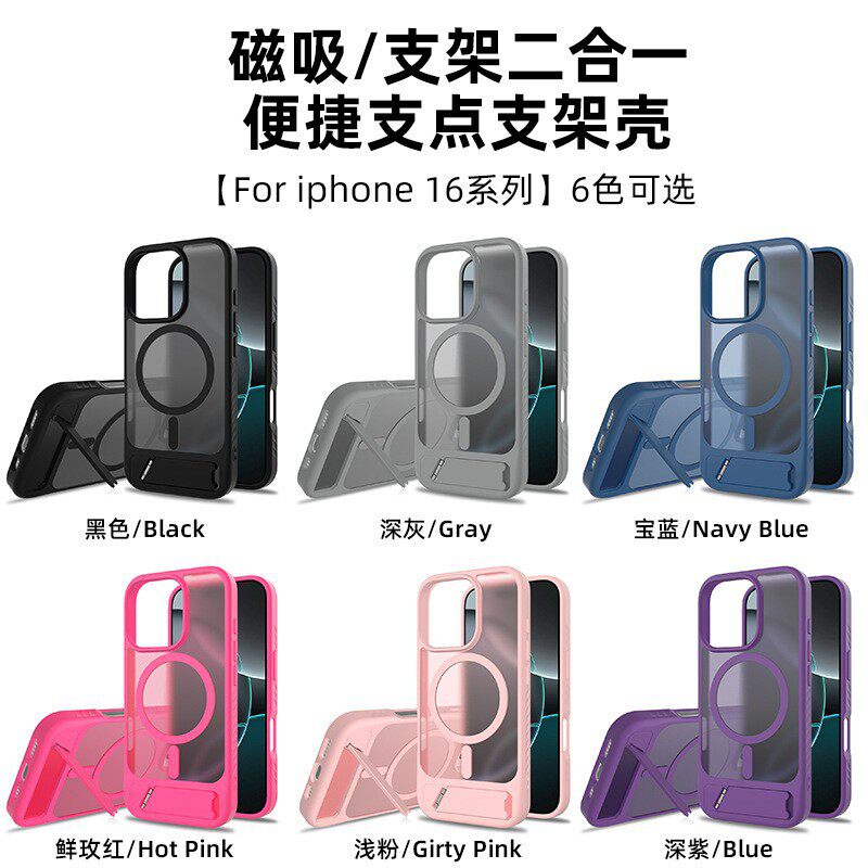 Cross-Border Applicable Apple 16Pro Magnetic Phone Case Two-In-One Stand Phone Case 16E Car Skin-Feel Matte 16
