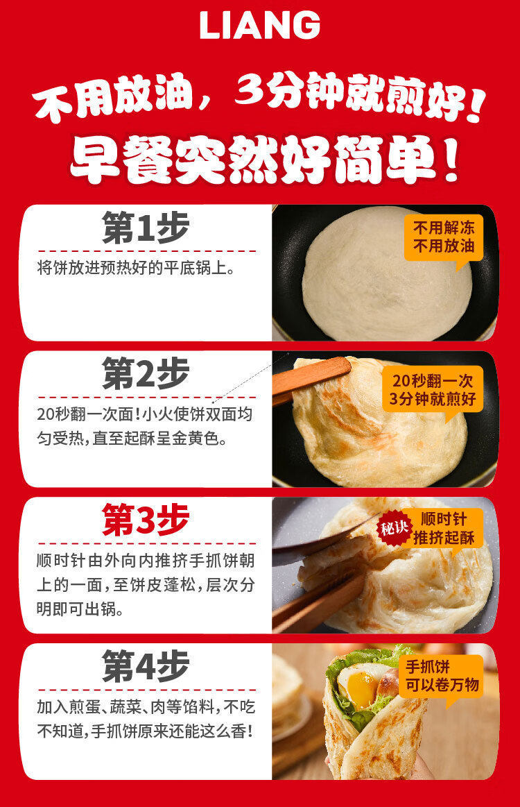 Liangquanqimei Original Hand-Grabbed Pancake, Onion-Flavored Hand-Grabbed Pancake, Breakfast Instant Pancake, Heated Ready-To-Eat Pancake, Whole Box