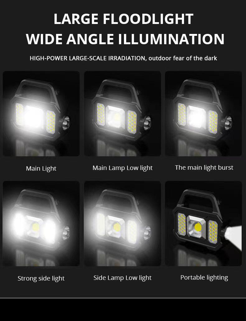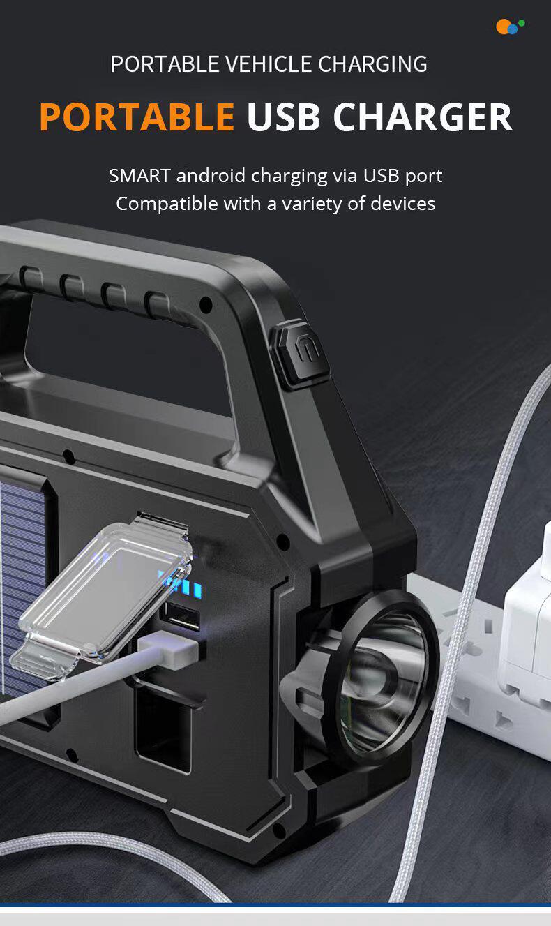 Led Solar Flashlight Strong Light Outdoor Charging Portable Multi-Function Cob Work Light Satchel Searchlight