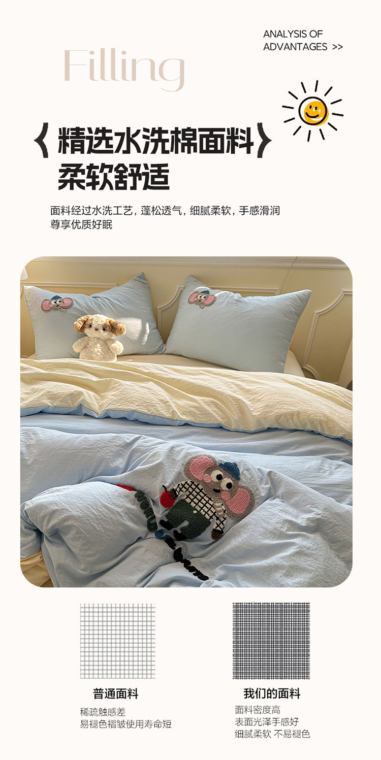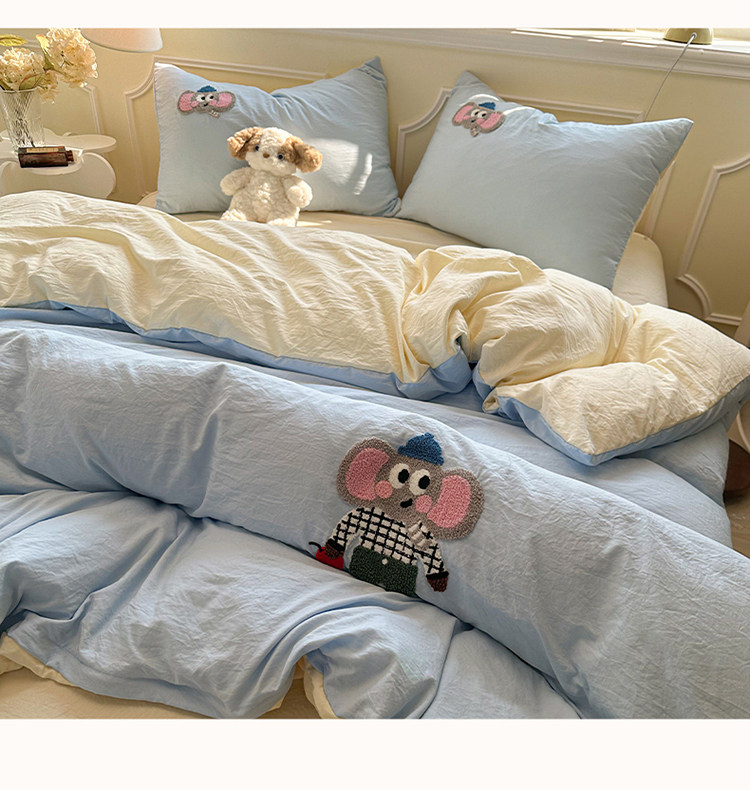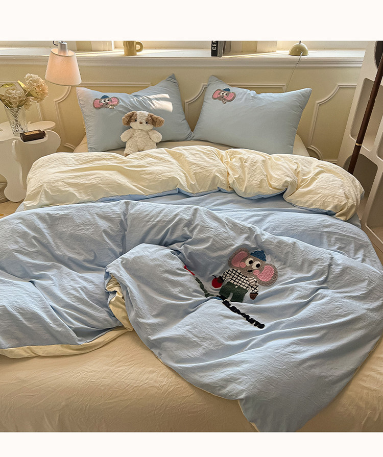 Ins Light Four-Piece Set 2025 New Washed Cotton Bed Sheet Duvet Cover Bedding Student Single Dormitory Three-Piece Set