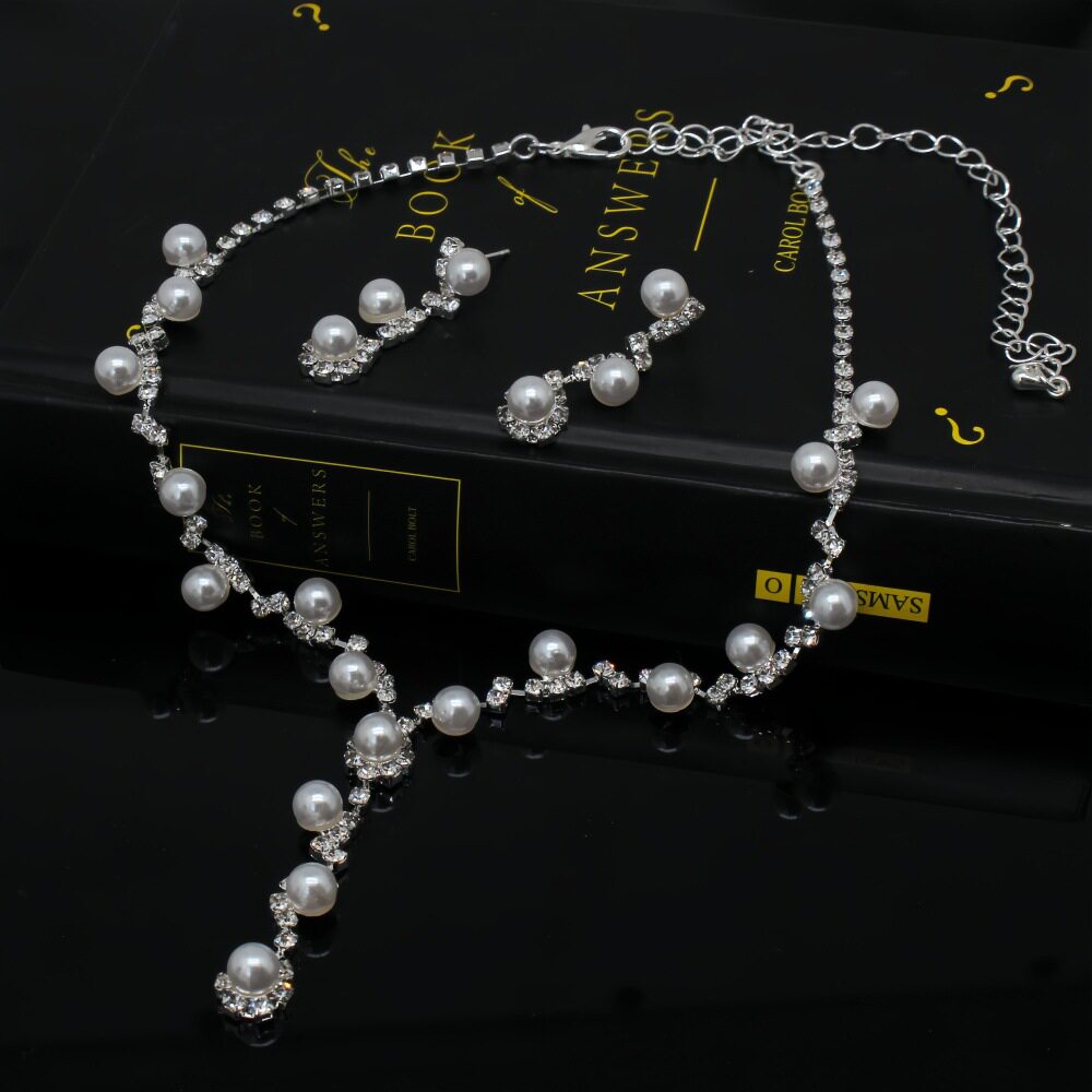 Sweet Temperament Necklace and Earrings Set, Light Luxury and High-End Clavicle Chain, Simple and Fresh Wedding Necklace for Women Wholesale