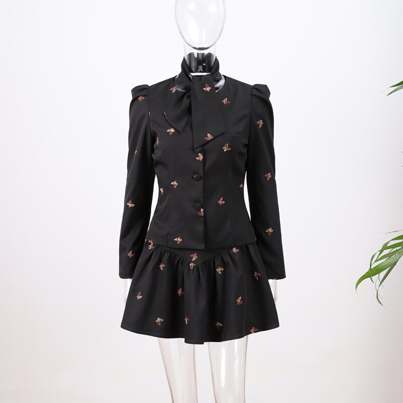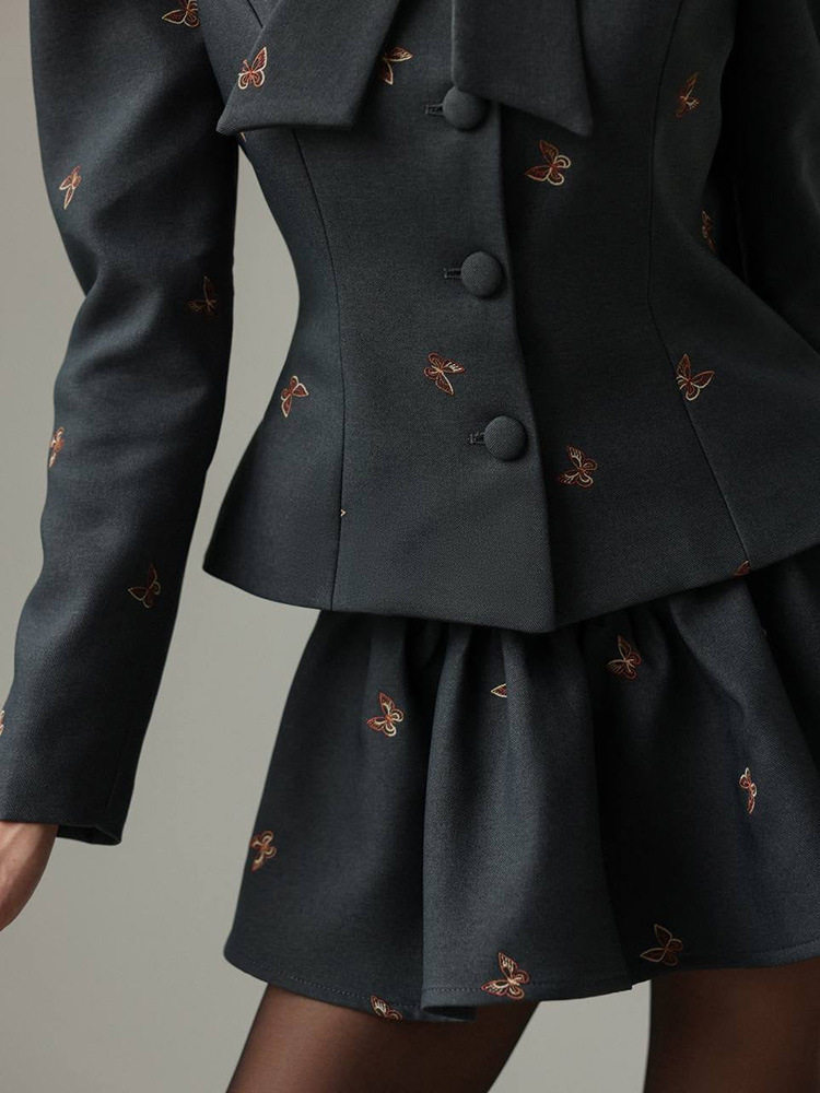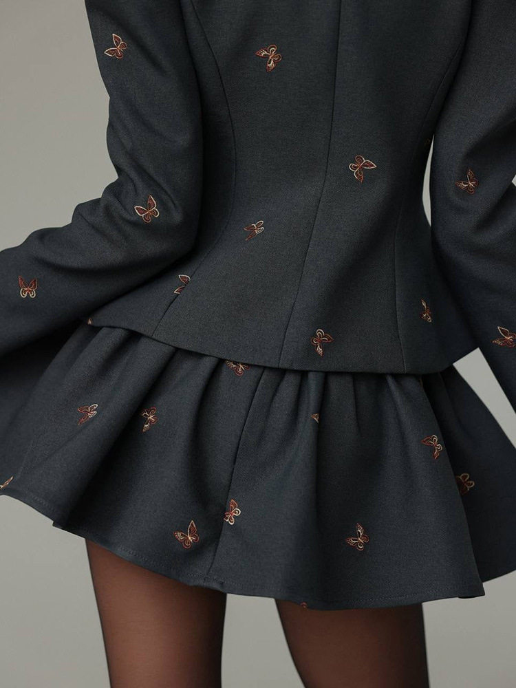 European and American Cross-Border 2025 Summer and Autumn Style Suit Embroidered Waist Long-Sleeved Jacket Short Skirt Suit Two-Piece Set