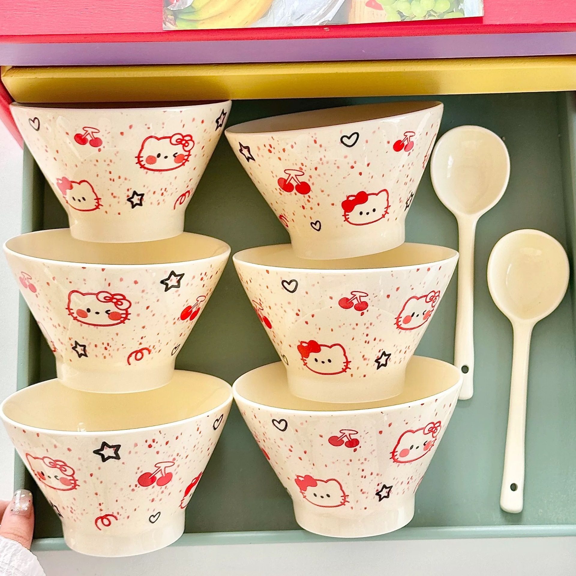 | Color | 【1 piece】cherry hat bowl,【2 pieces】cherry hat bowl,[2-piece set] cherry hat bowl + ceramic spoon,【4 pieces】cherry hat bowl,【6 pieces】cherry hat bowl,[set of 4] 2 cherry hat bowls + 2 ceramic spoons |