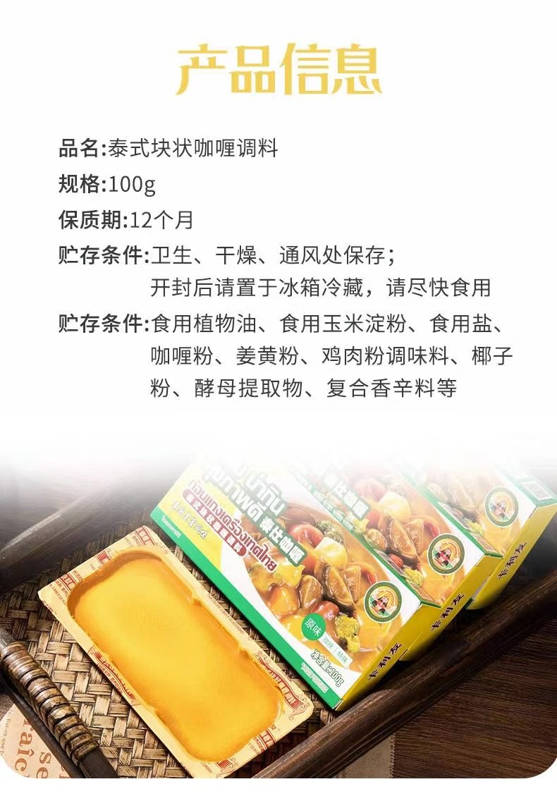 Kaliyou Thai Curry Cubes Household Original Slightly Spicy Extra Spicy Curry Wholesale Seasoning 100g*3 Boxes