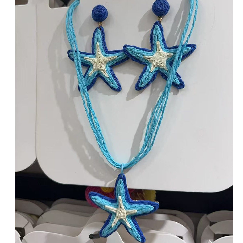 | Color | A blue starfish necklace,A brown starfish necklace,A colorful starfish necklace,A pair of blue starfish earrings,A pair of brown starfish earrings,A pair of colorful starfish earrings |