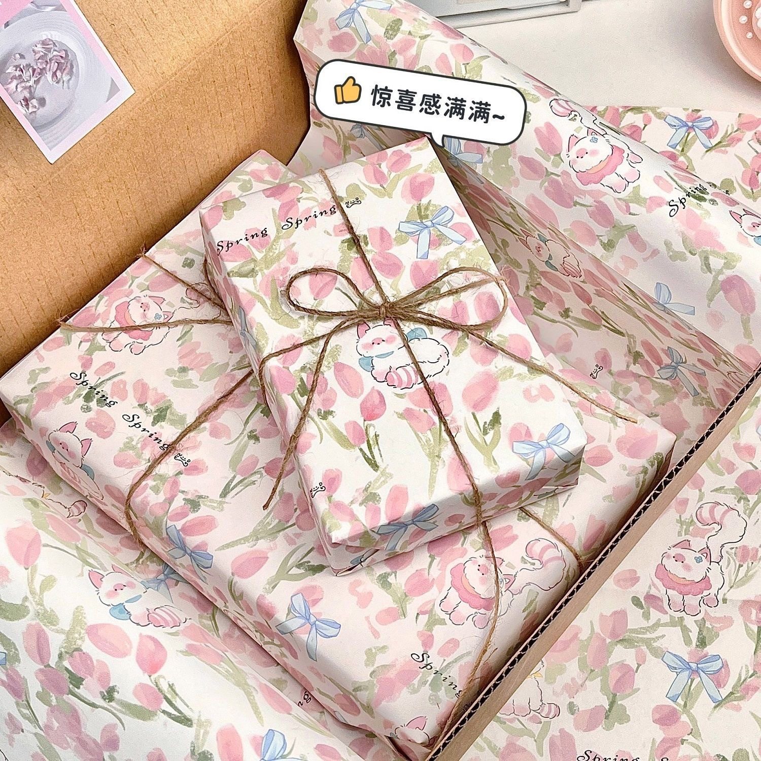 | Color | Pink tulip wrapping paper 1 pack,Double-sided tape [5mm*4.5m],1 bundle of hemp rope [10m],Packaging rope-ribbon [1 bundle*5m] |