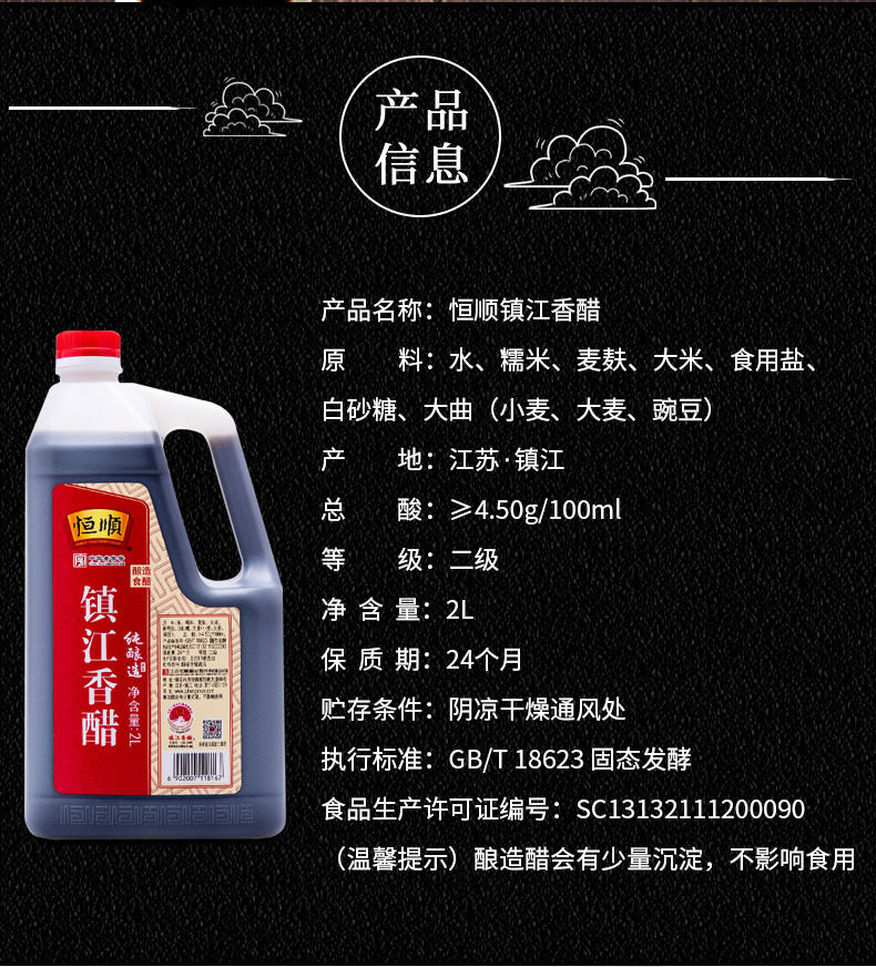 Hengshun Balsamic Vinegar 2L *1 Barrel Zhenjiang Specialty Glutinous Rice Brewed Vinegar Household Affordable Cooking Cold Dipping Dumplings