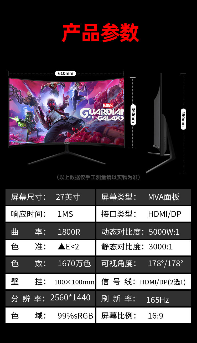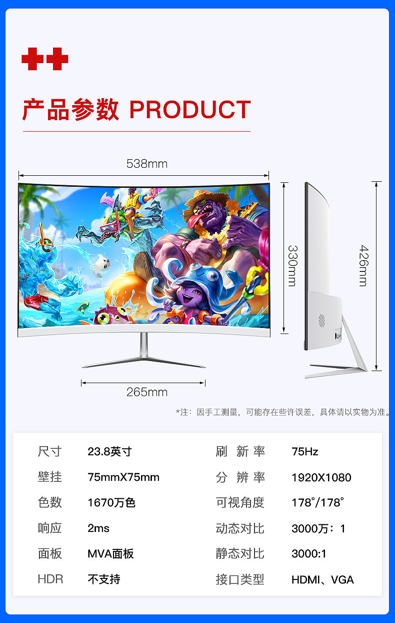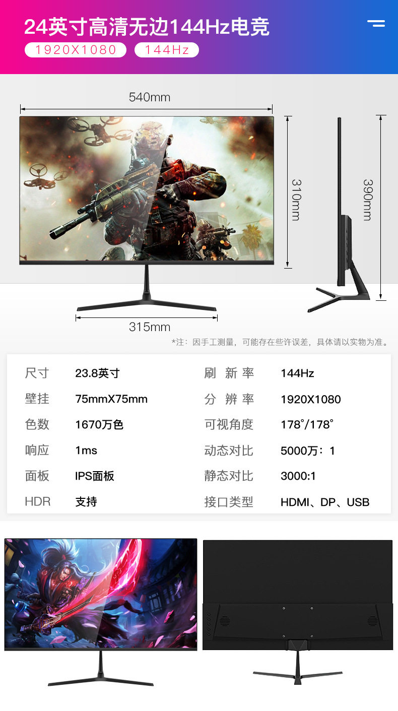 | Size | Orange black 24inch direct face 1k75hz-official standard,Beautiful white 24inch face 1k75hz-official standard,Brown black 24inch curved surface 1k75hz-official standard,Big white 24inch curved surface 1k75hz-official standard,Night black 24inch face 1k165hz-official standard,Atmospheric black 24inch curved surface 1k165hz-official standard,Black and red 27inch face 1k75hz-official standard,Black 27inch curved surface 1k75hz-official standard,White 27inch curved surface 1k75hz-official standard,Black 27inch face 2k 100hz-official standard,Silver black red 27inch face 1k165hz-official standard,Brilliant black 27inch curved surface 1k165hz-official standard,Glacier white 27inch curve 2k75hz (this model is black) - official standard,Small black 27inch curved surface 1k200hz-official standard,Splash black 27inch face 2k 170hz-official standard,Graffiti black 32inch face 1k75hz [monitoring recommendation] - official standard,Elegant black 32inch curved surface 1k75hz [big hot model, must buy - official standard,Apricot white 32inch curved surface 1k75hz (big hot model, must buy - official standard configuration,Matte black 27inch curved surface 2k 165hz (upgraded to 180hz) - official standard,Black matte 32inch curved surface 1k144hz-official standard,Miscellaneous black 32inch curved surface 1k165hz-official standard,Dahei 27inch faces 2k170hz lifting and rotating base - official standard,Big black 32inch curved surface 2k 75hz-official standard,Gray black 32inch curved surface 1k200hz-official standard,Pure black 27inch curved surface 2k180hz lifting and rotating base - official standard,Gray 32inch direct face 2k75hz-official standard,Pure black 32inch curved surface 2k 120hz-official standard,Single black 32inch curved surface 4k75hz (for design only) - official standard,Black gray 32inch direct face 2k165hz-official standard,Dark black gray 32inch curved surface 2k180hz [must buy for games - official standard,Double black gray 32inch curved surface 2k180hz (lifting and rotating) - official standard,Dual black 34inch curved quasi-4k100hz hairtail screen - official standard,Dark gray 34inch curved quasi-4k180hz hairtail screen (hot selling) - official standard,All black 34inch curved quasi-4k180hz hairtail screen with speaker - official standard,All white 34inch curved quasi-4k180hz hairtail screen with speaker - official standard,Single black 34inch curved accurate 4k144hzlg hairtail screen with speaker - official standard |