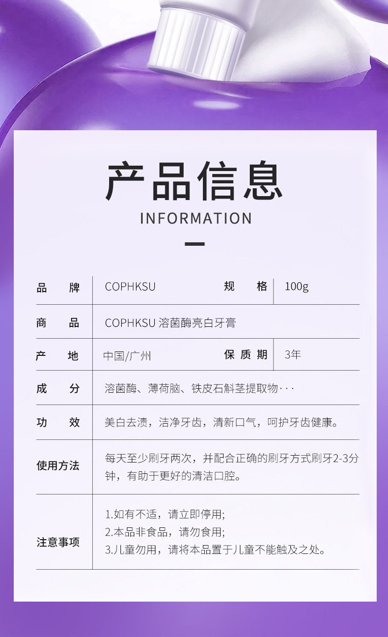 | Color classification | Lysozyme whitening toothpaste 100g (box size 72) |