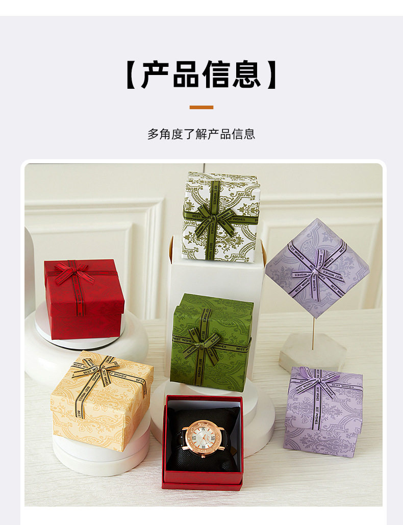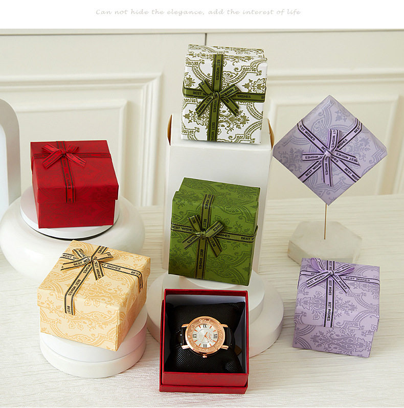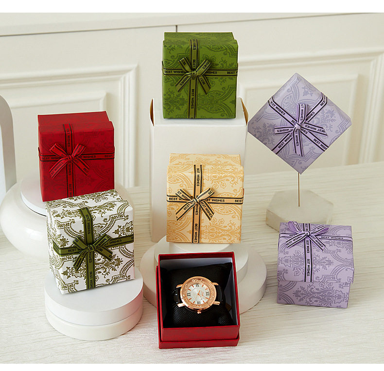 | Specifications and models | Red [with bow]; watch box 9*8.5*5.5cm,Yellow [with bow]; watch box 9*8.5*5.5cm,Olive green [with bow]; watch box 9*8.5*5.5cm,Purple [with bow]; watch box 9*8.5*5.5cm,Green [with bow]; watch box 9*8.5*5.5cm,Red [without bow]; watch box 9*8.5*5.5cm,Yellow [without bow]; watch box 9*8.5*5.5cm,Olive green [without bow]; watch box 9*8.5*5.5cm,Purple [without bow]; watch box 9*8.5*5.5cm,Green [without bow]; watch box 9*8.5*5.5cm |