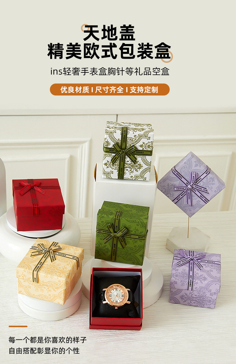 Ready-Made Watch Jewelry Packaging Box, Exquisite Heaven and Earth Cover Birthday Gift Box, Bow Jewelry Storage Packaging Gift Box