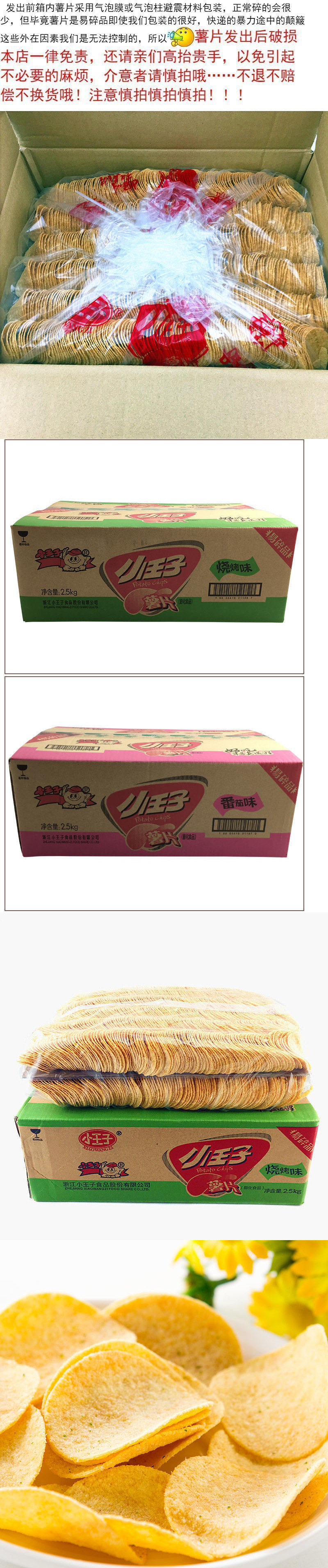 | Packaging specifications | Mixed mix-140g*2 boxes (more than half a catty will get 30g extra),Tomato flavor-140g*2 boxes (30g more for half a pound),Bbq flavor-140g*2 boxes (more than half a catty will get 30g extra),Spicy flavor-140g*2 boxes (more than half a catty will give you 30g more),Original flavor-140g*2 boxes (30g more for half a catty),Potato chips are fragile and will not be returned, exchanged or compensated (be careful when purchasing) - 140g*2 boxes (30g more for half a pound),Mixed-140*4 boxes (more than 0.5kg in total),Tomato flavor-140*4 boxes (more than 0.5kg in total),Bbq flavor-140*4 boxes (more than 0.5kg in total),Spicy flavor-140*4 boxes (more than 0.5kg in total),Original flavor-140*4 boxes (more than 0.5kg in total),Mixed-200g*5 boxes (total 1.0kg),Tomato flavor-200g*5 boxes (total 1.0kg),Bbq flavor-200g*5 boxes (total 1.0kg),Spicy flavor-200g*5 boxes (total 1.0kg),Original flavor-200g*5 boxes (total 1.0kg),Purple sweet potato flavor-200g*5 boxes (total 1.0kg),Potato chips are fragile and will not be returned, exchanged or compensated (photo with caution) - 200g*5 boxes (total 1.0kg ),Mix-140g*10 boxes mixed (almost 1.5kg ),Tomato flavor-140g*10 boxes mixed (almost 1.5kg ),Bbq flavor-140g*10 boxes mixed (almost 1.5kg ),Spicy flavor-140g*10 boxes mixed (almost 1.5kg ),Original flavor-140g*10 boxes mixed (almost 1.5kg ),Tomato flavor-net weight 2kg,Bbq flavor-net weight 2kg,Spicy flavor-net weight 2kg,Original flavor-net weight 2kg,Purple sweet potato flavor-net weight 2kg,Potato chips are fragile and will not be returned, exchanged or compensated (photo with caution) - net weight 2kg,Tomato flavor-net weight 2.5kg,Bbq flavor-net weight 2.5kg,Spicy flavor-net weight 2.5kg,Original flavor-net weight 2.5kg,Purple sweet potato flavor-net weight 2.5kg,Potato chips are fragile and will not be returned, exchanged or compensated (photo with caution) - net weight 2.5kg |