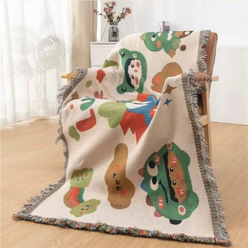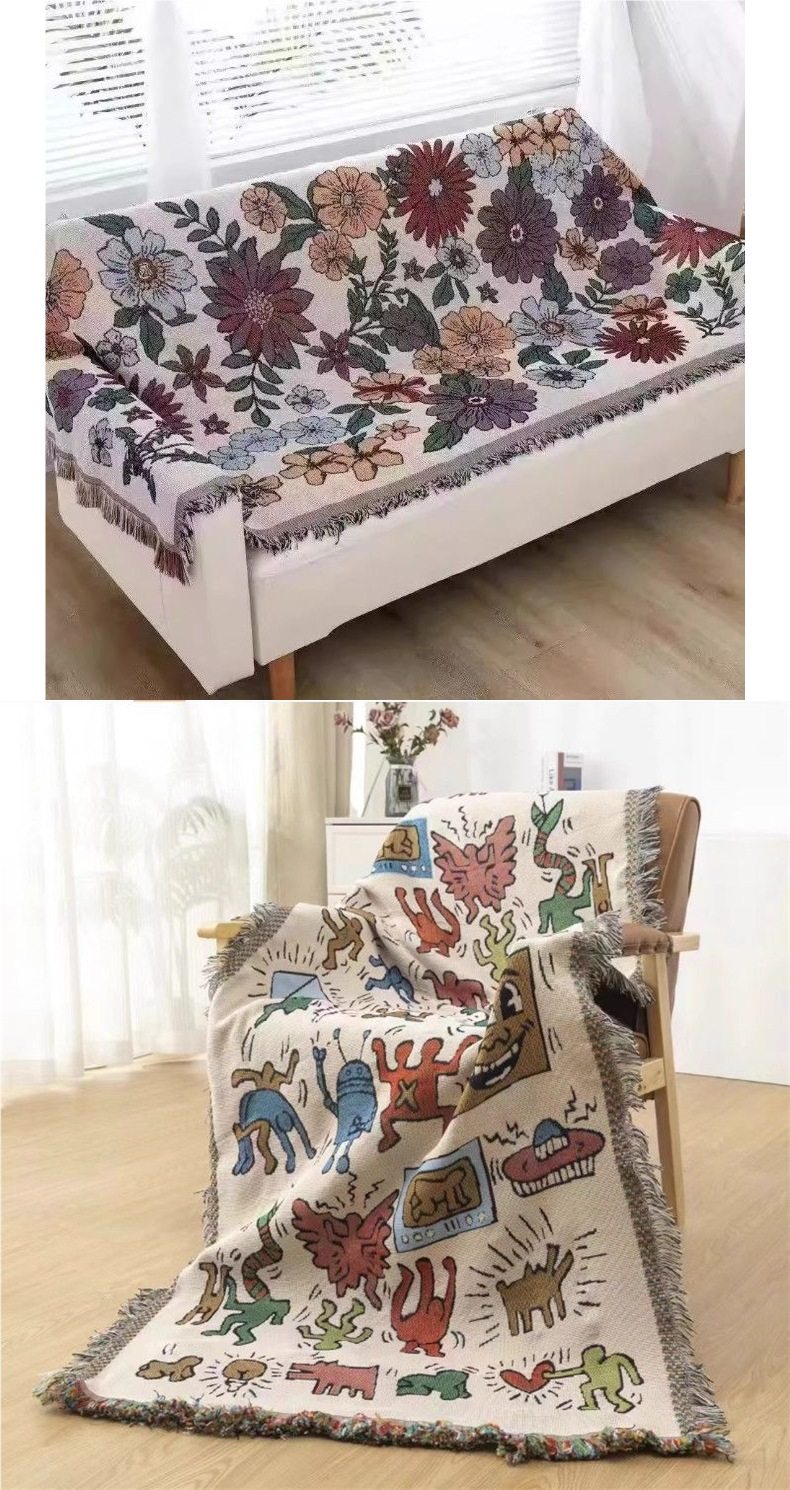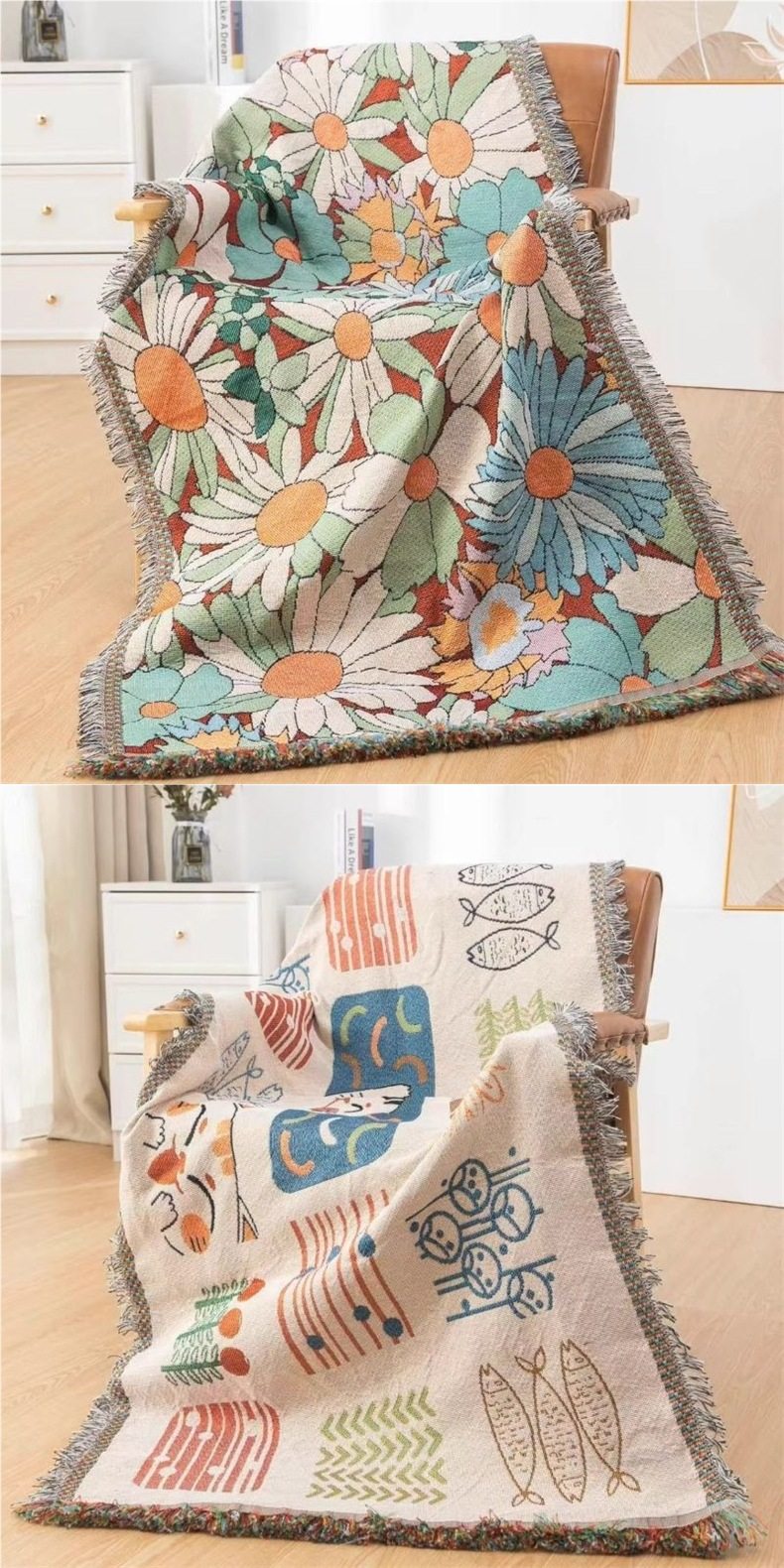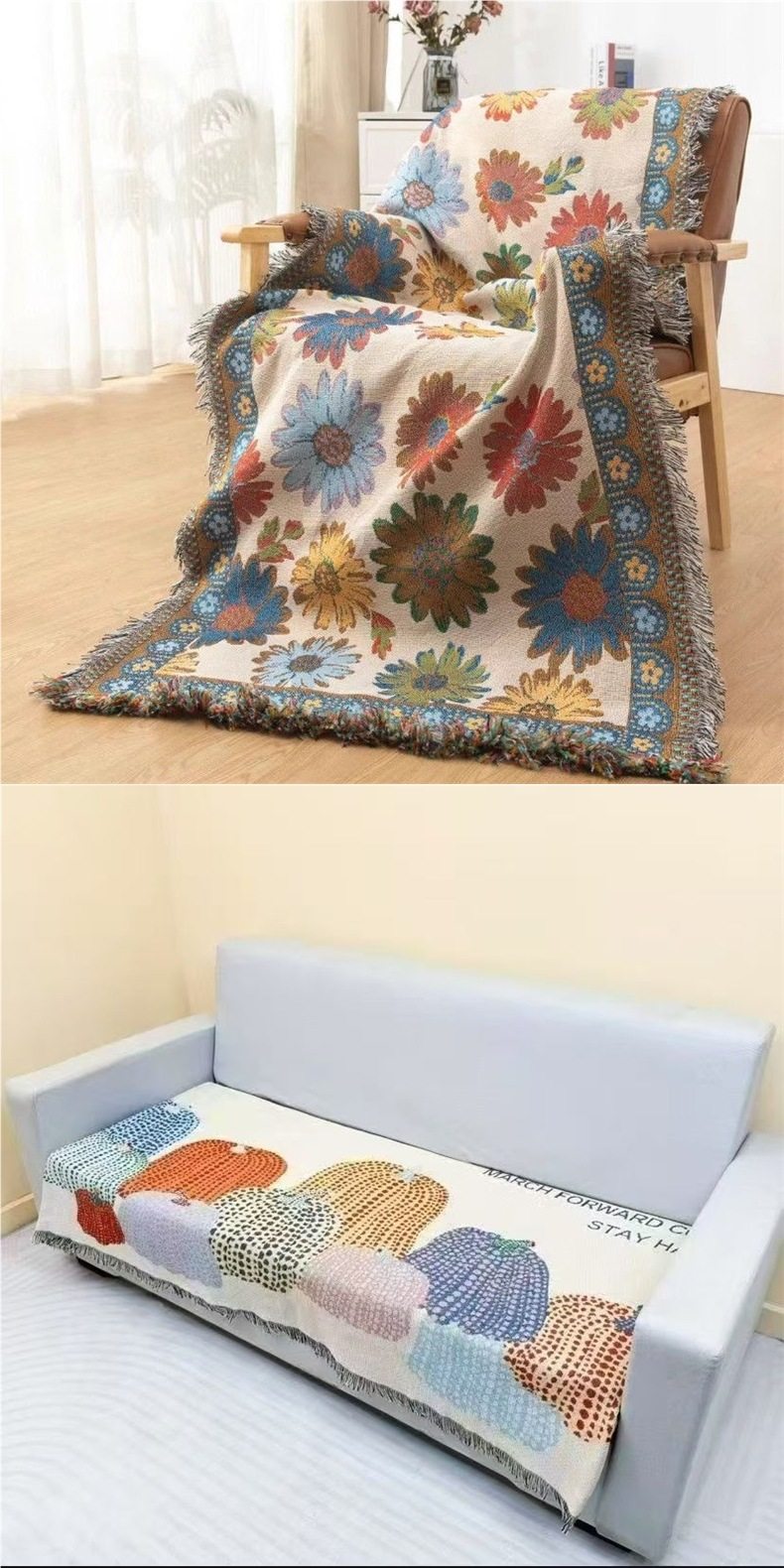 New Multifunctional Line Blanket, Sofa Towel, Double-Sided Sofa Blanket, Backrest, Bay Window Blanket, Cushion, Universal for All Seasons, Flowers Bloom and Wealth