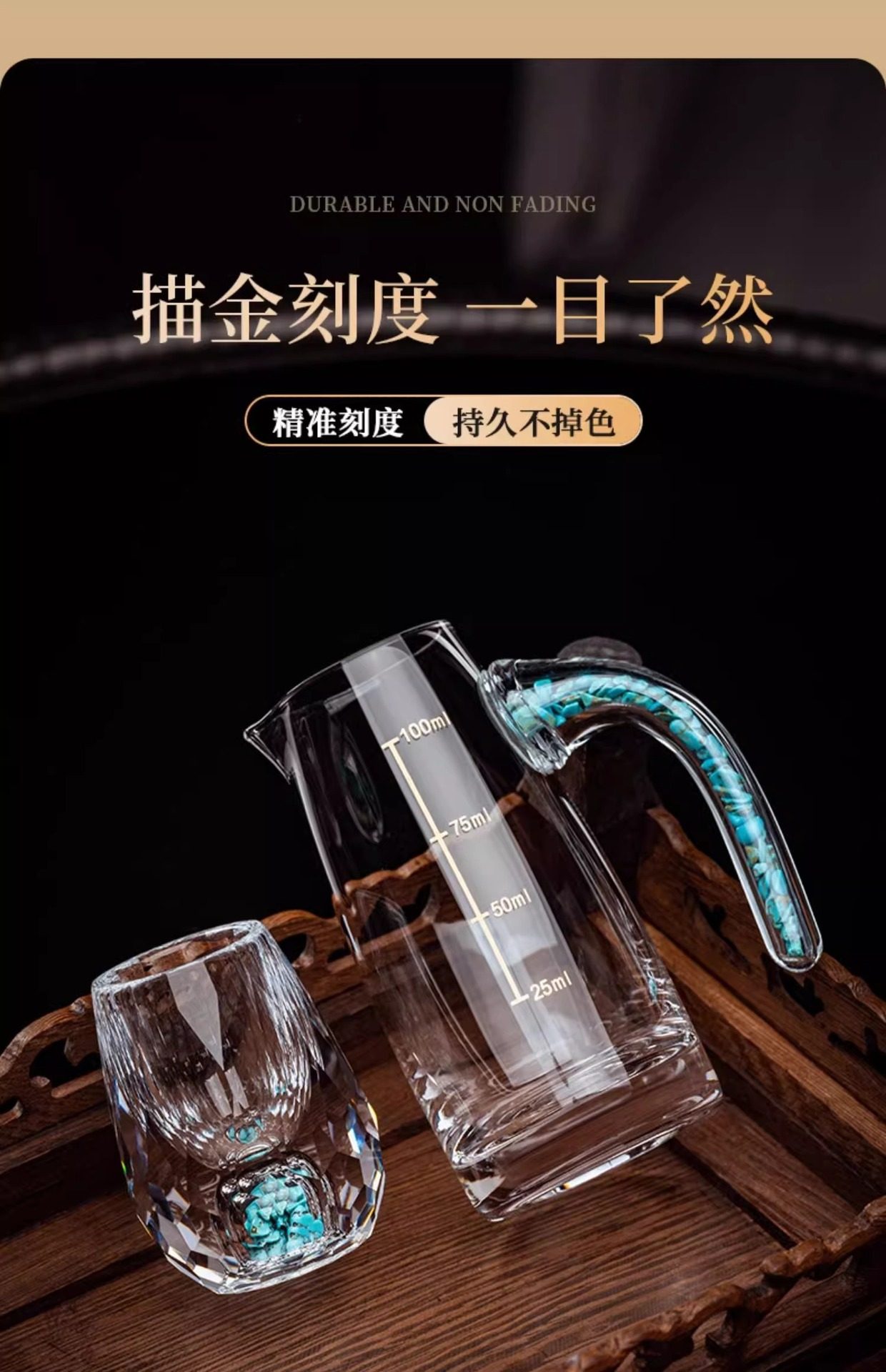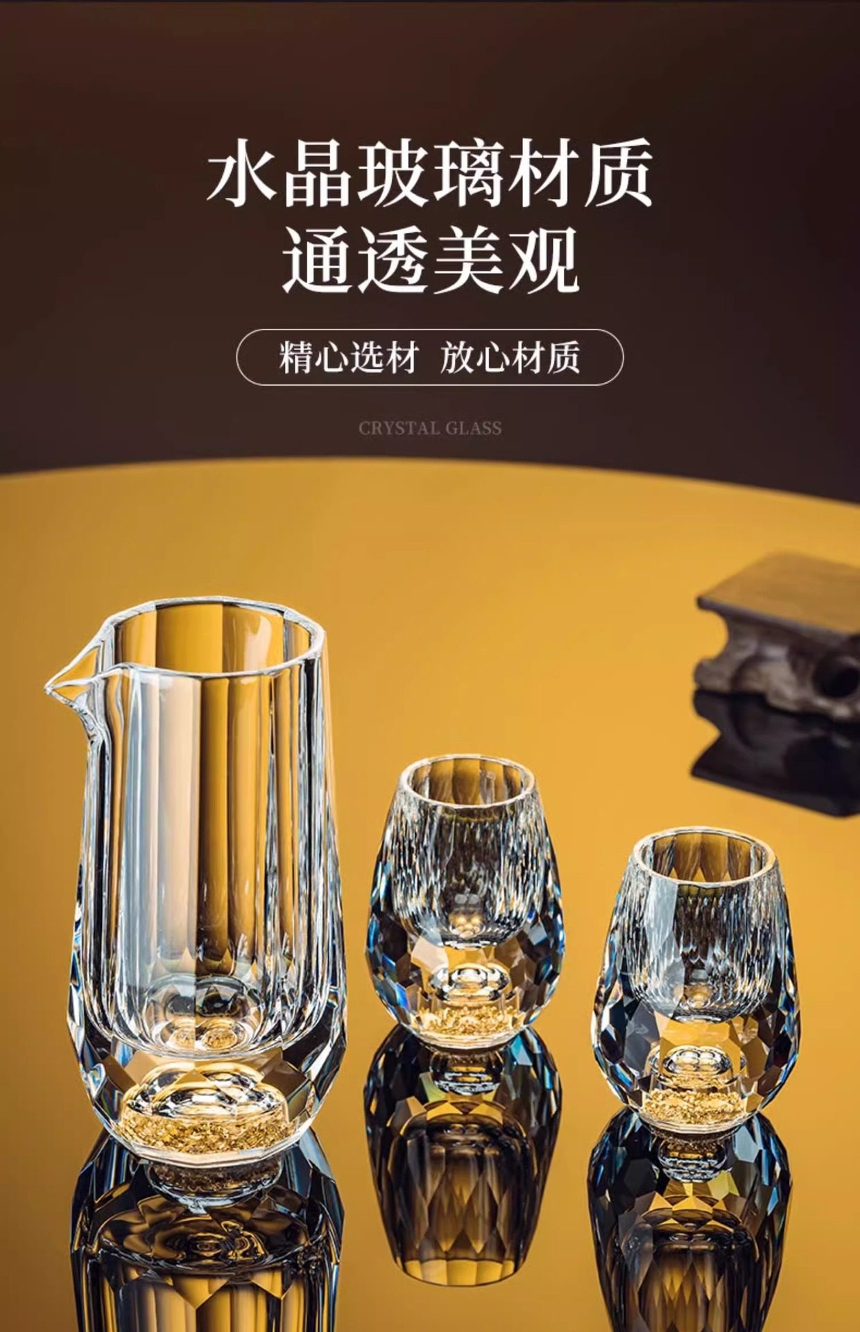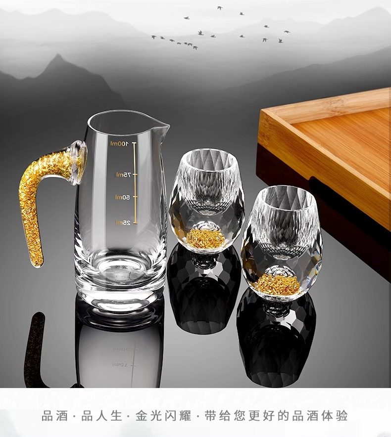 High-End Gold Foil Thickened Liquor Dispenser, White Wine Cup, Crystal Glass Cup, Household Graduated Small Wine Cup, Chinese-Style Wine Cup, Wine Set